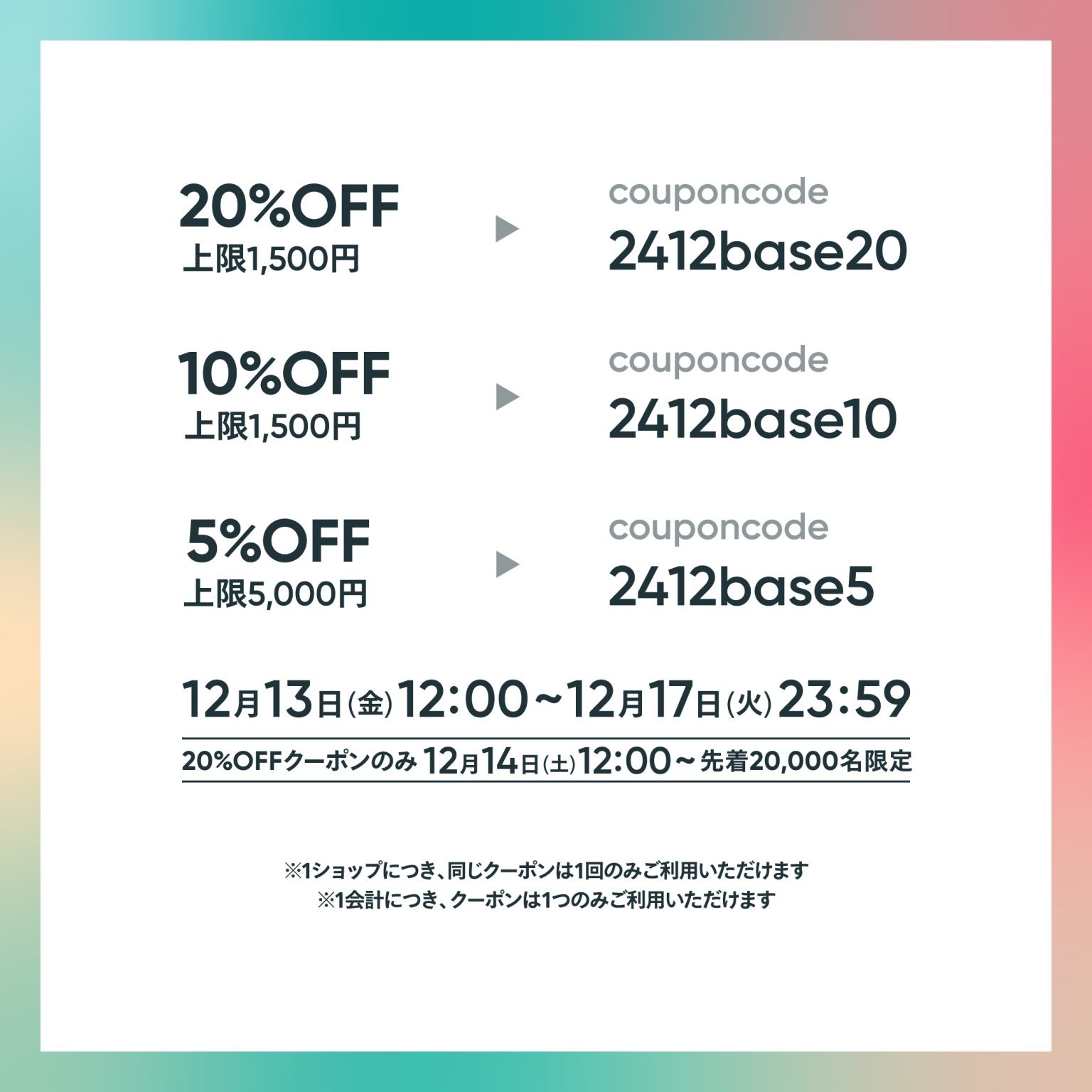 他のBASEショップでもそれぞれ1回づつご利用になれます。