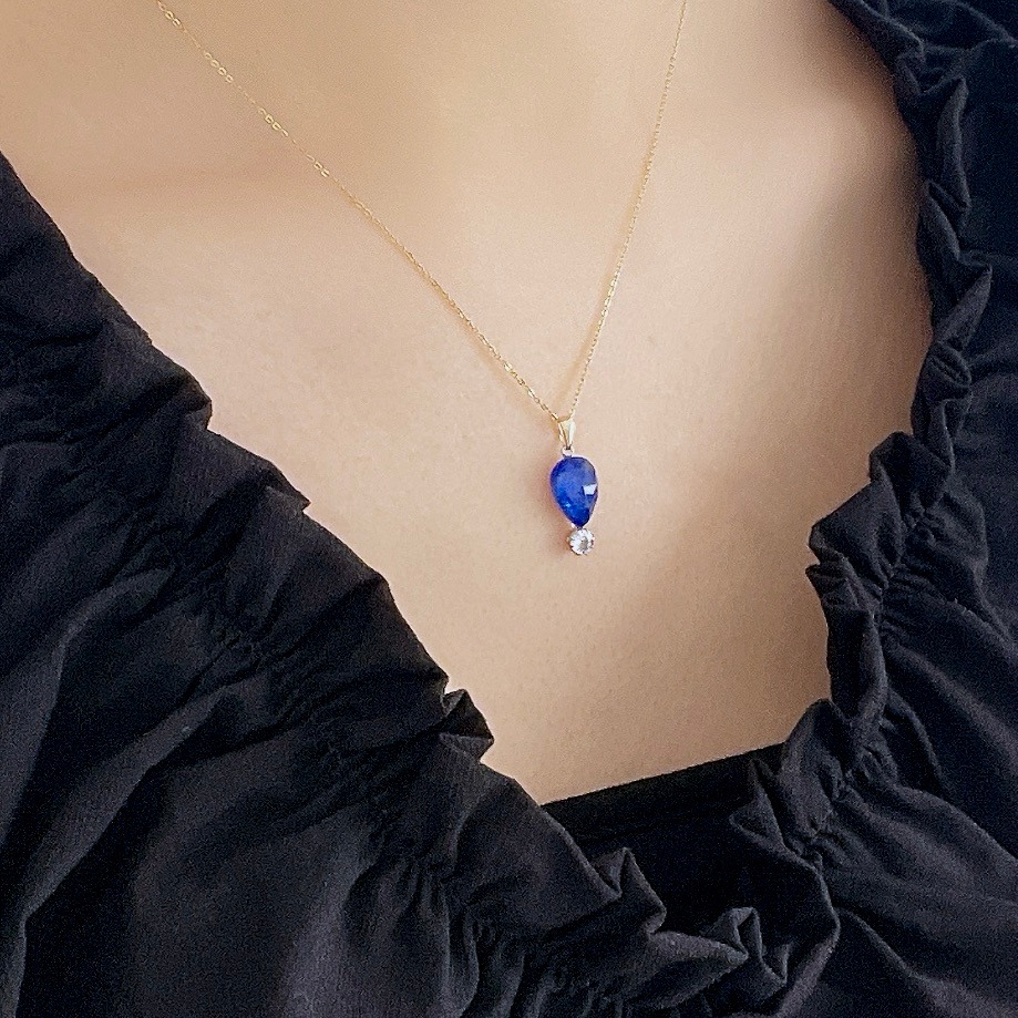ラピスラズリとキュービックジルコニアのプチネックレスと、