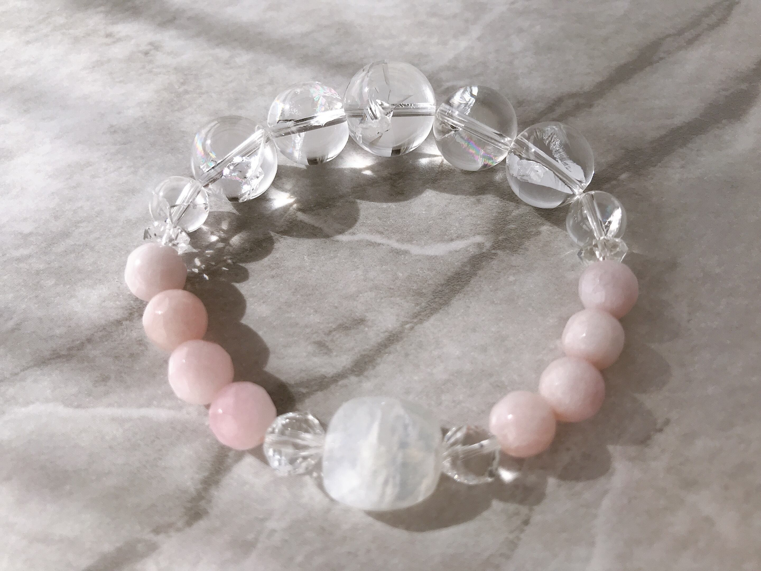 レインボームーンストーンとパープル&ホワイトジェードのプリンセスブレスレット☆ Moonstone × Purple & White Jade & Rainbow Crystal Bracelet