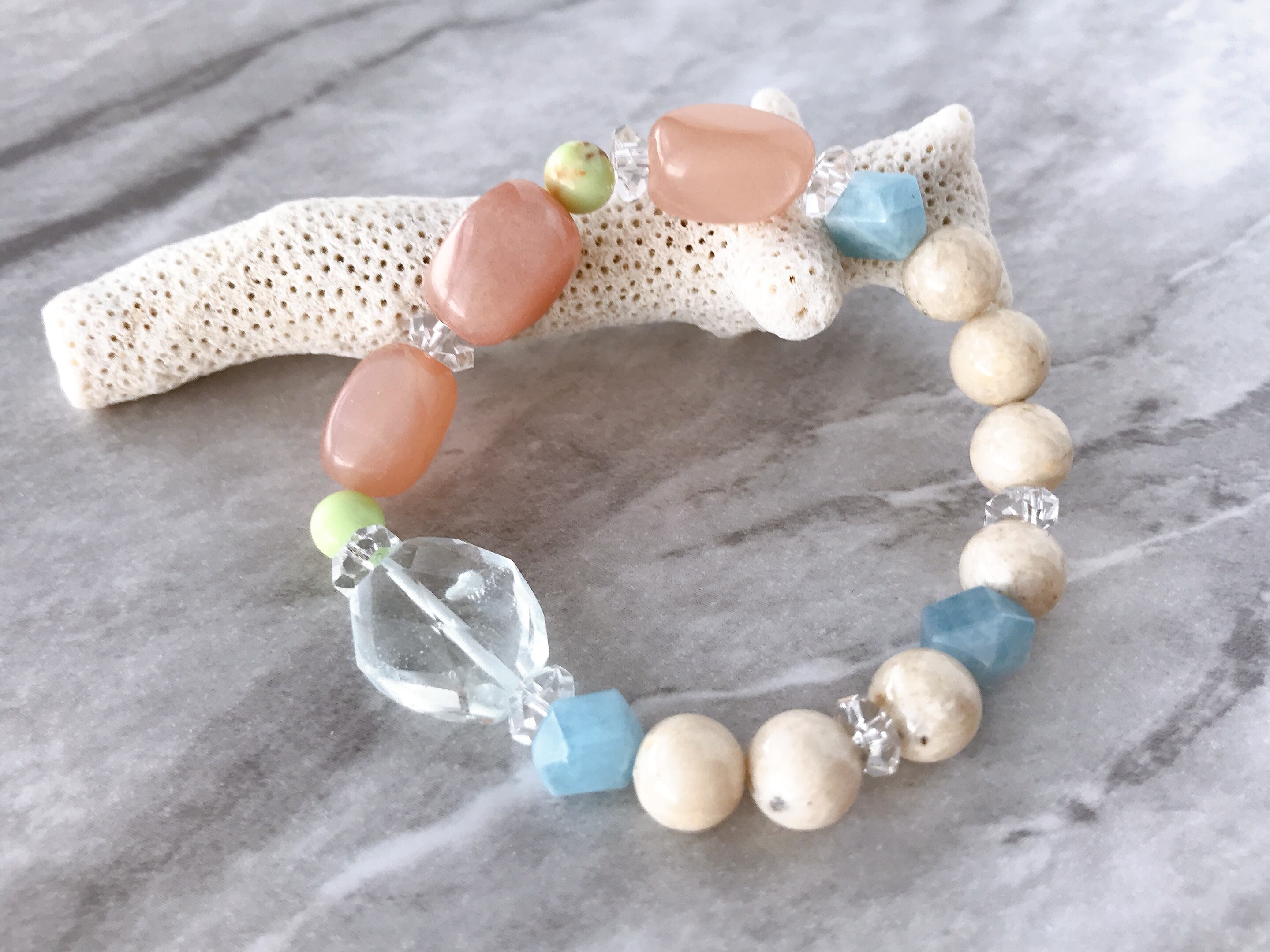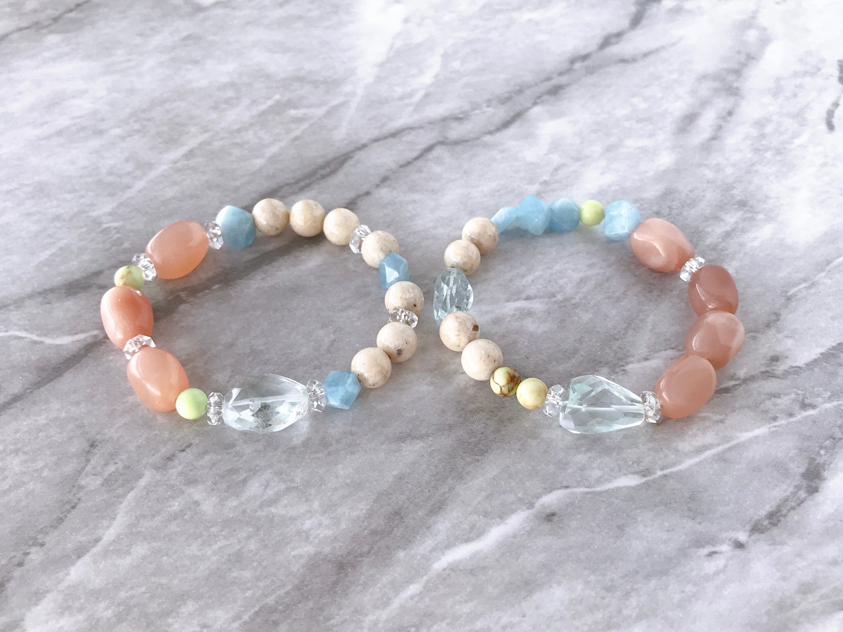 アクアマリン×ピーチムーンストーン×リバーストーンのブレスレットAタイプ☆ Aquamarine × Peach moonstone × Riverstone Type A Bracelet
