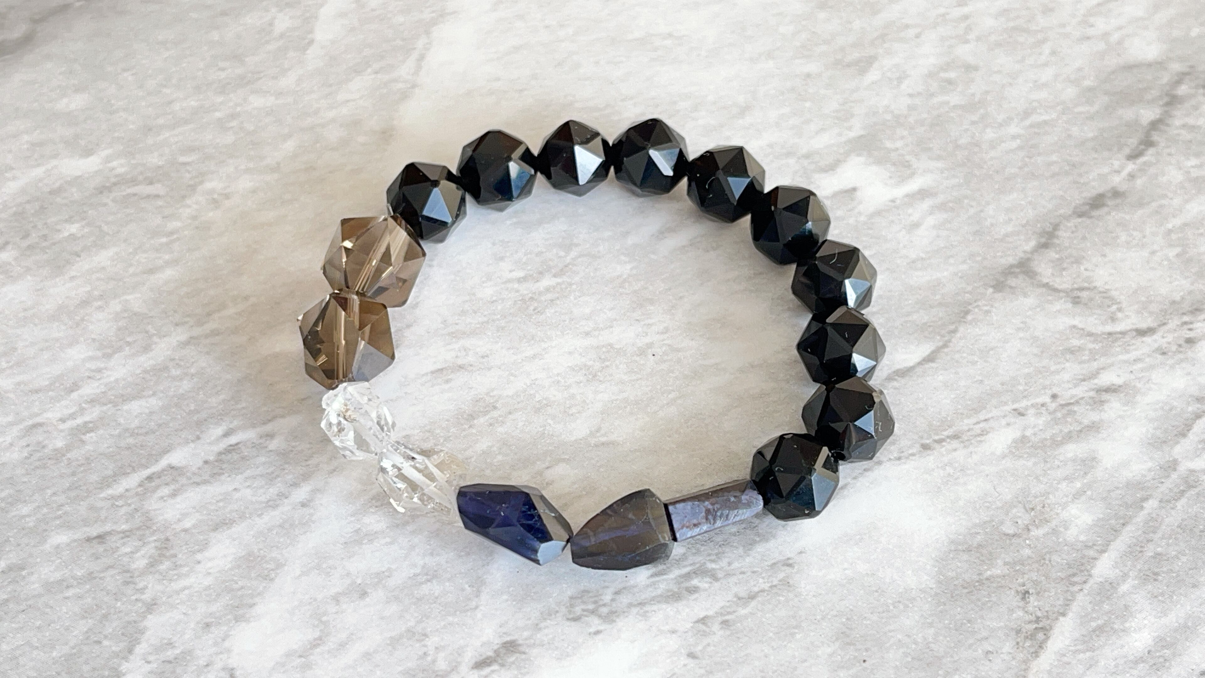 ブラック×ネイビーの色調がクールなブレスレットです。