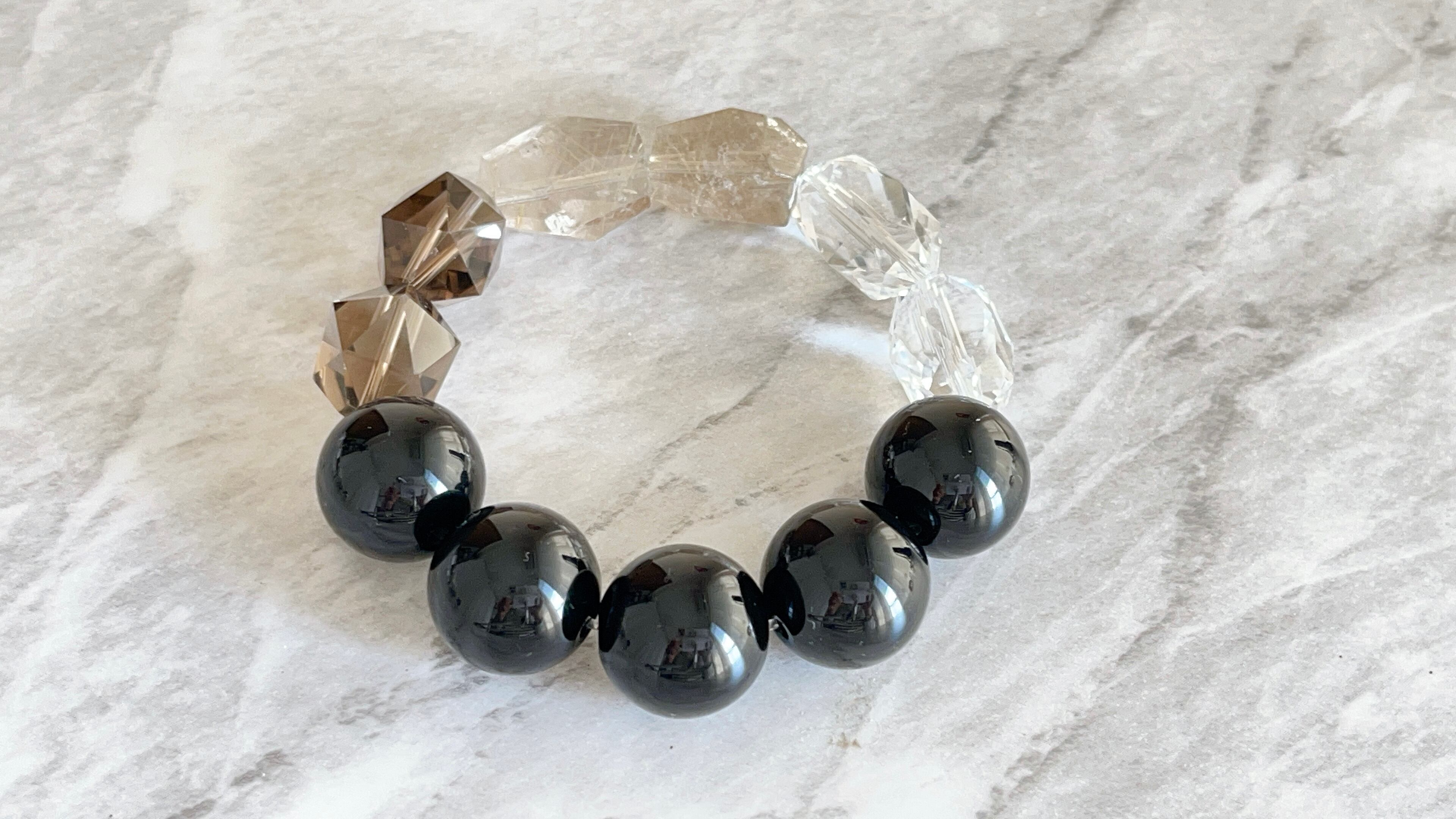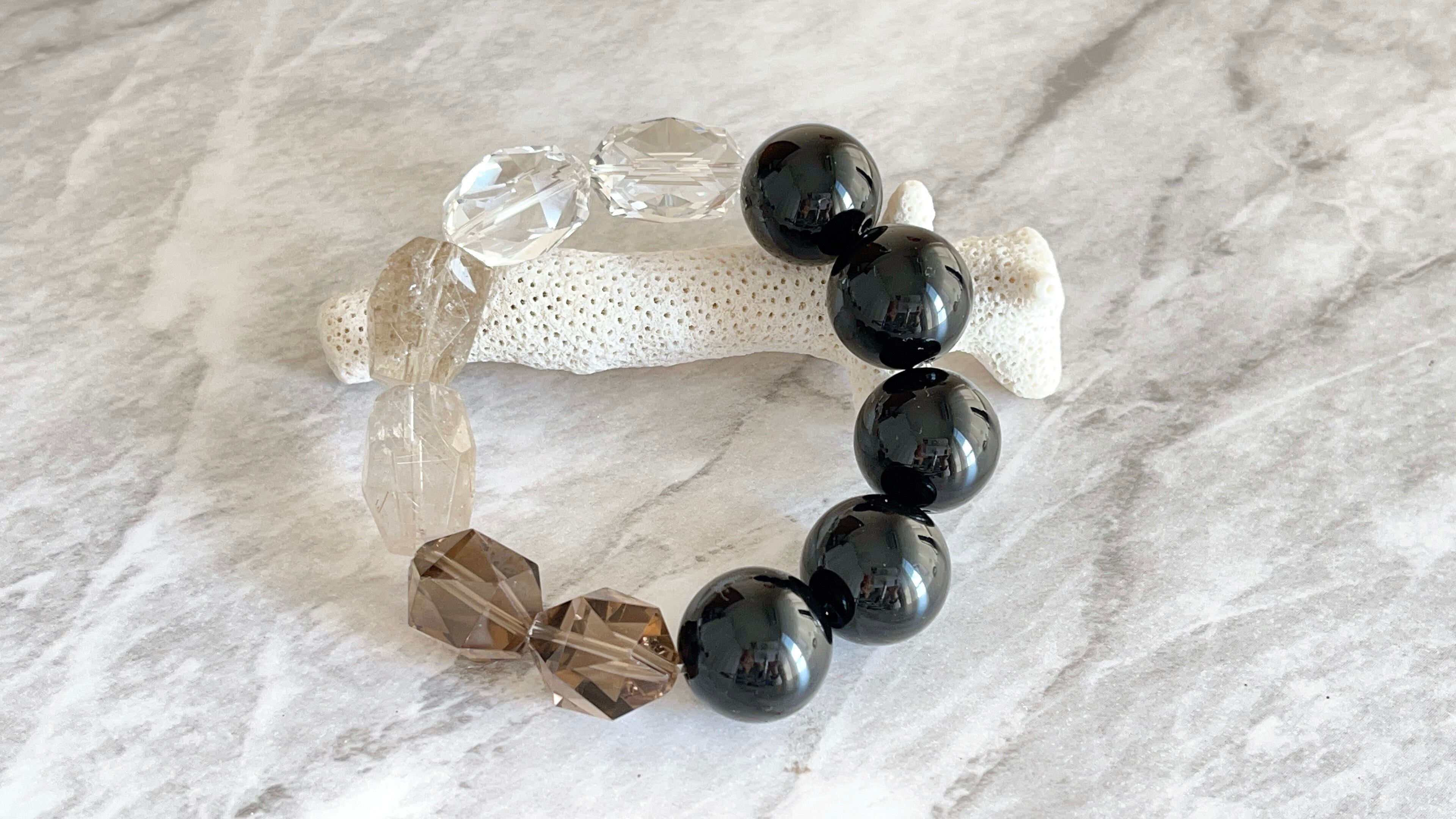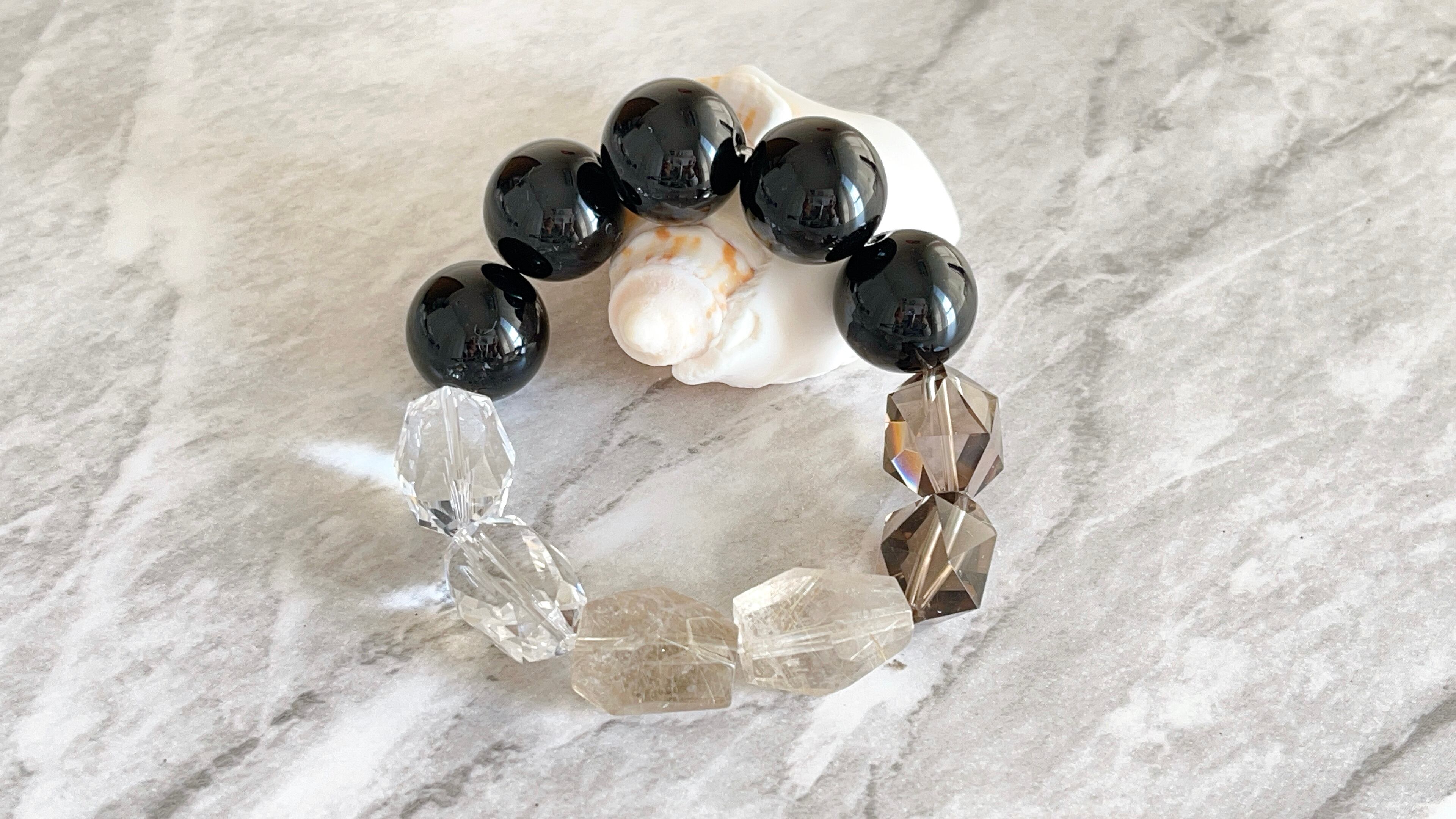 モリオンが16mm玉でボリューム感と高級感があり、 とてもゴージャスなブレスレットです✧
