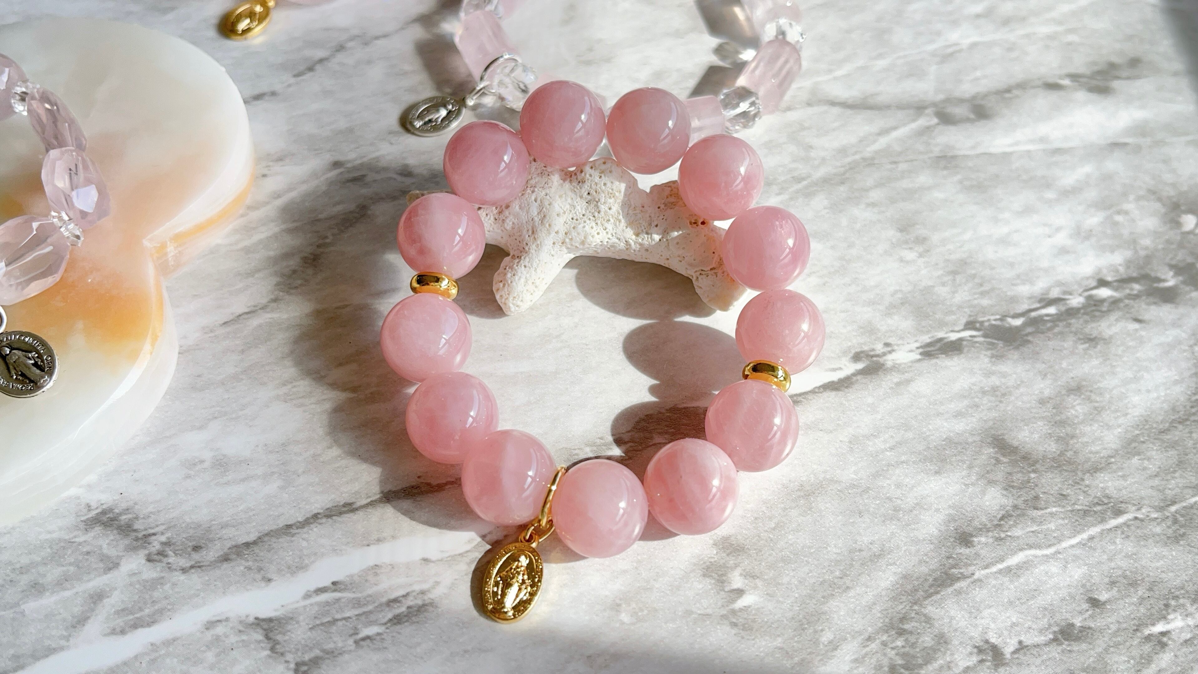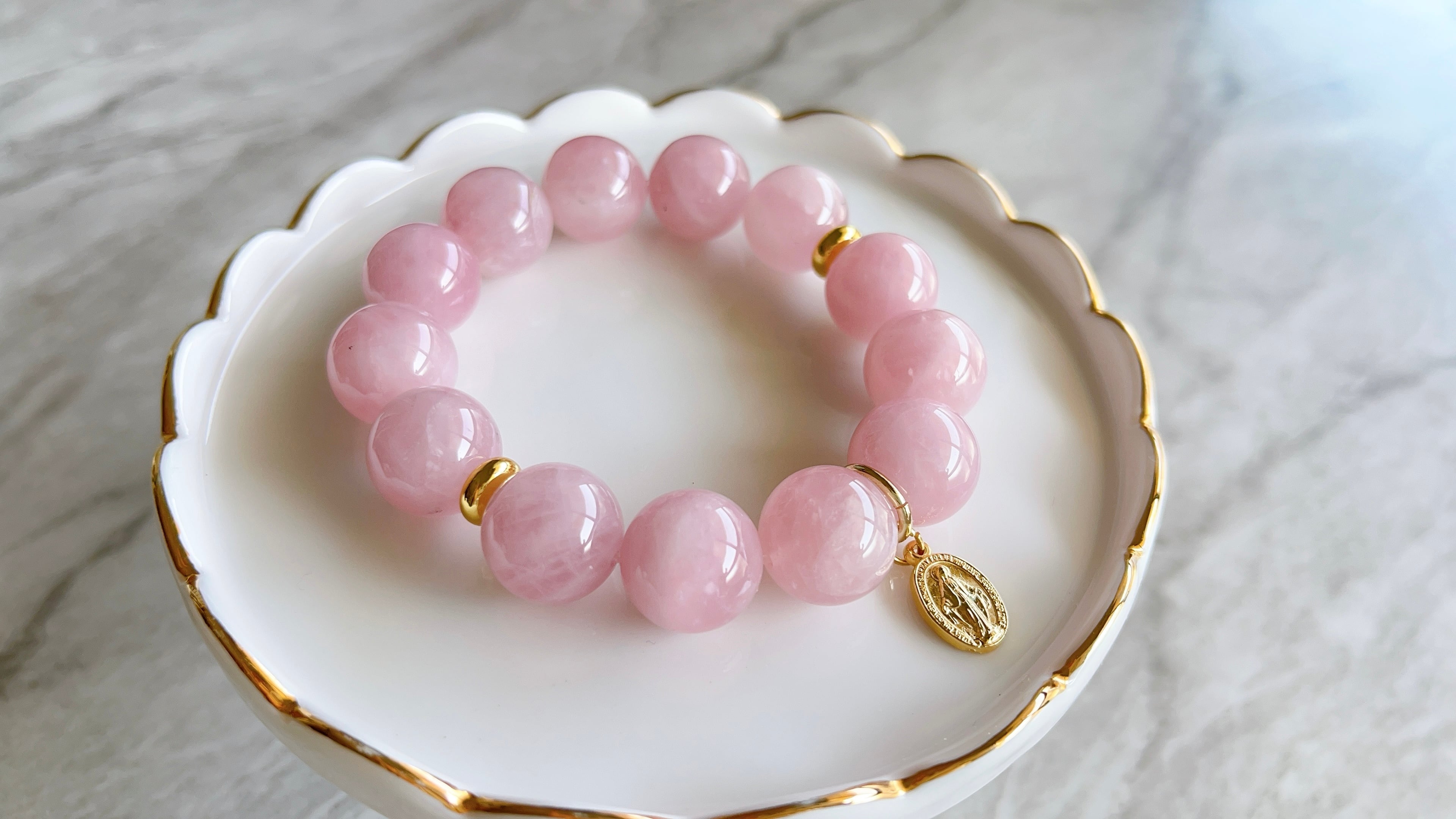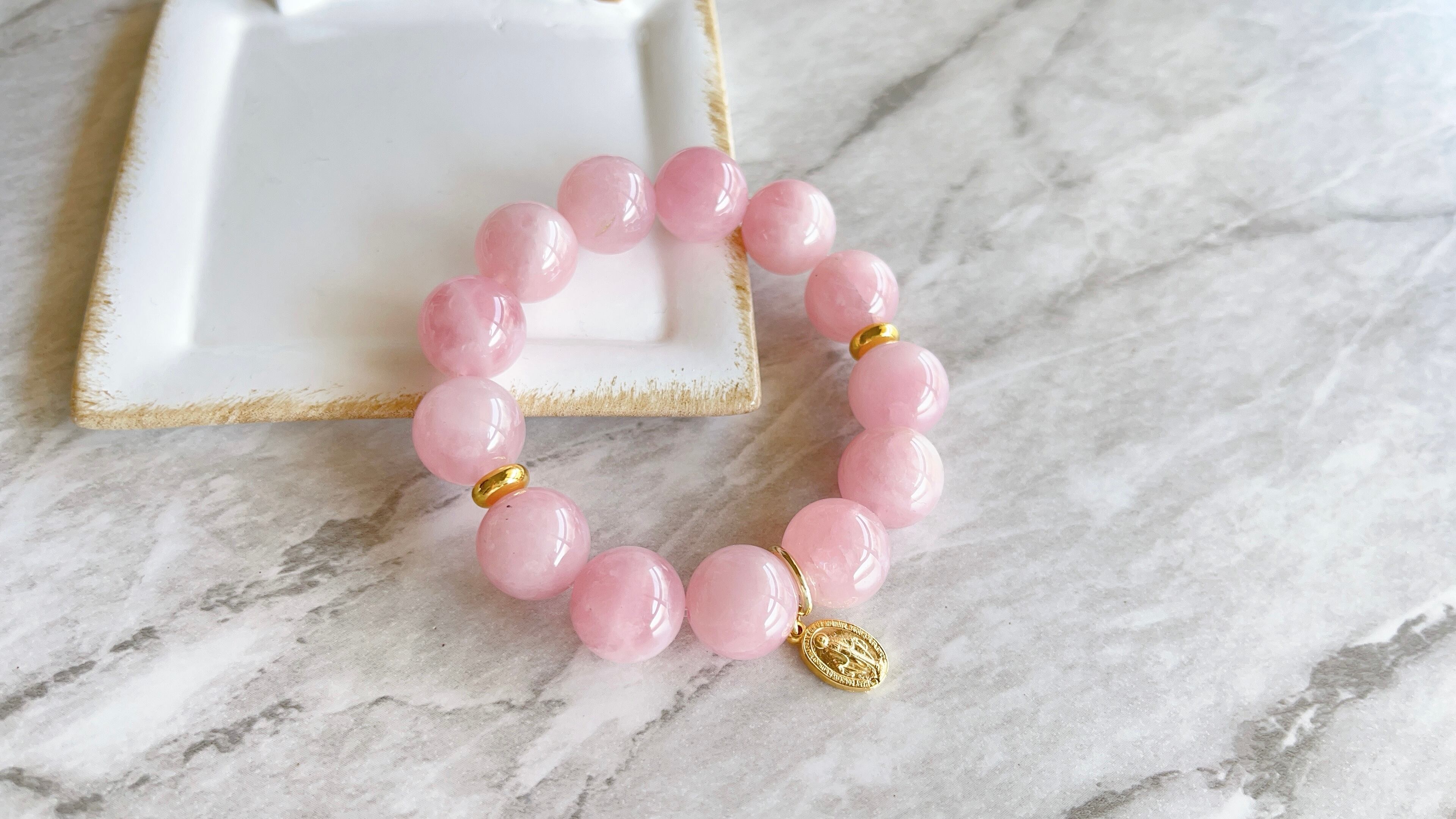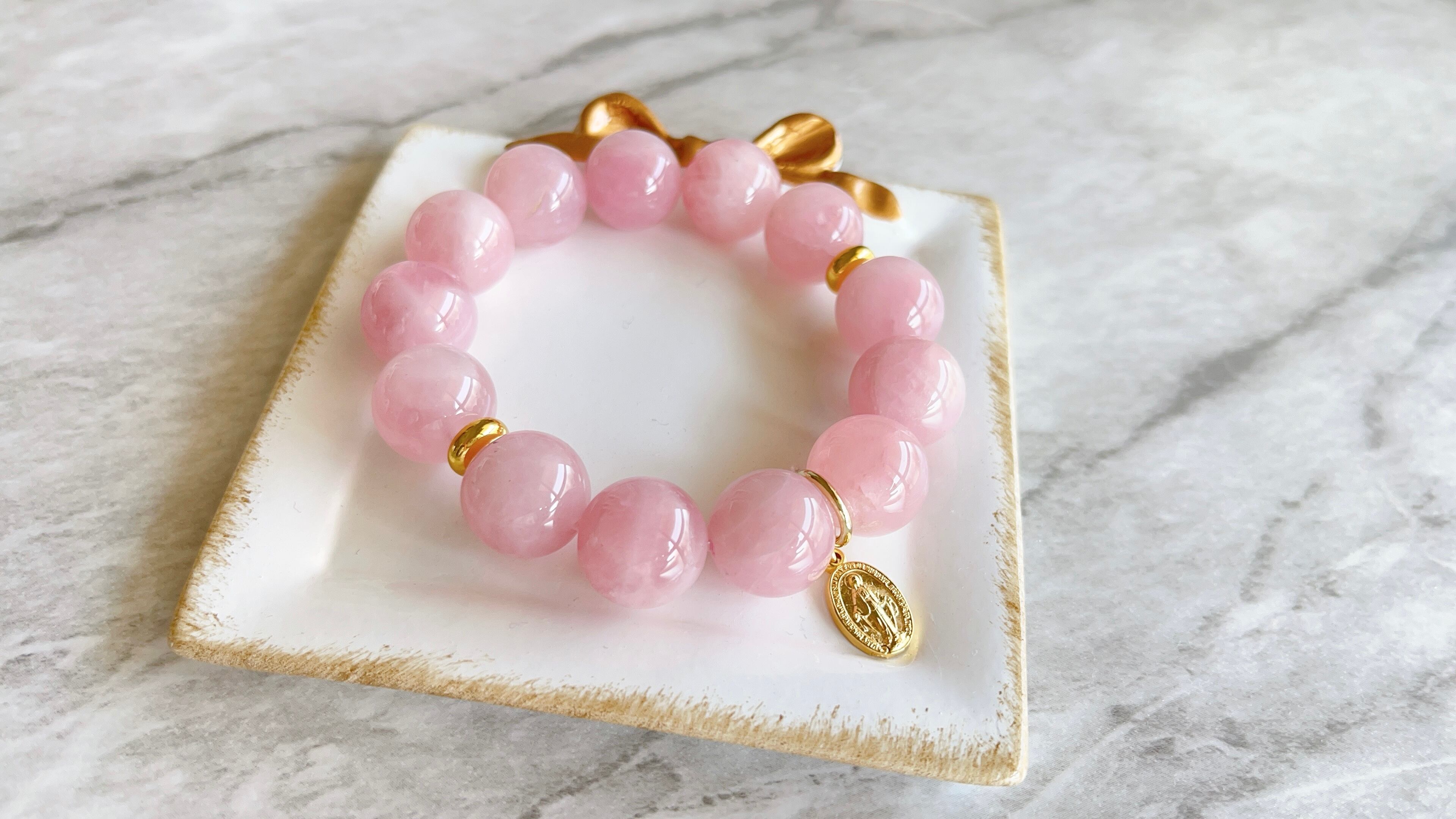 ローズクォーツの慈愛と、聖母マリアの慈愛がリンクしたブレスレットです✨