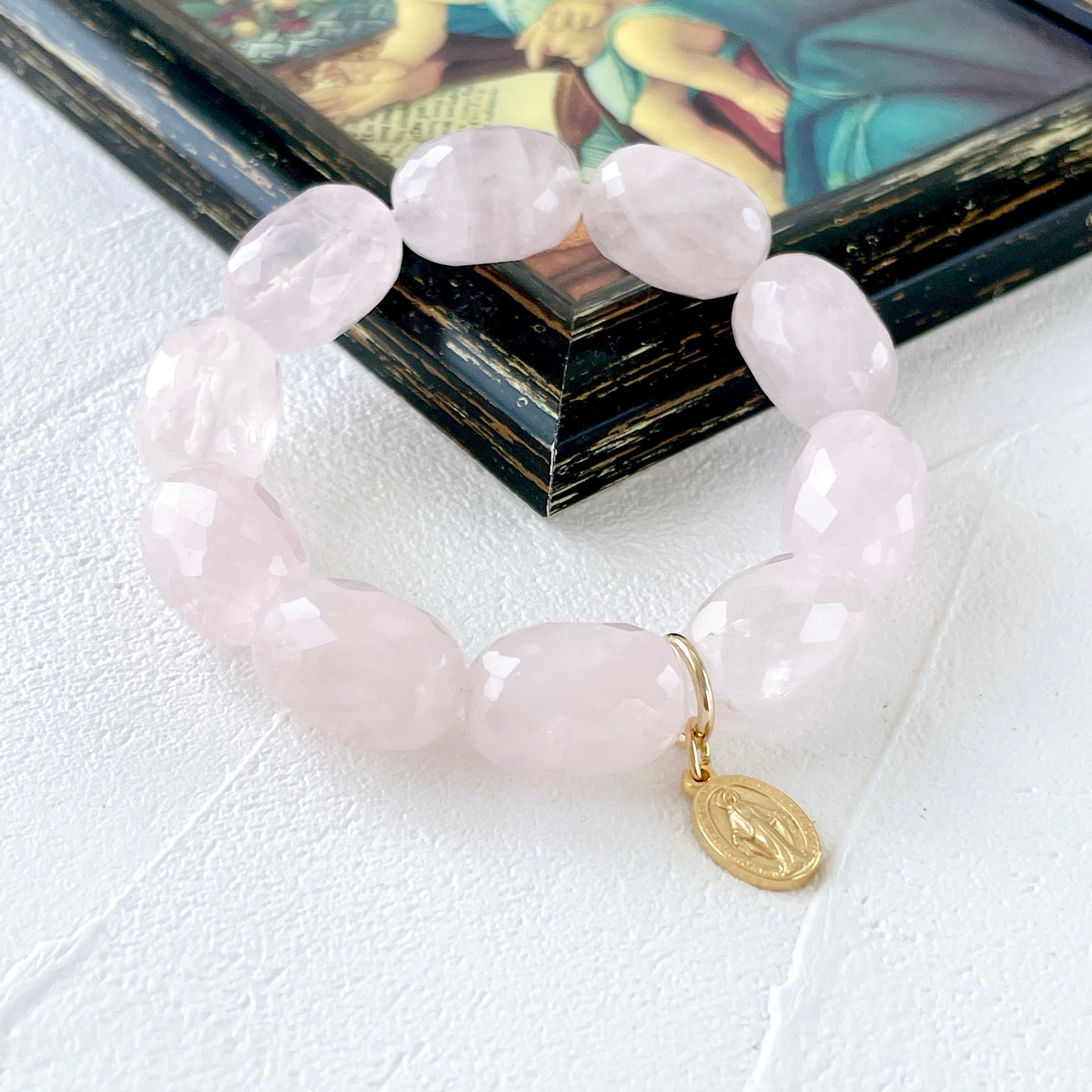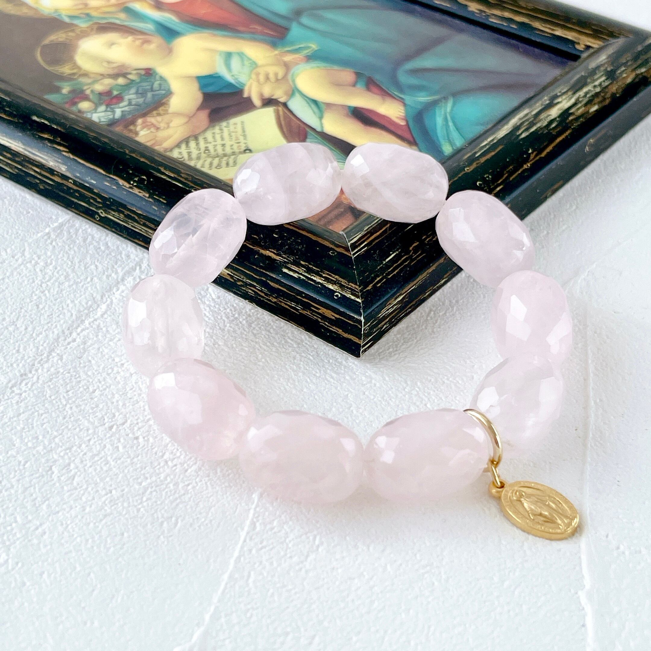 ローズクォーツの慈愛と、聖母マリアの慈愛がリンクしたブレスレットです✨