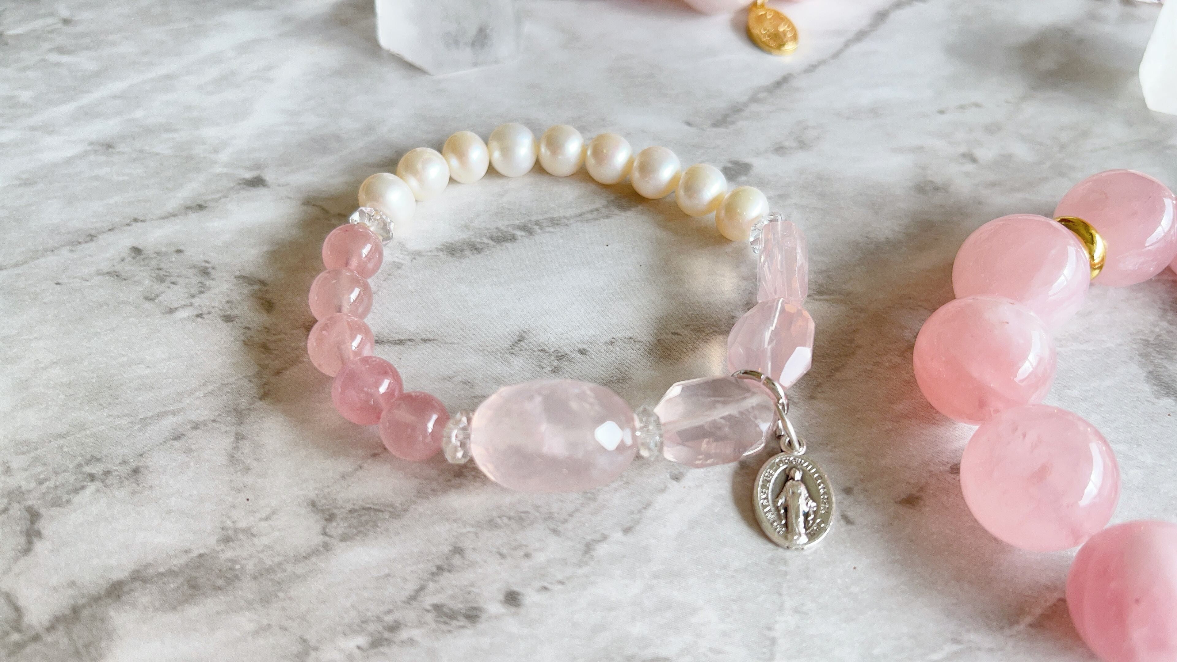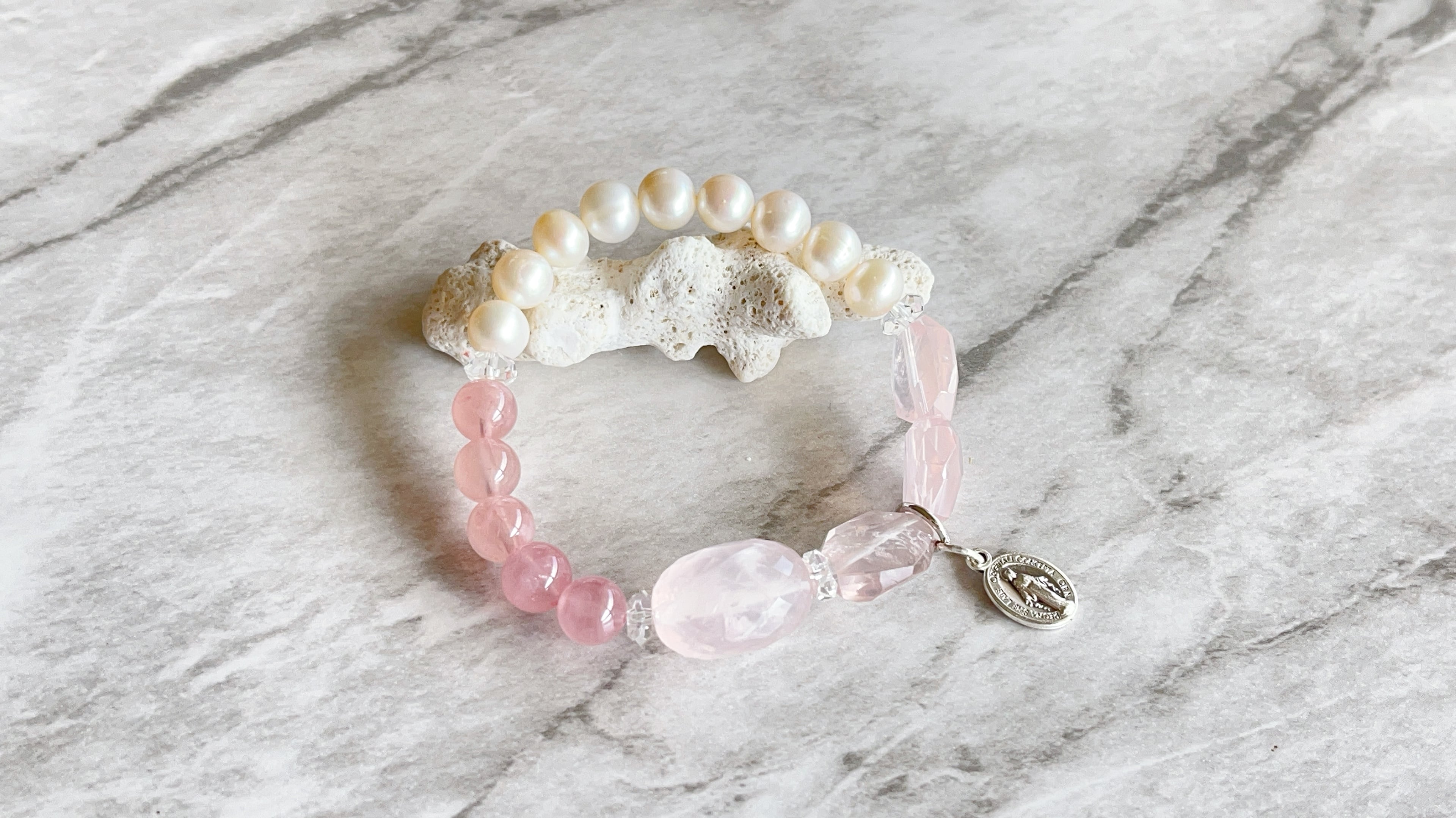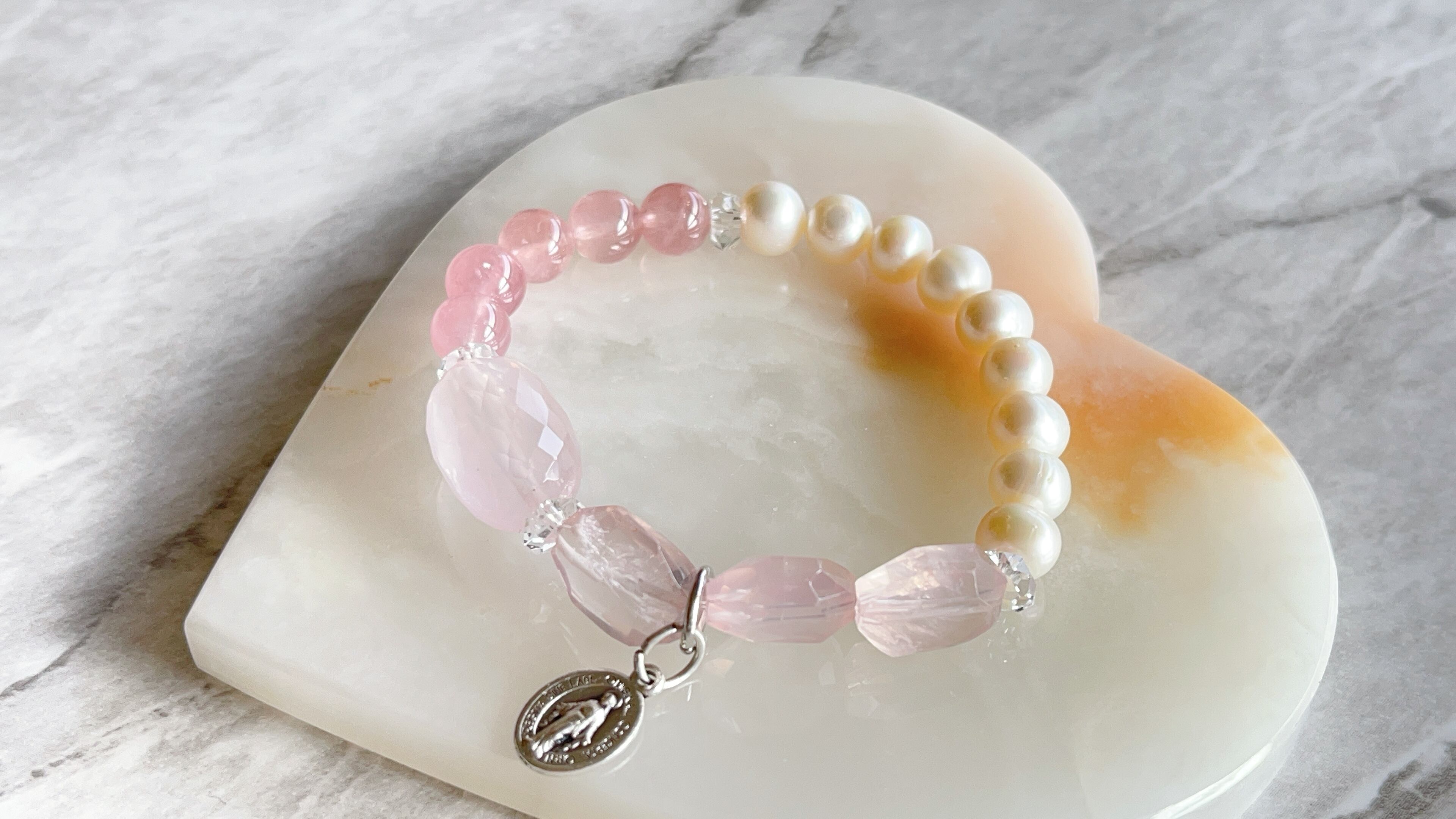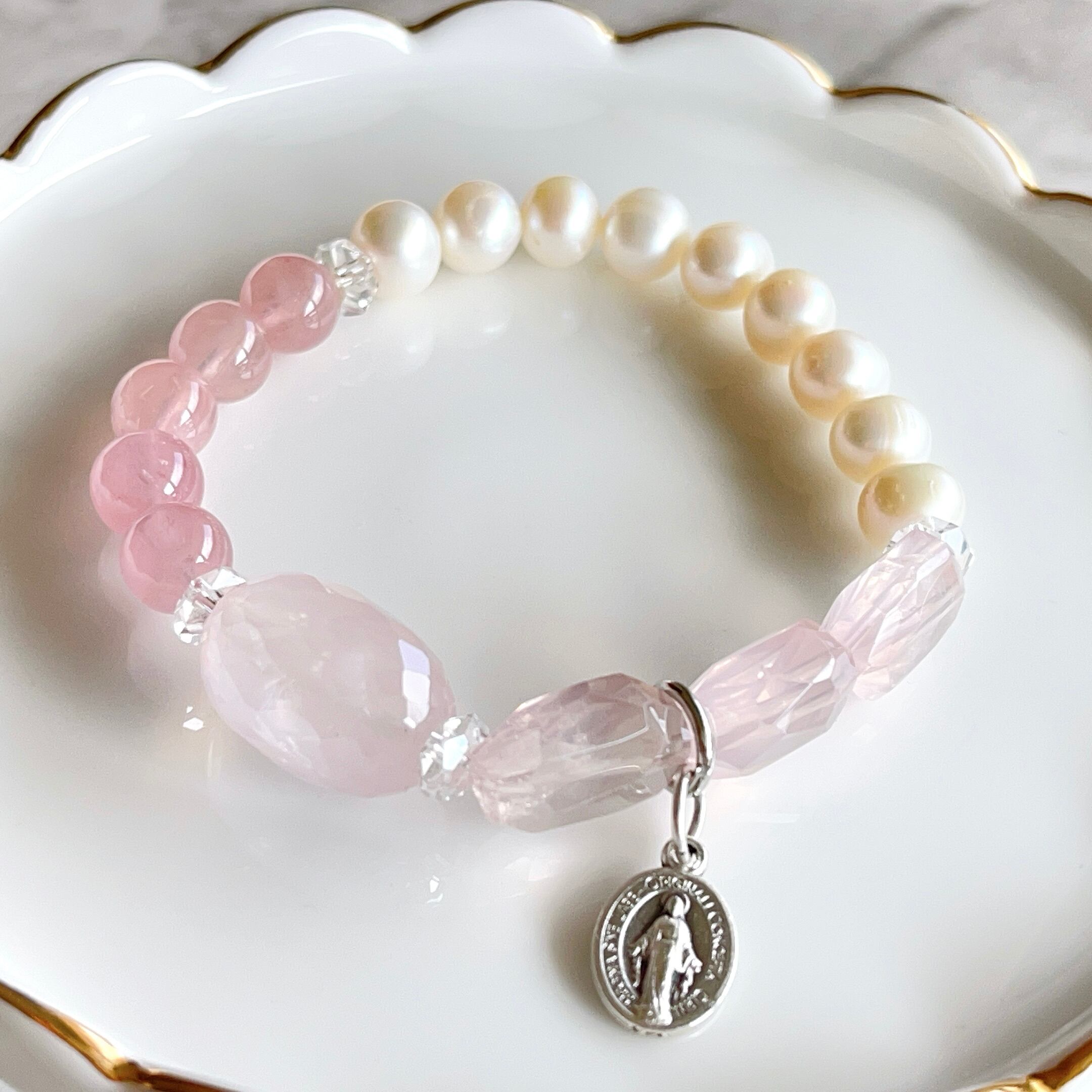 ローズクォーツの慈愛と、聖母マリアの慈愛がリンクしたブレスレットです✨
