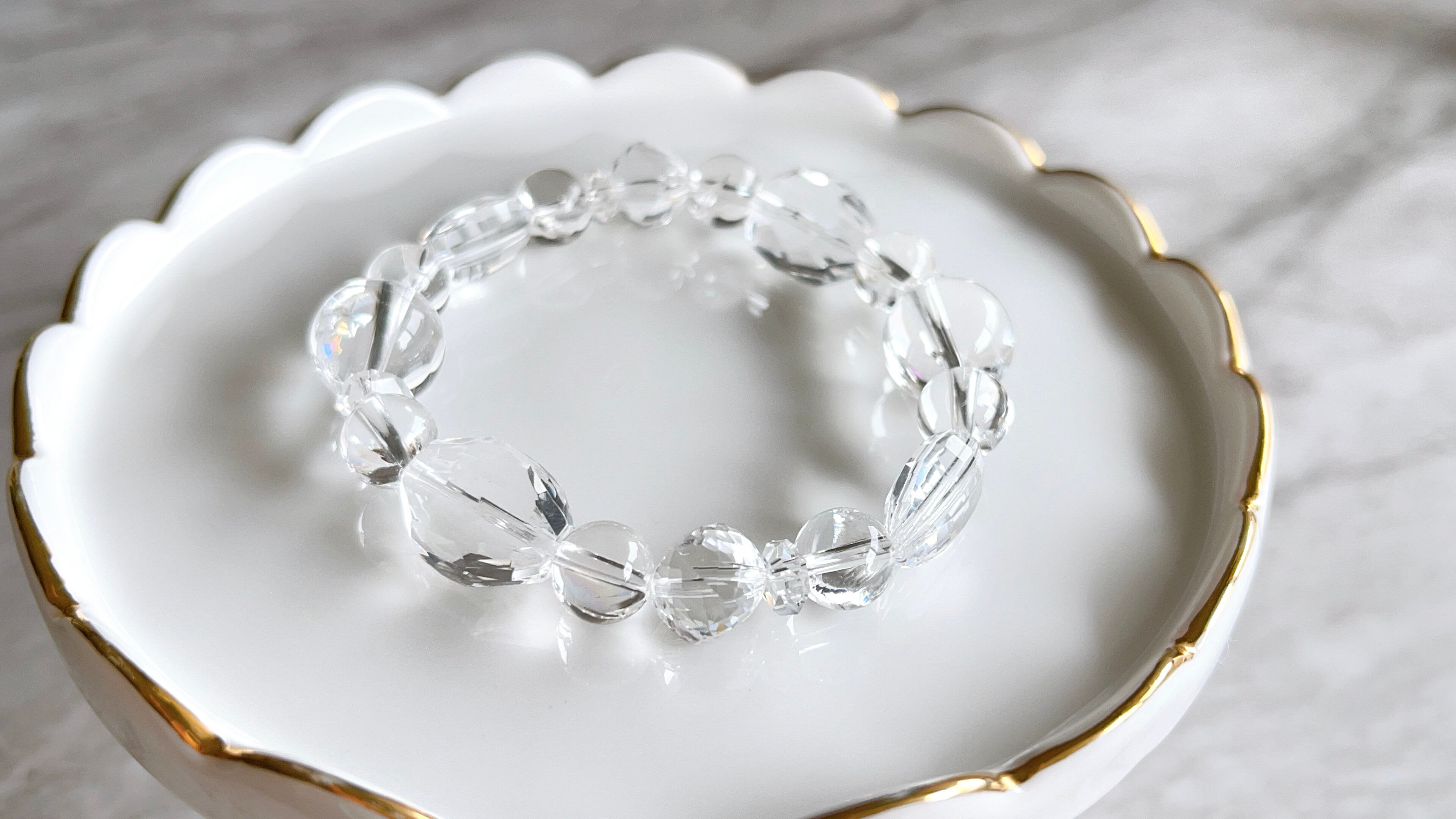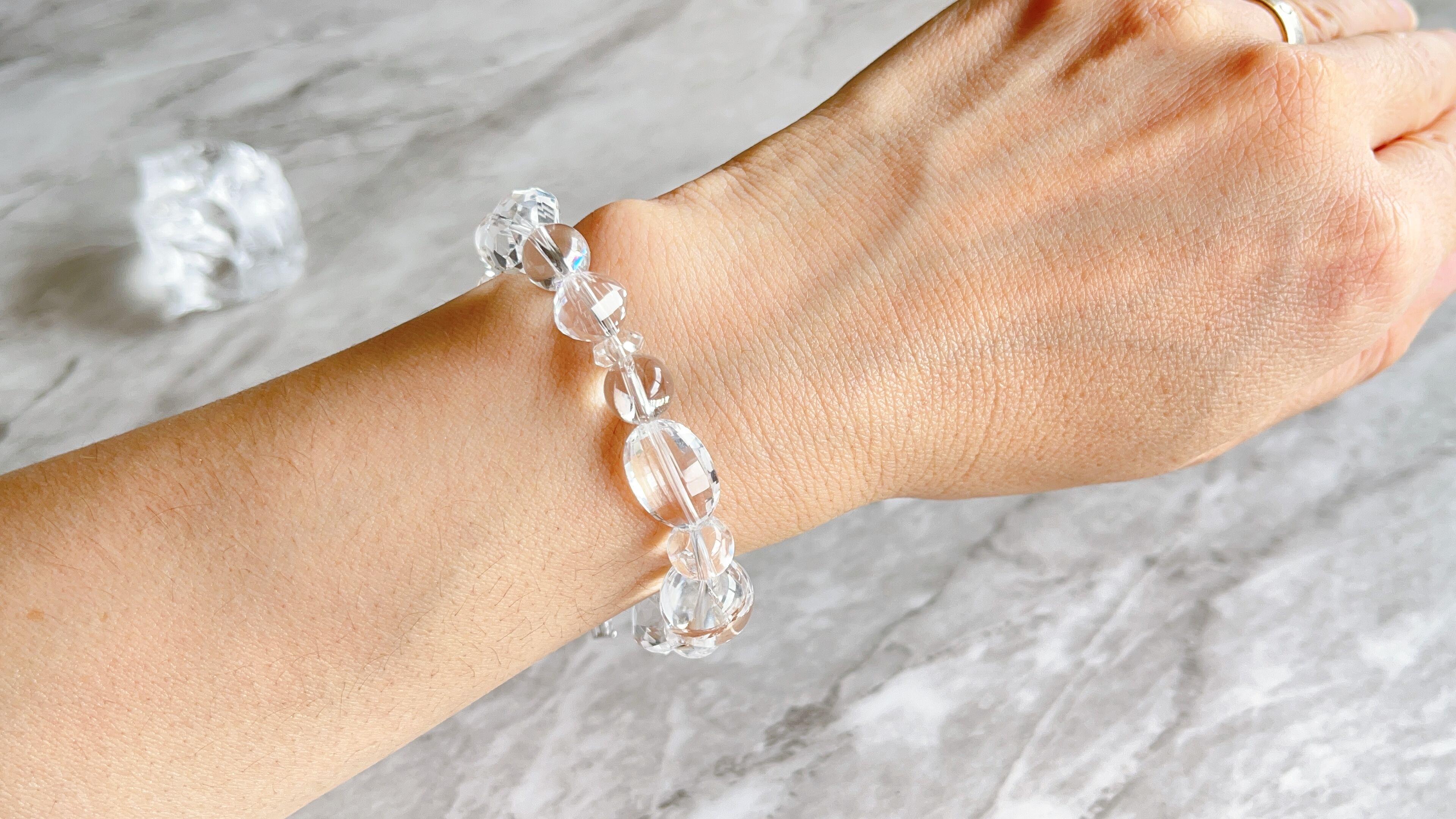 透明感があるので、どんなブレスレットとも相性が良いです。