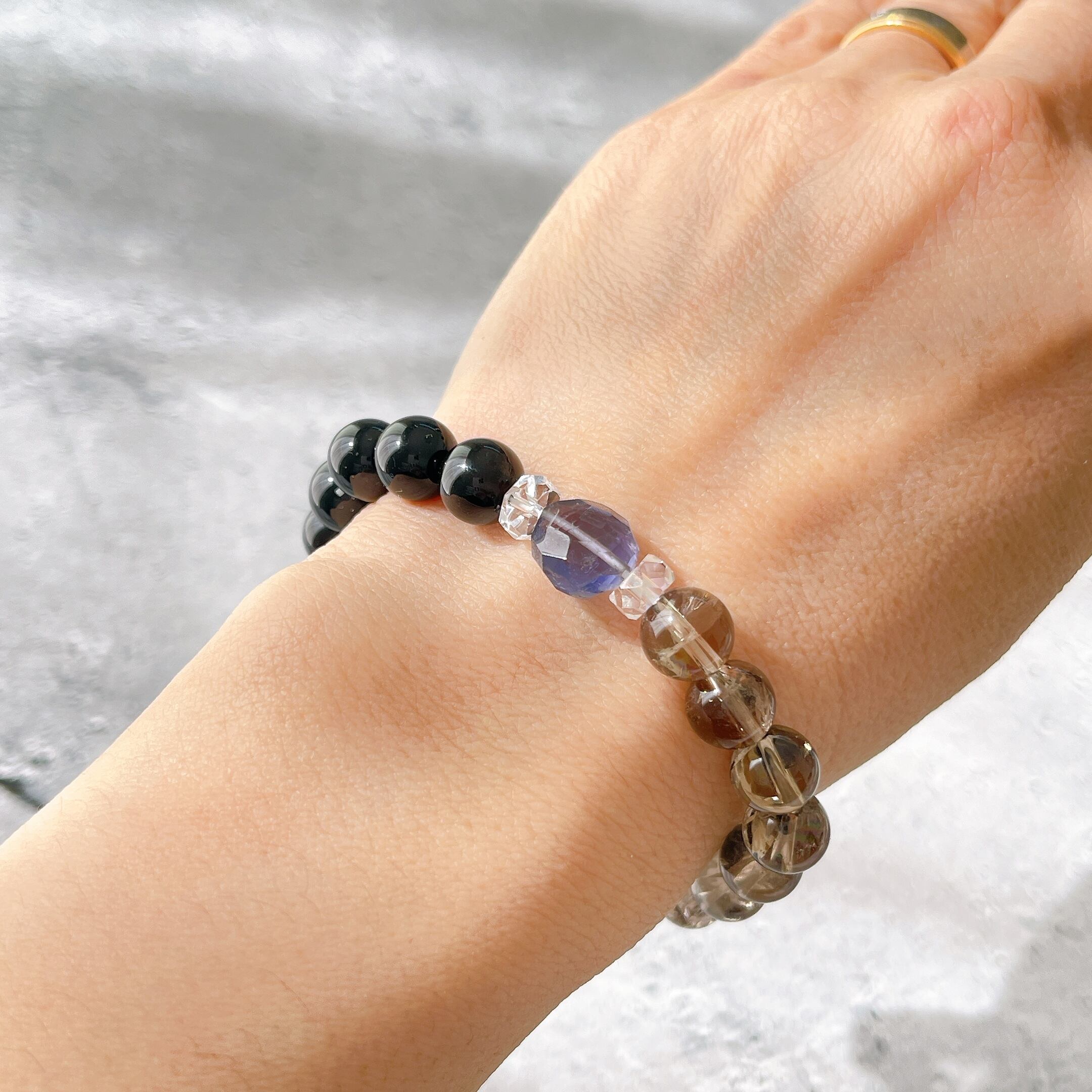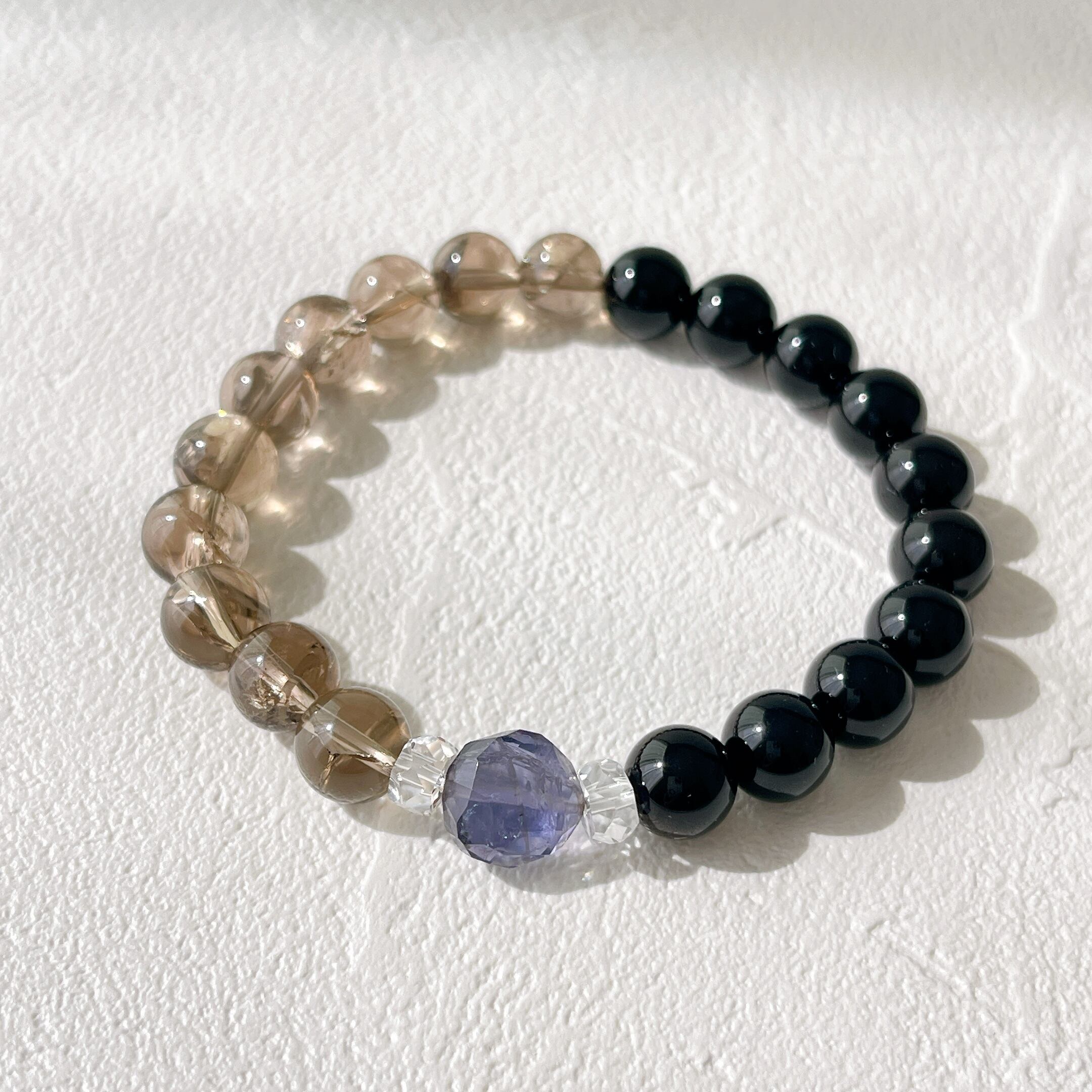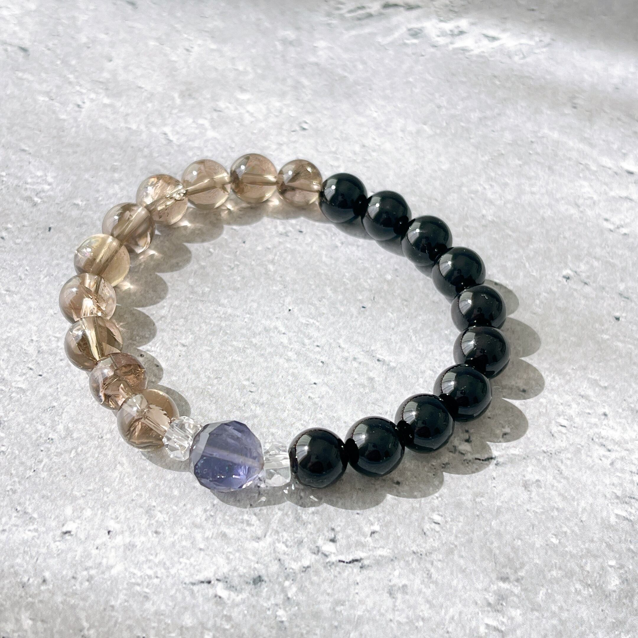 こちらのブレスレットには、漆黒のモリオンに、