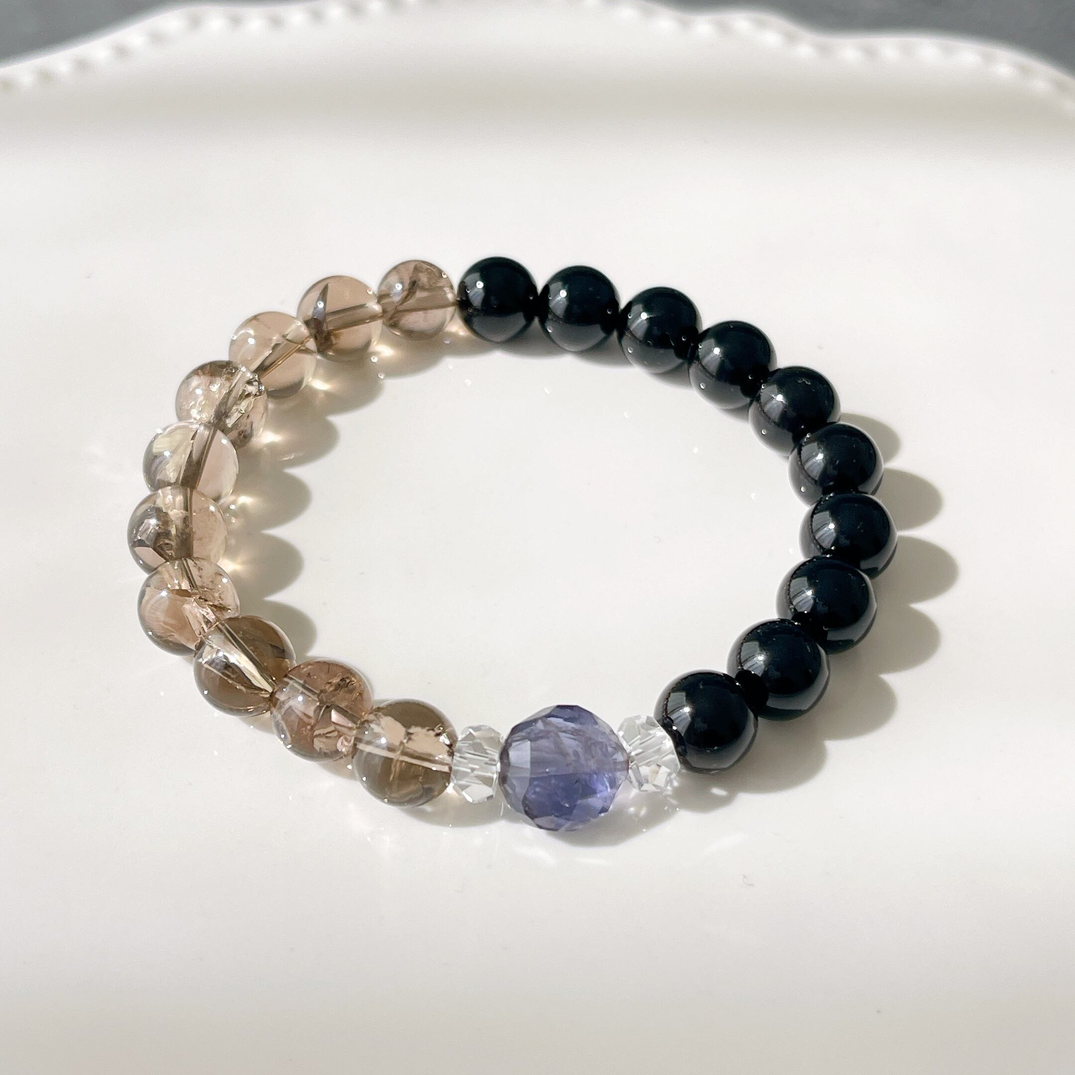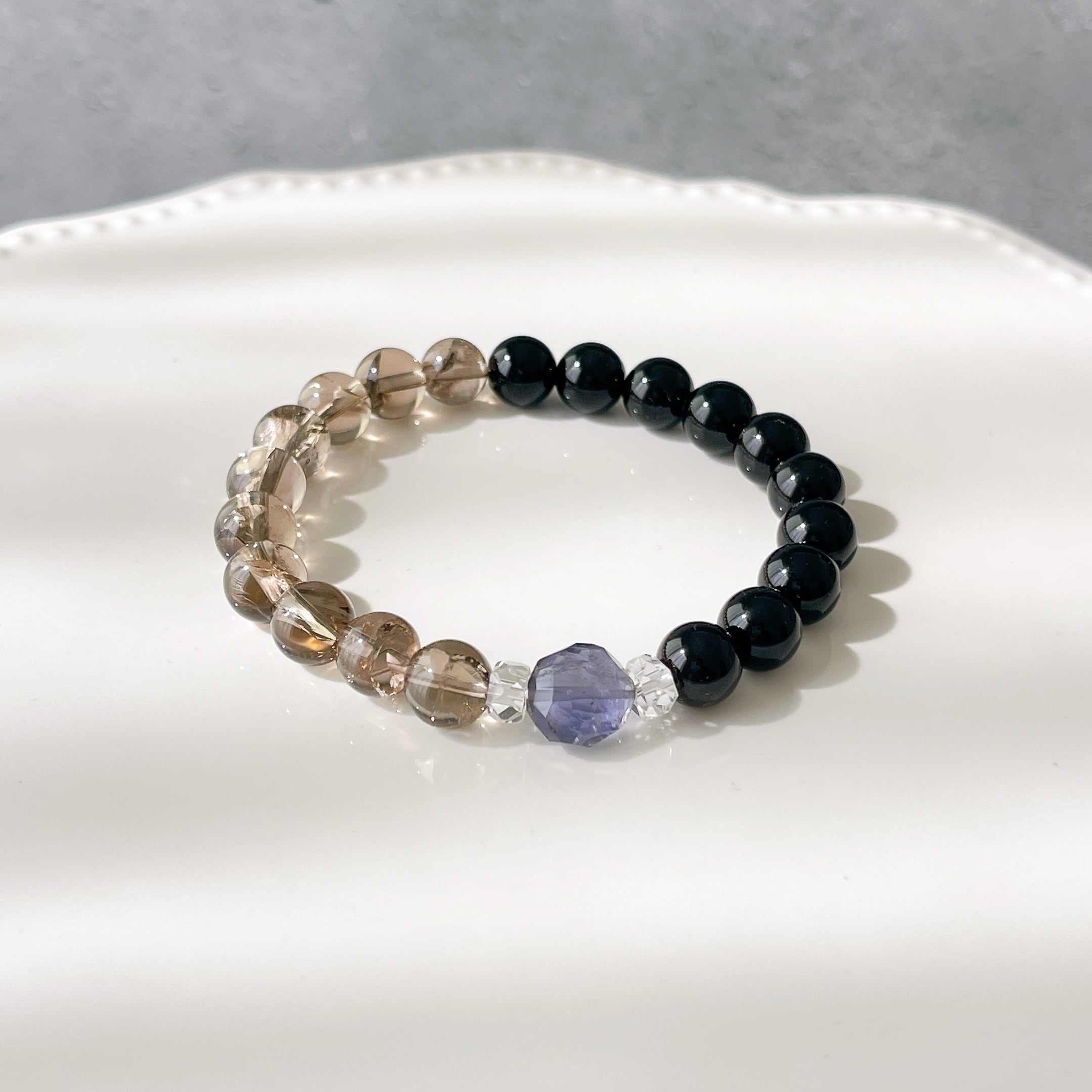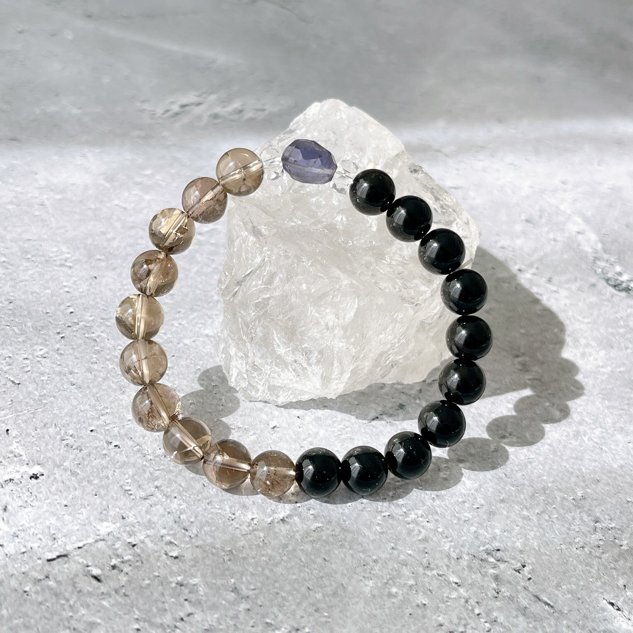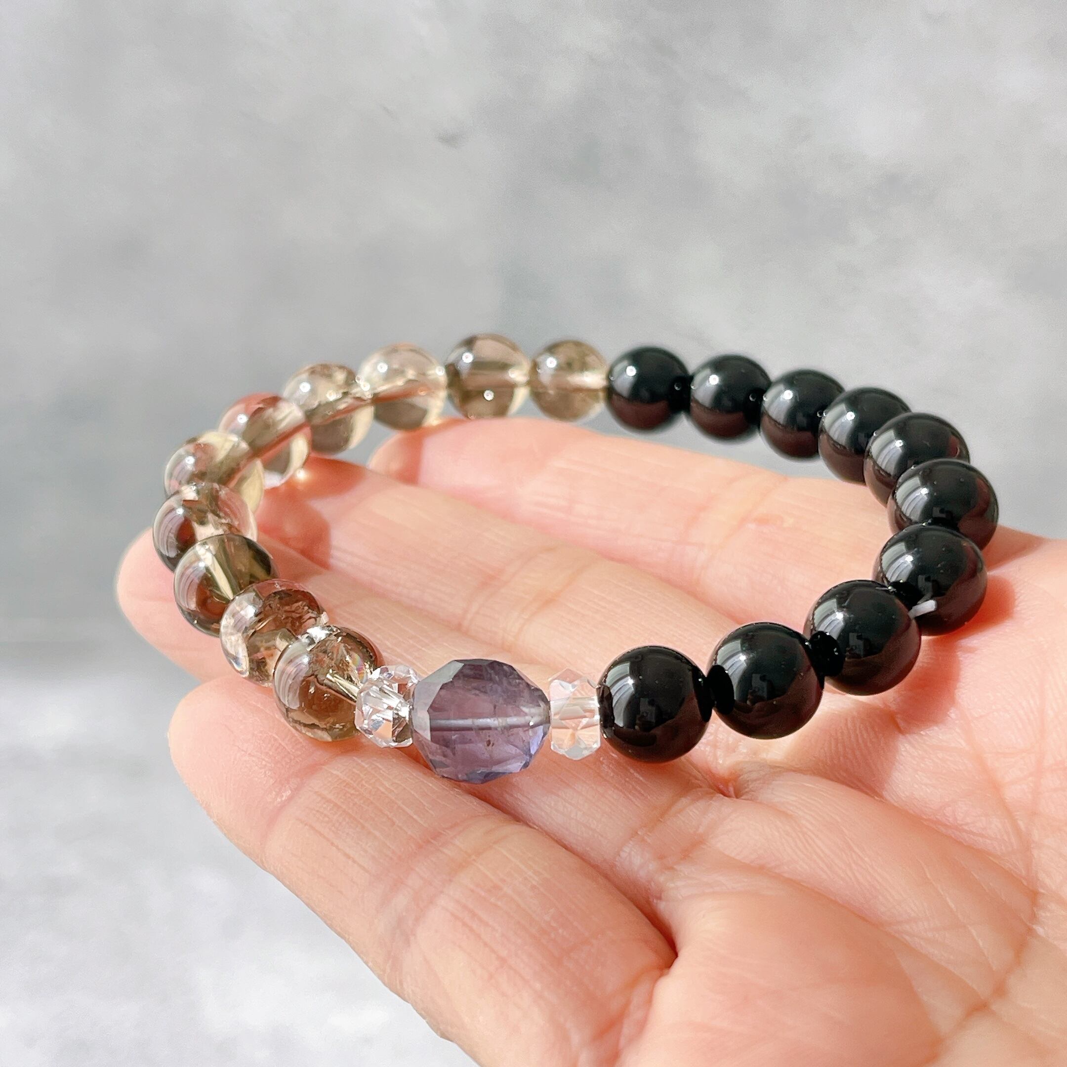 こちらのブレスレットには、漆黒のモリオンに、