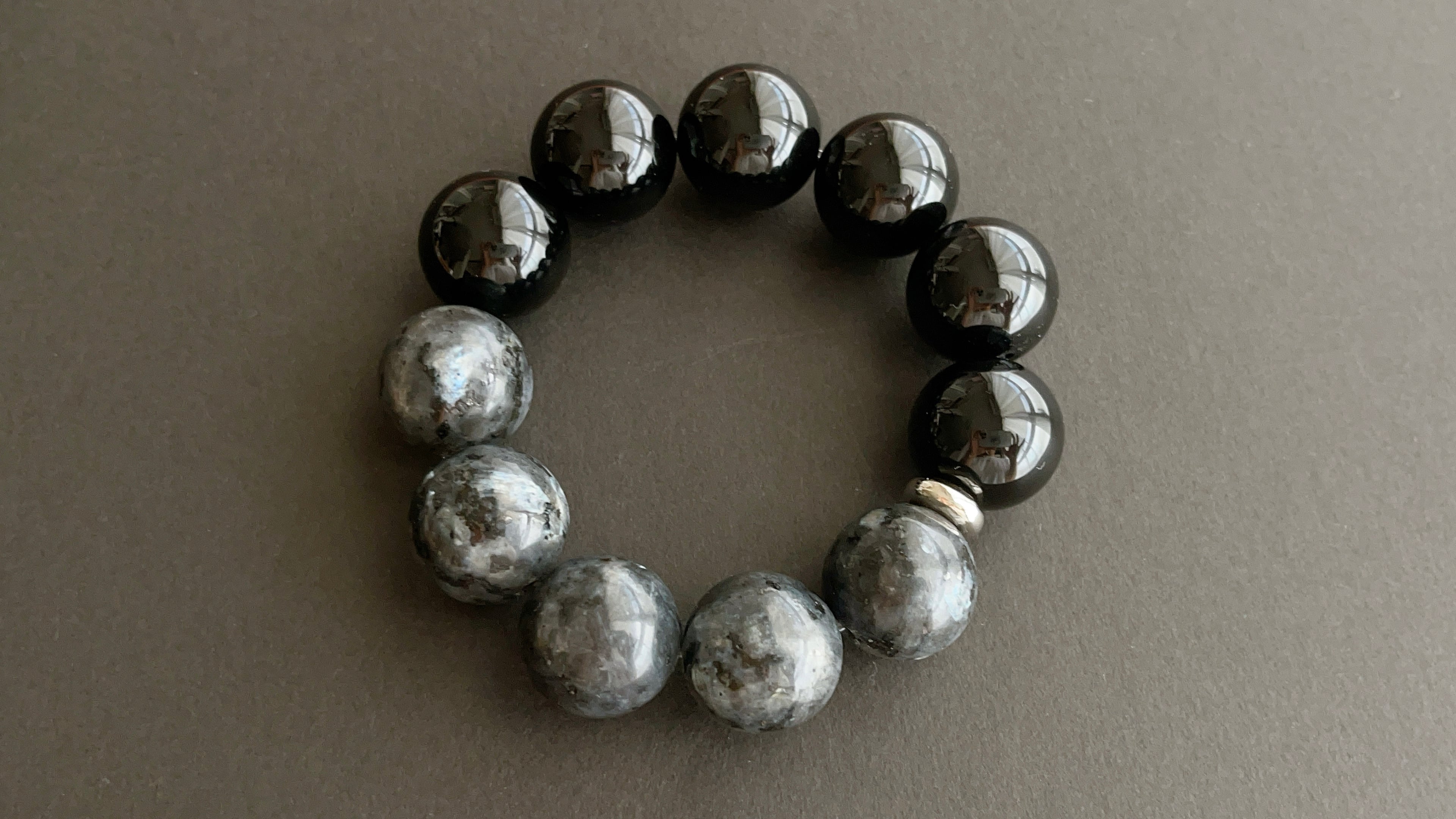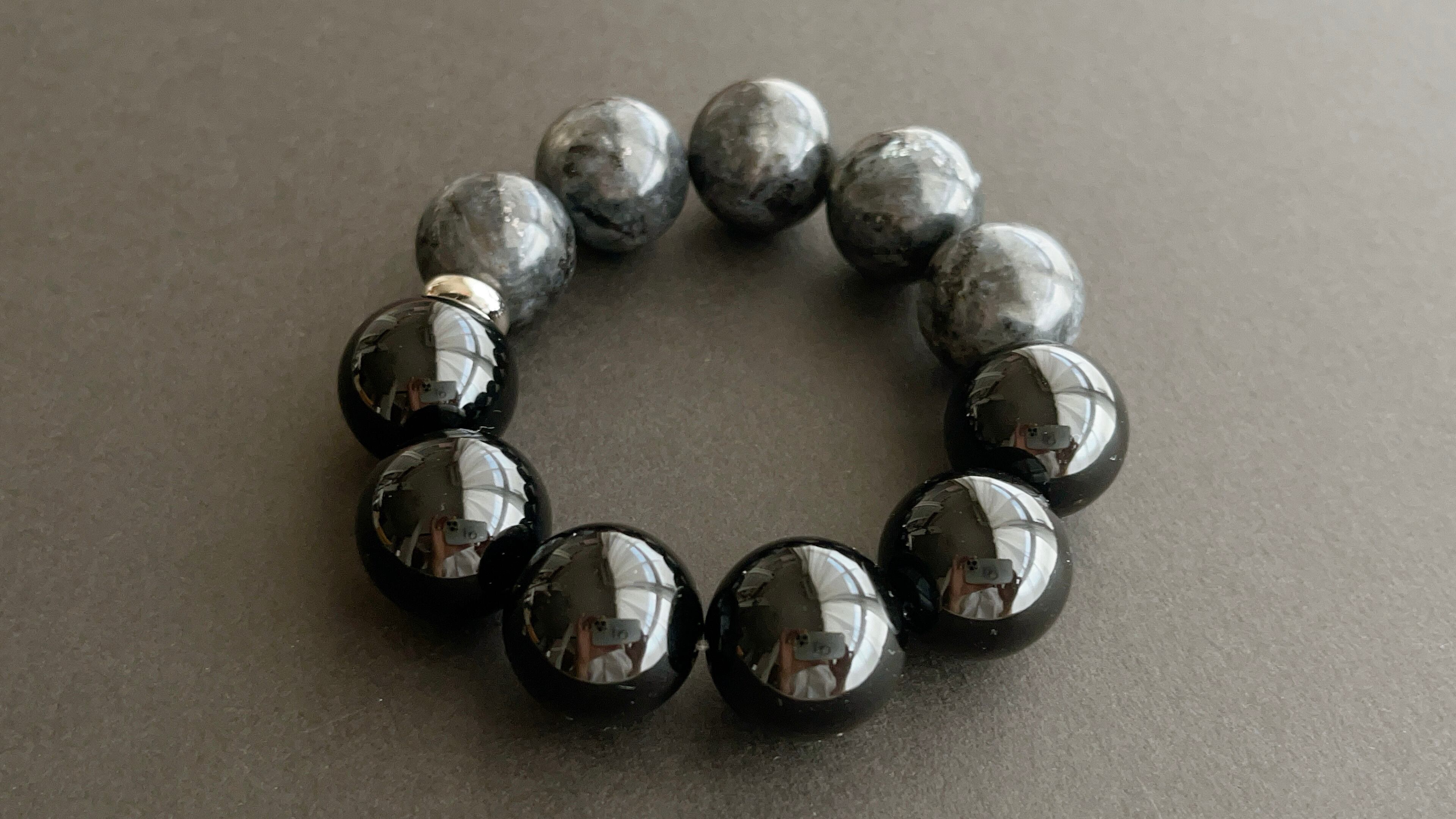 ・19cm弱(メタルビーズ2個・モリオン7粒・ラルビカイト6粒)→ 900円