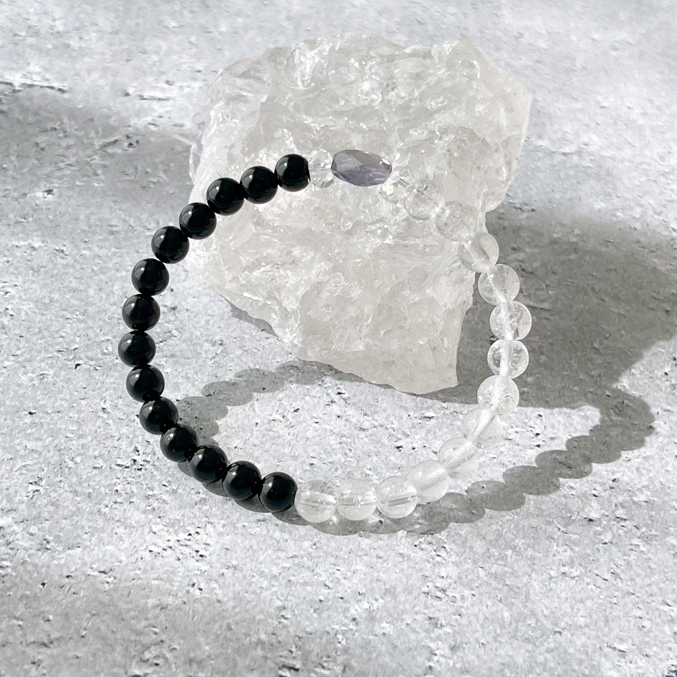 こちらのブレスレットには、漆黒のモリオンに、