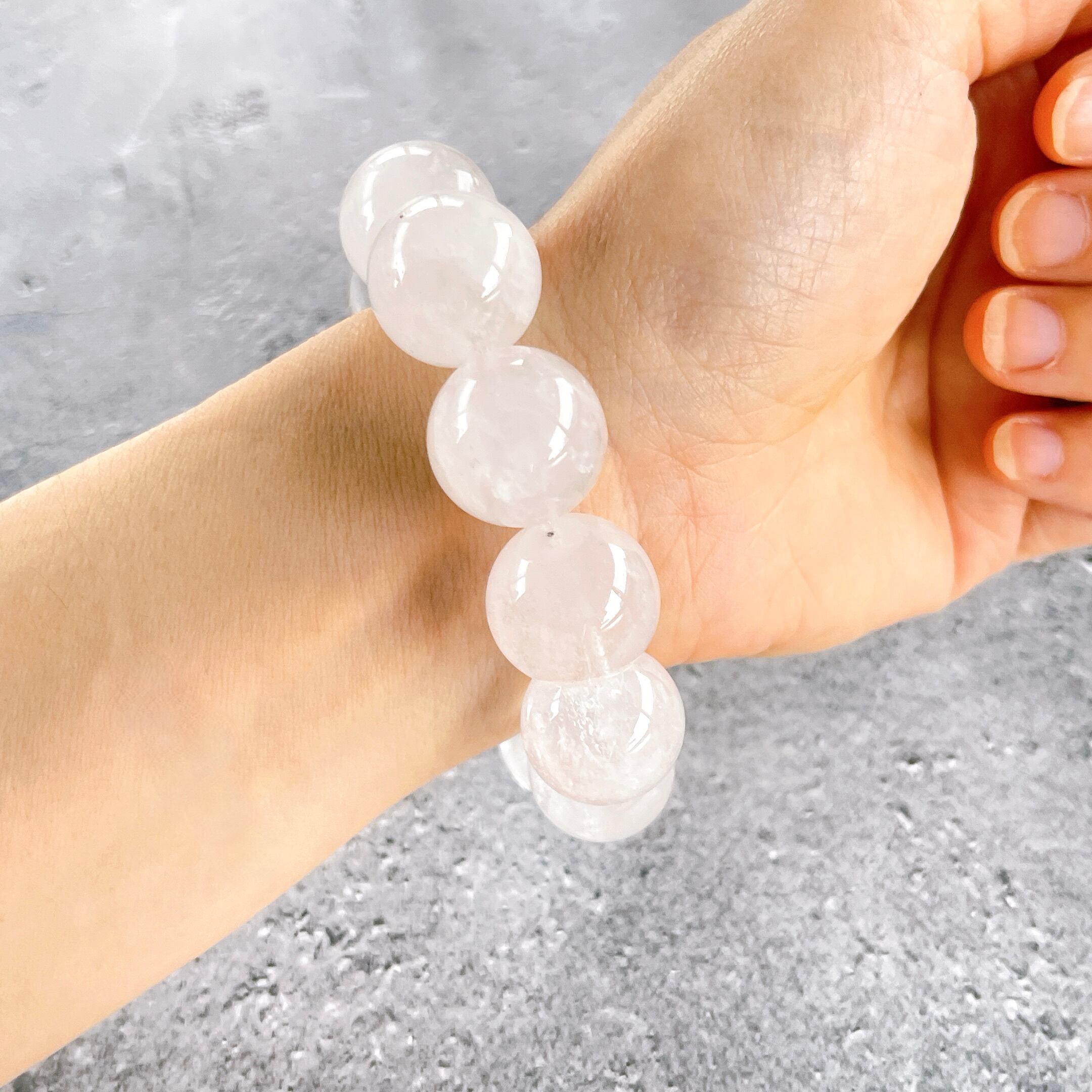 大玉ブレスレットのゆったりサイズは手首サイズ+1cmになります。