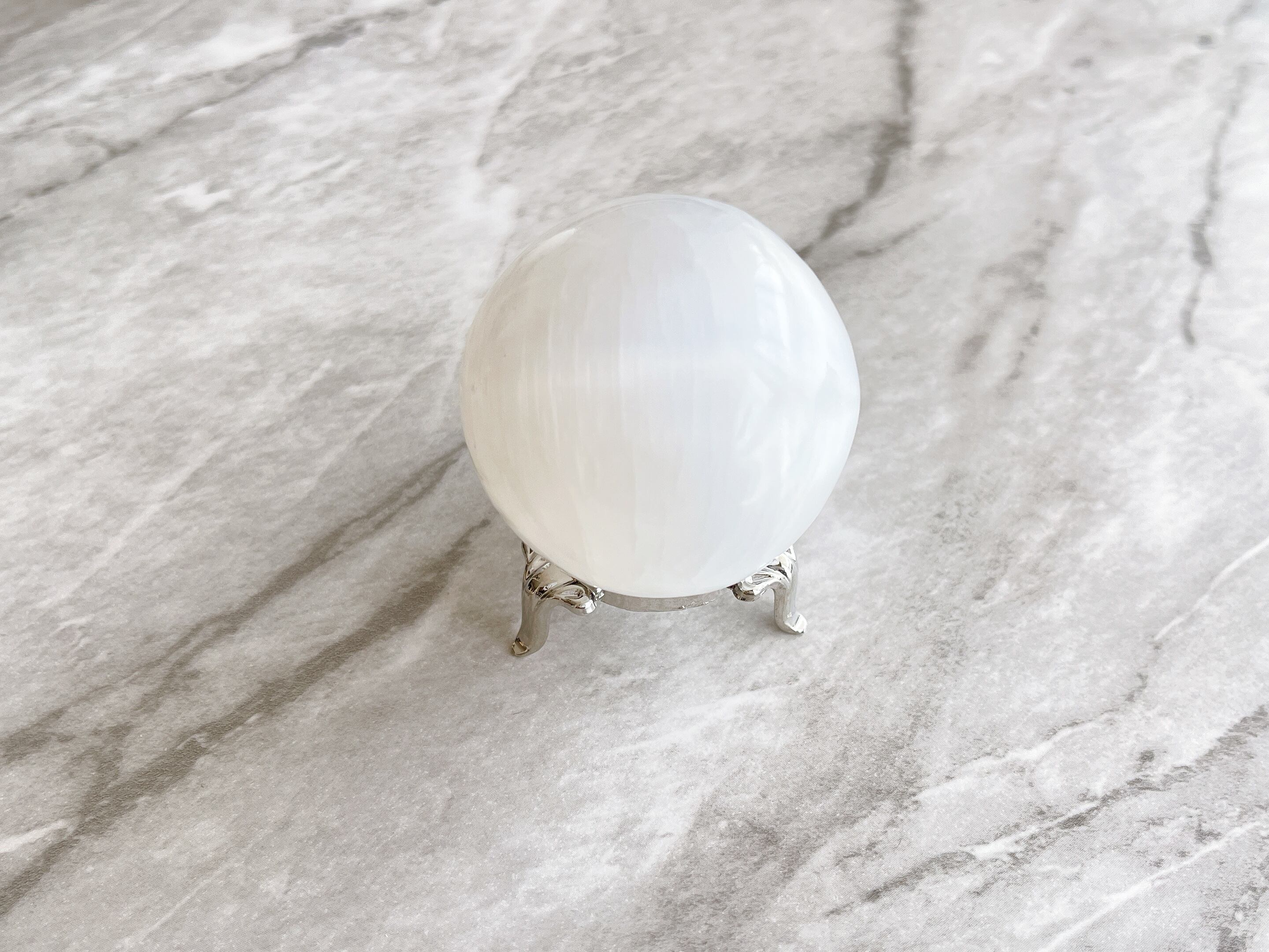 セレナイト・スフィア【B:50mm】✧浄化グッズ✧インテリア✧台座付き