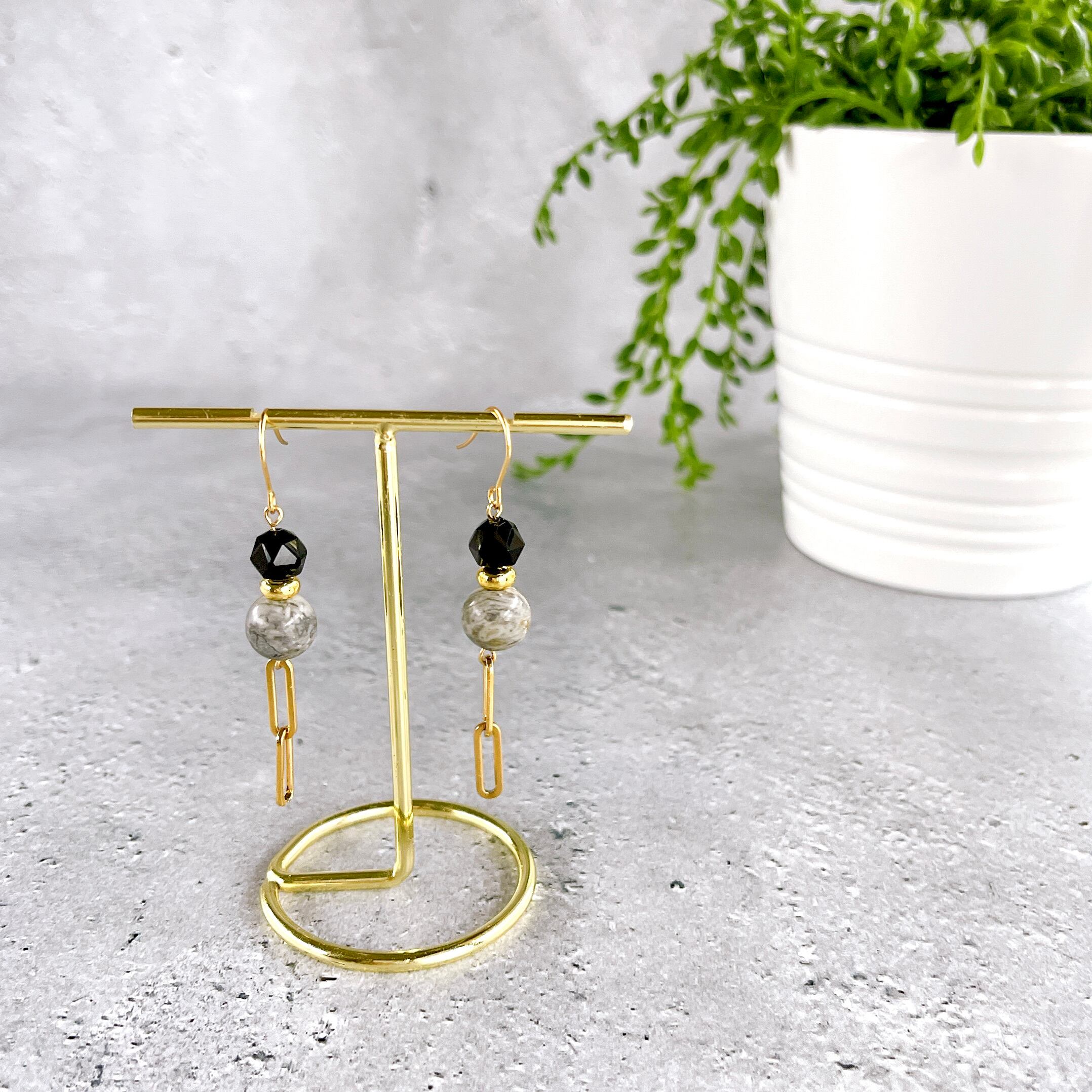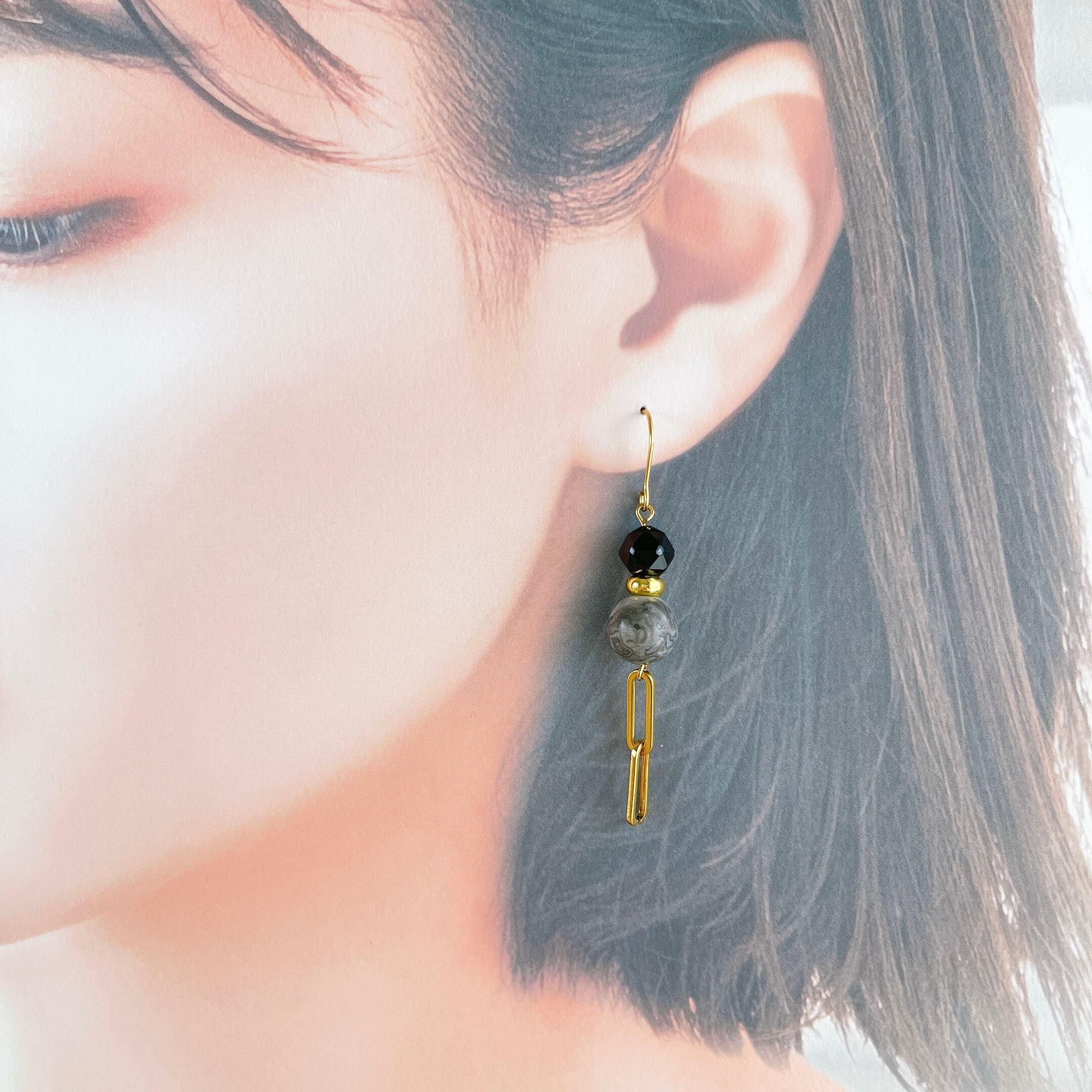 天然石ピアス ピアス グレージャスパー グレージャスパーピアス お守りピアス モリオンピアス モリオン