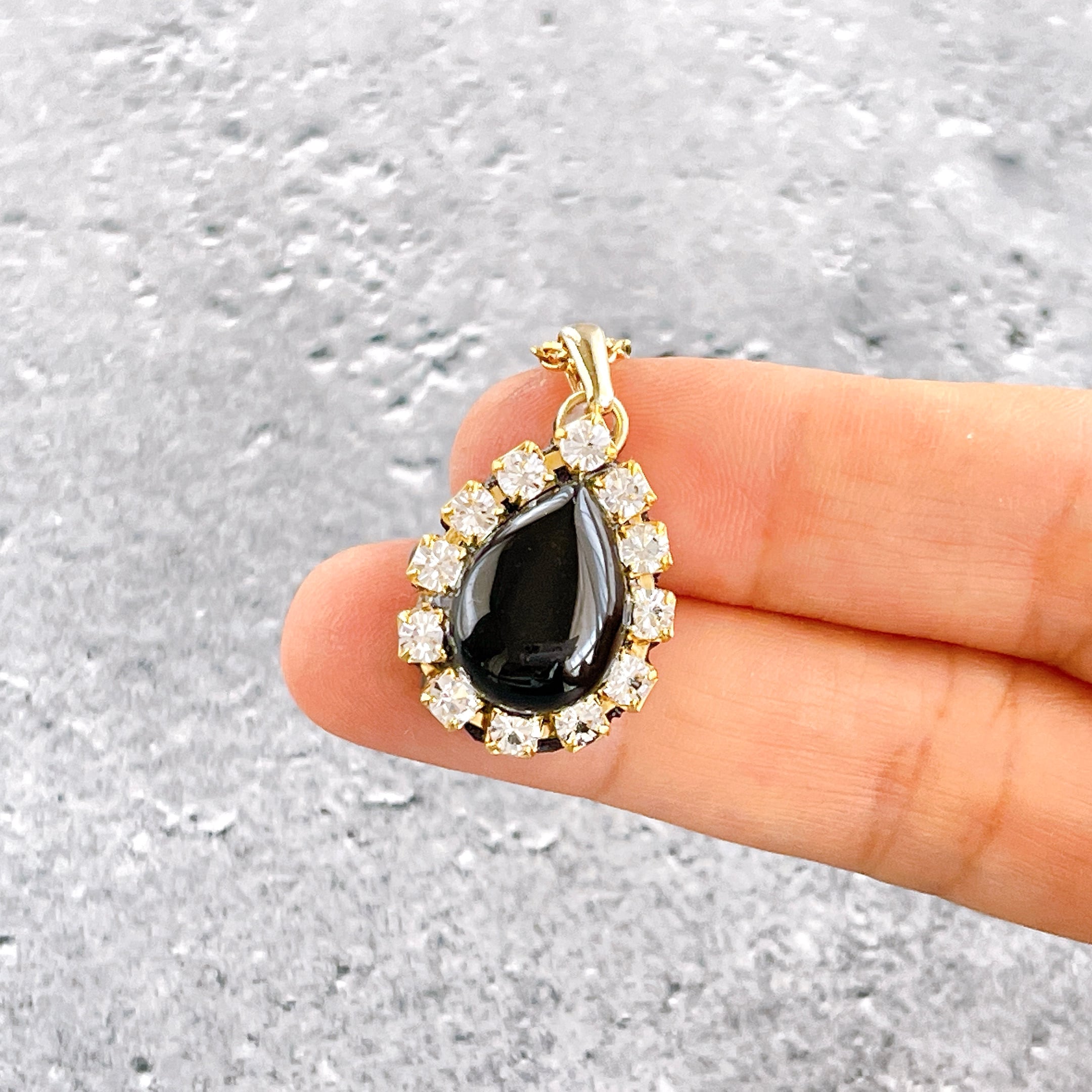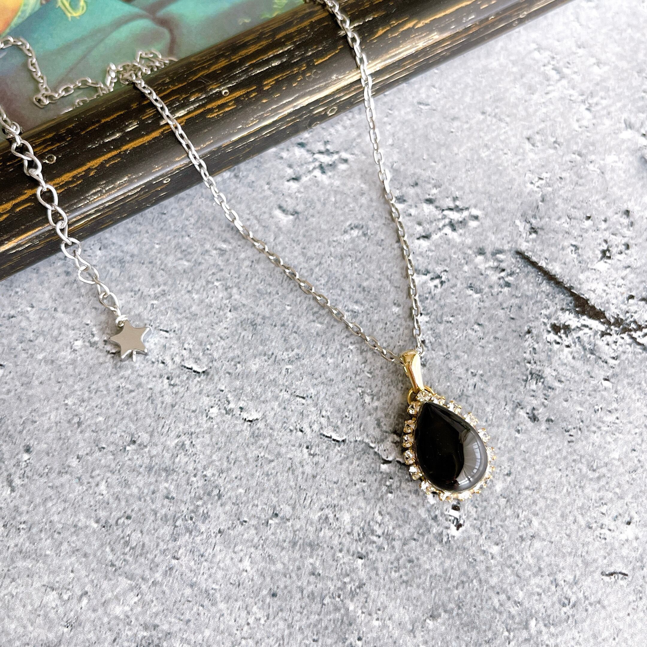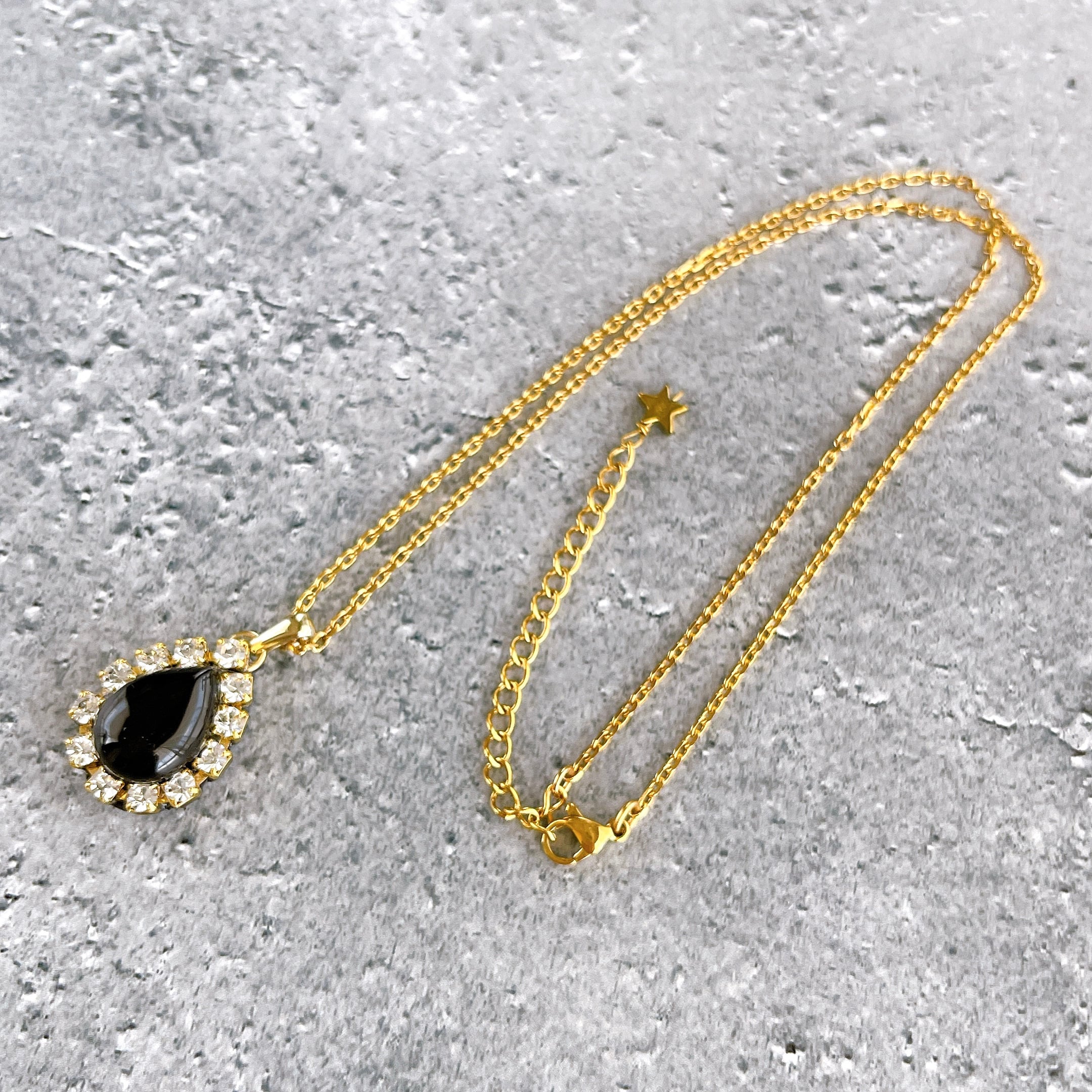 漆黒 宇宙 銀河 天然石 ネックレス モリオンネックレス モリオン 黒水晶 ラインストーン