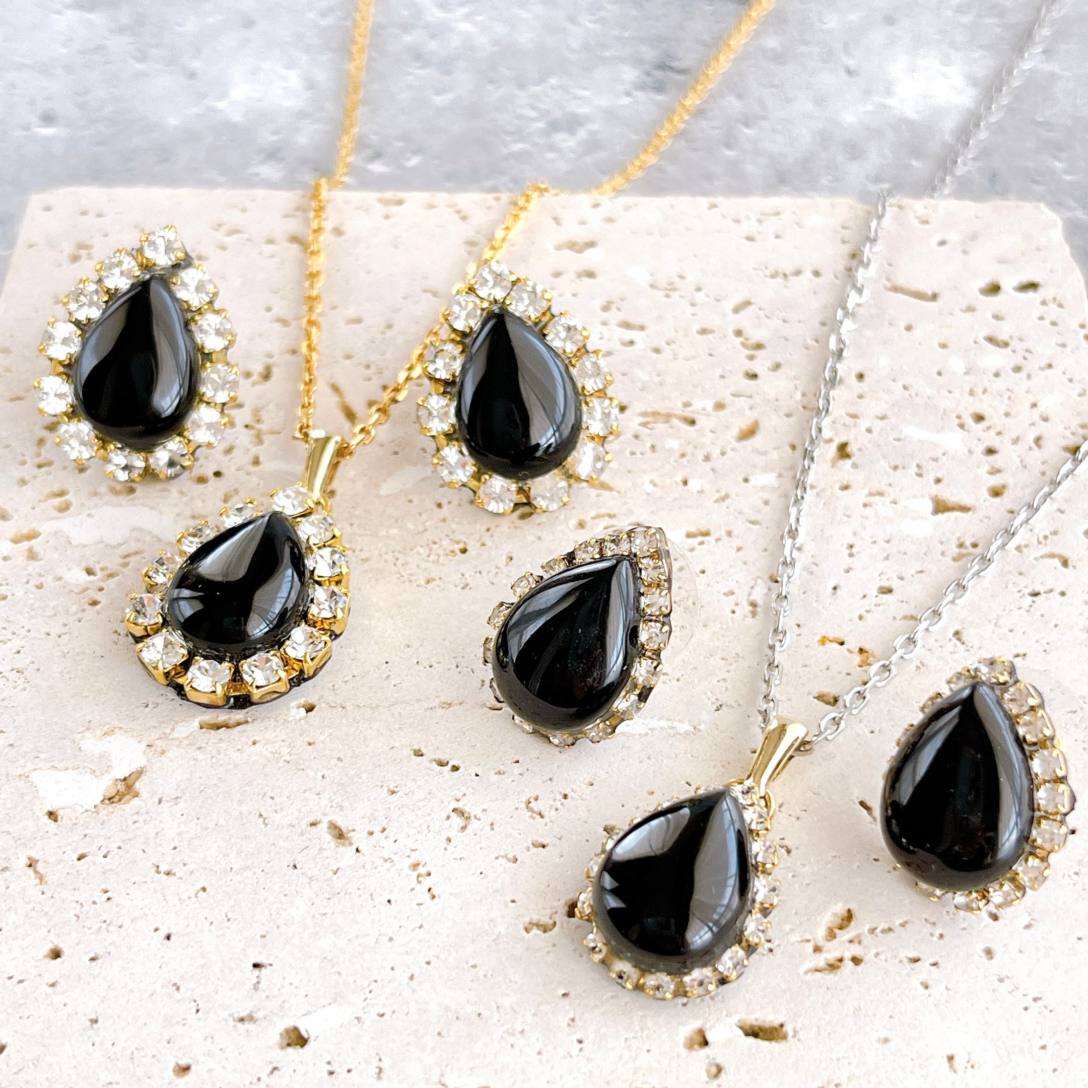 ◆漆黒の宇宙✧GALAXY✧ピアス+ネックレス+リング3点FULL SET