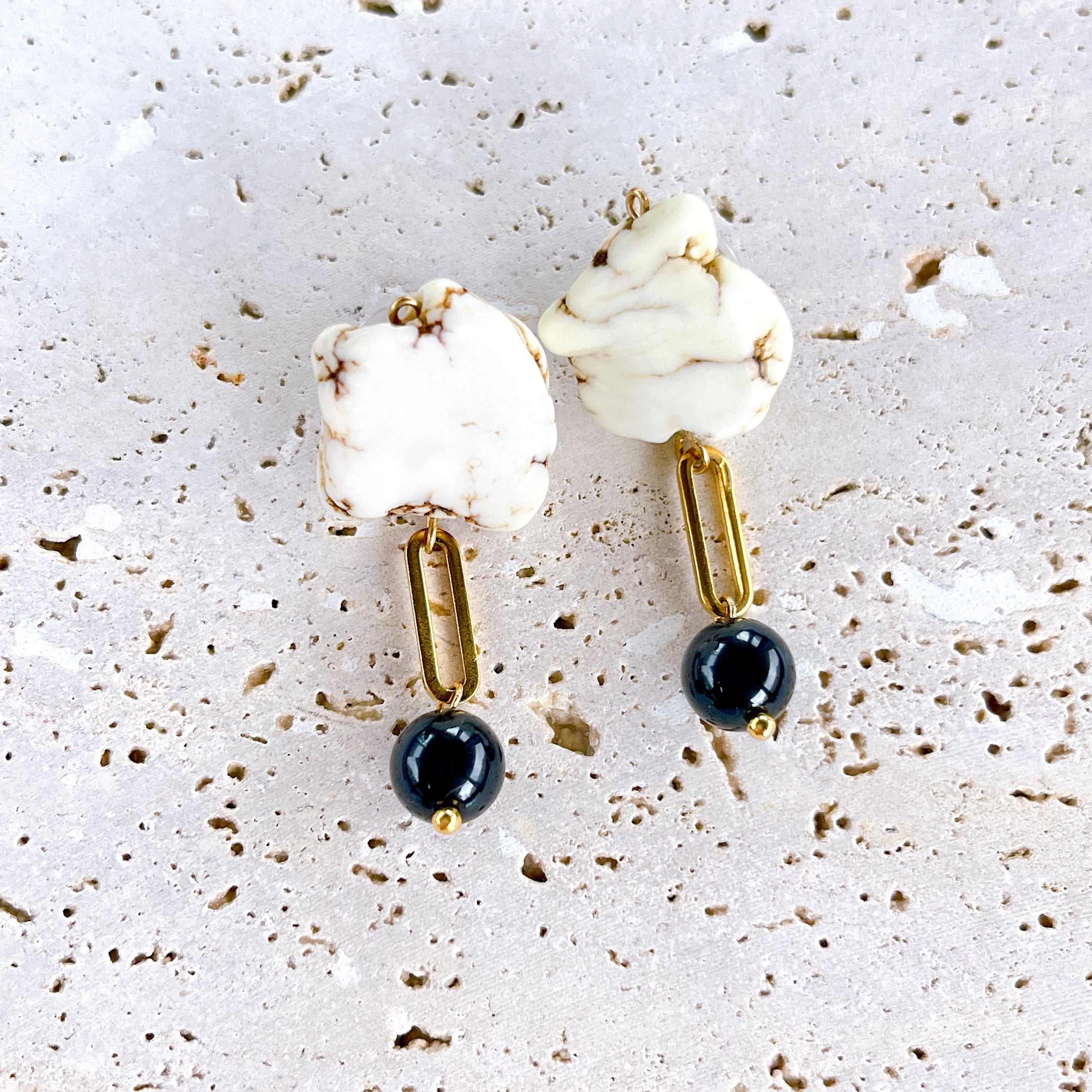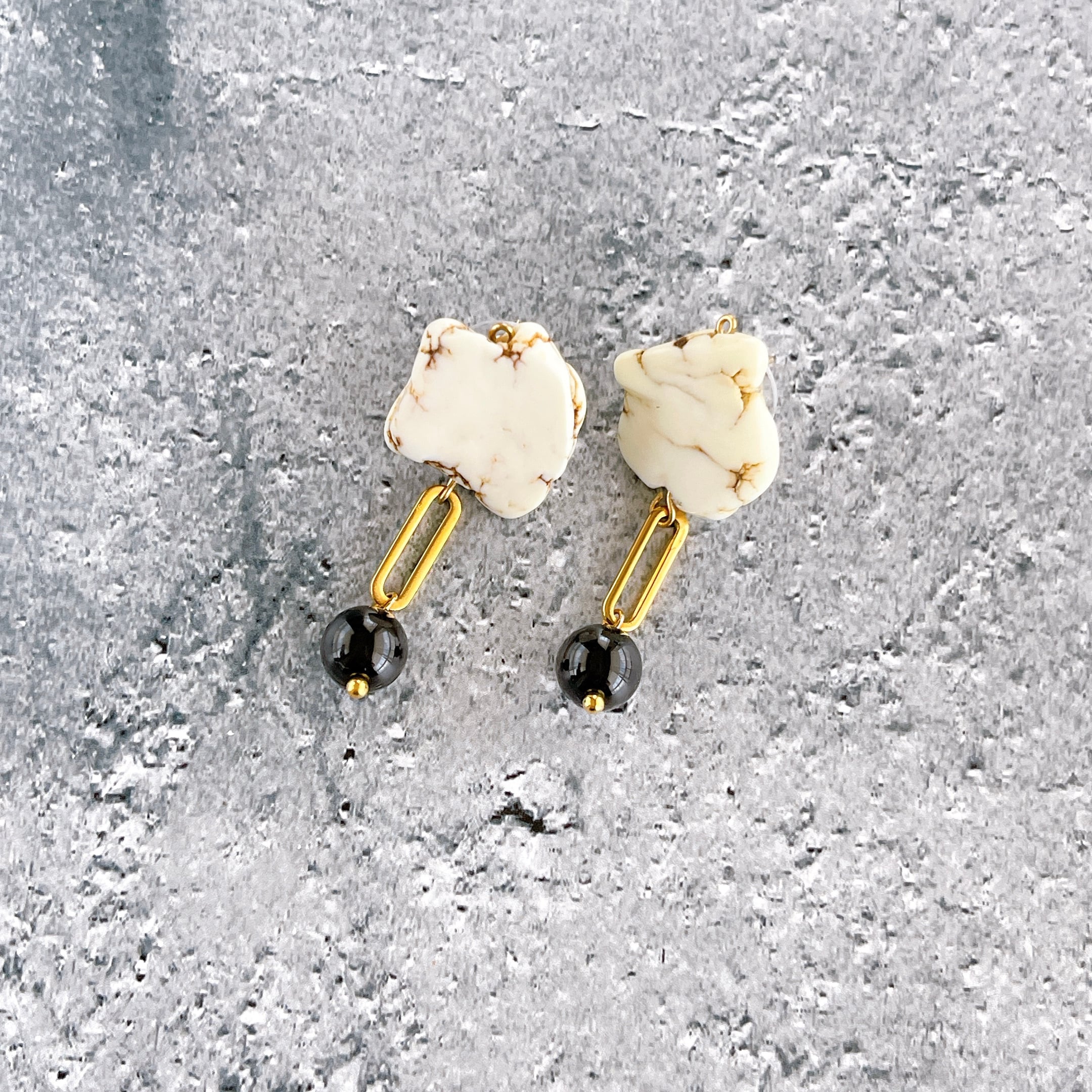 マグネサイトスライスの自然な形が魅力のピアスです。