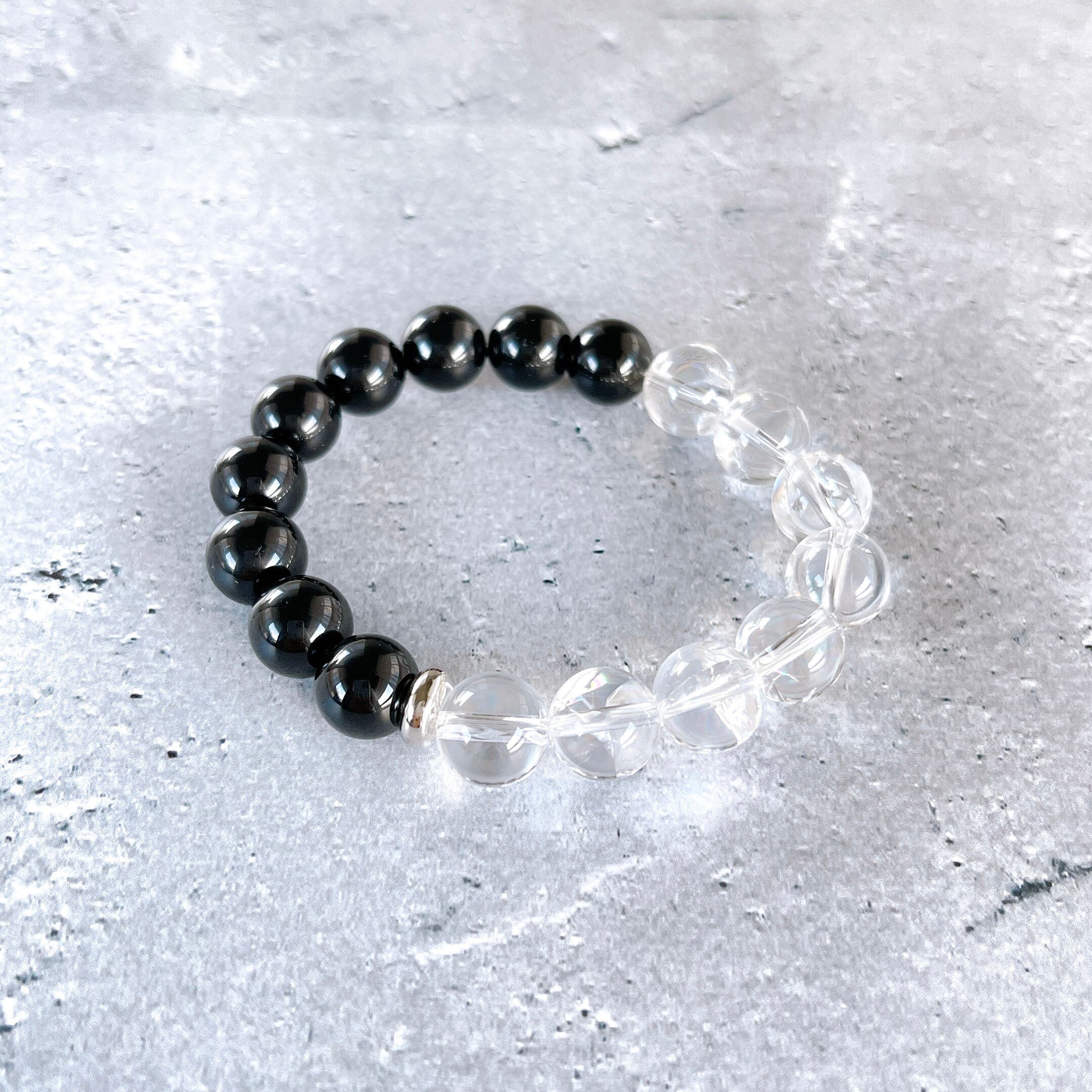 モリオンとアイリスクォーツの、ユニセックスなデザインのブレスレットです。