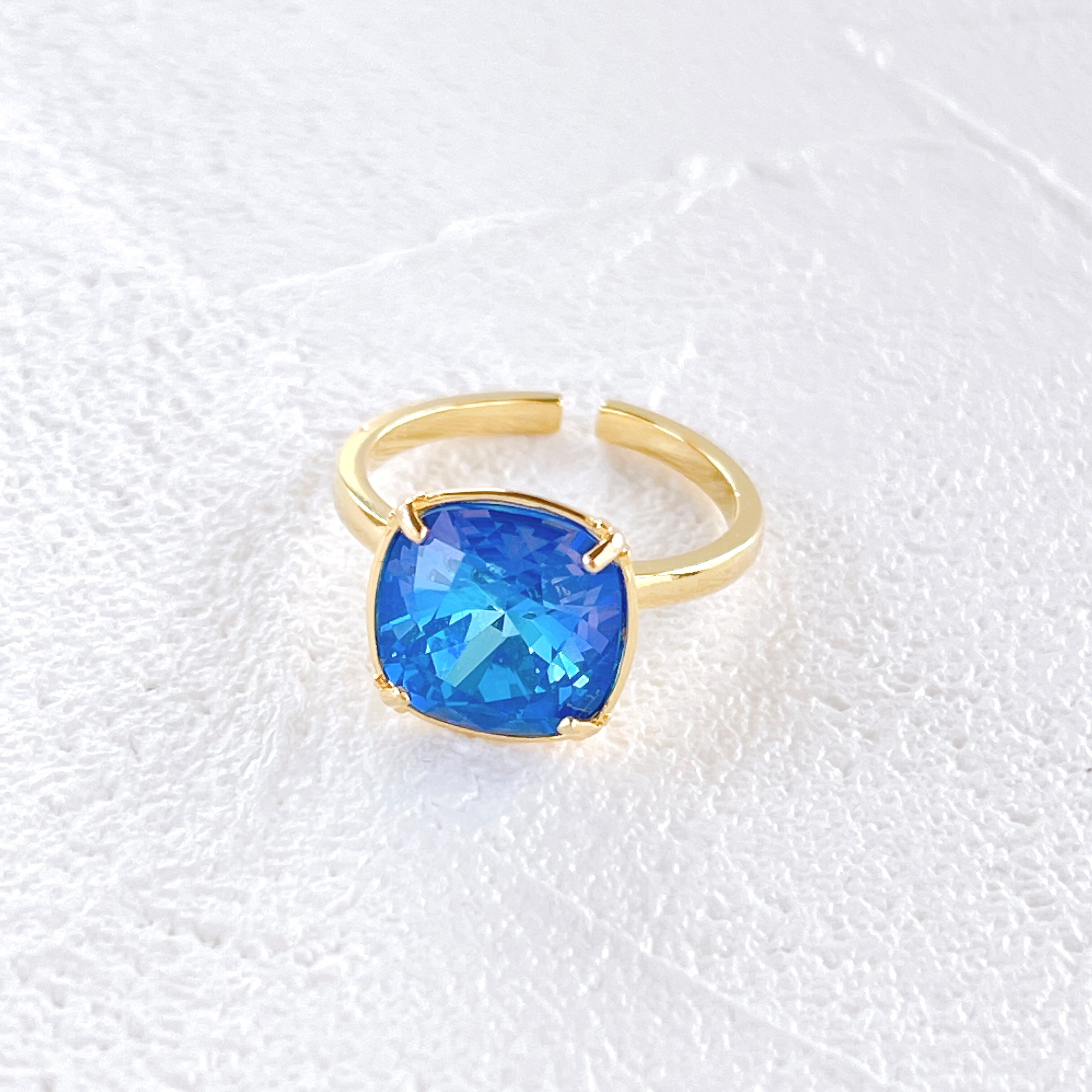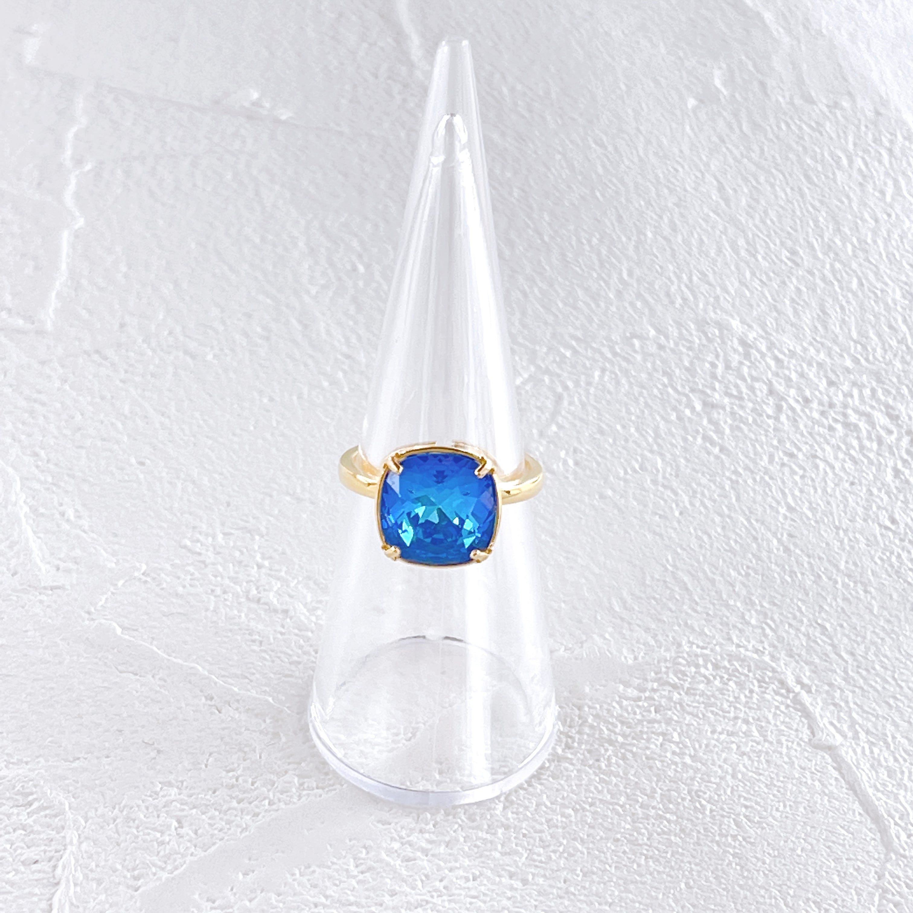 ロイヤルブルーディライト・大粒ビジューリング✧クリスタルガラス・ファッションリング