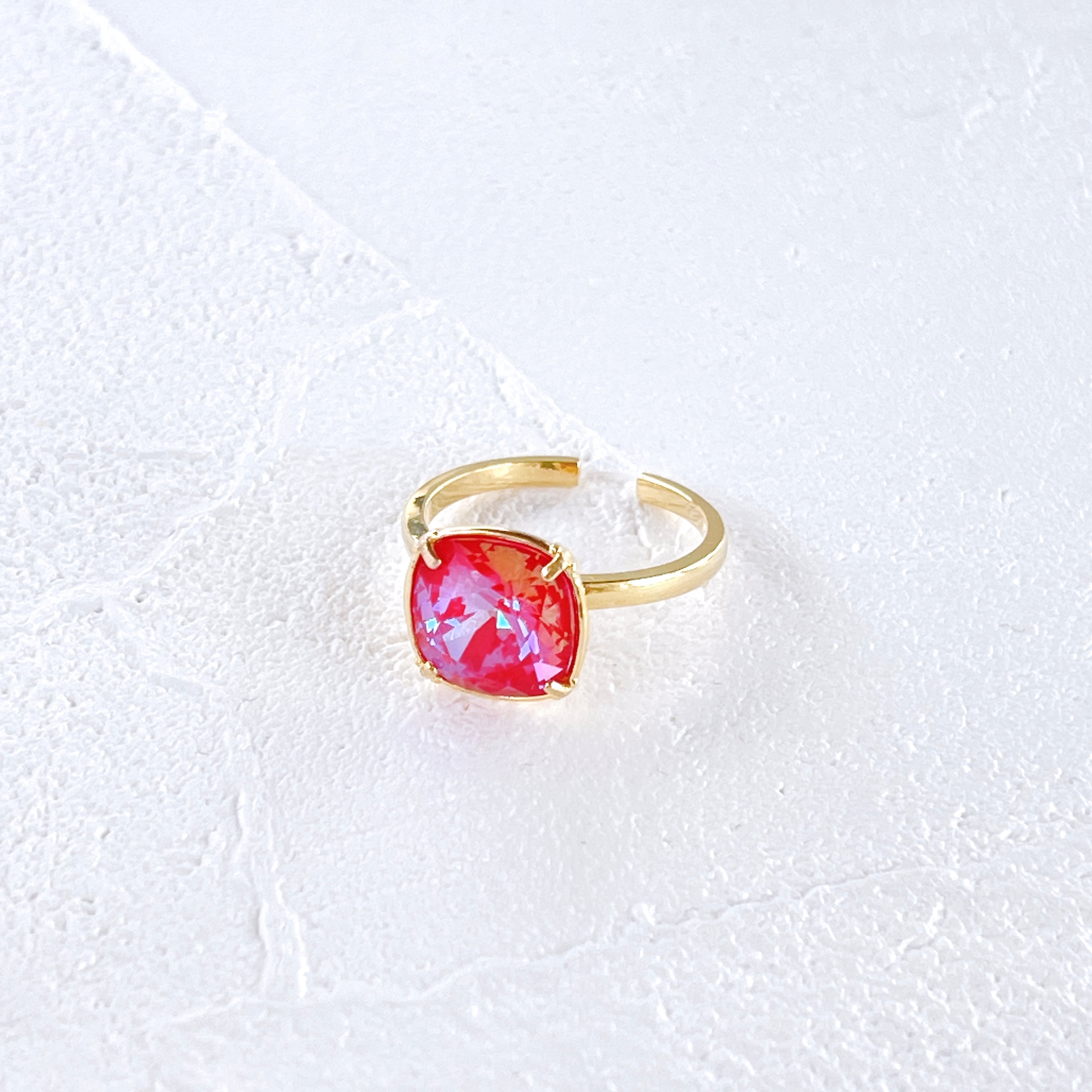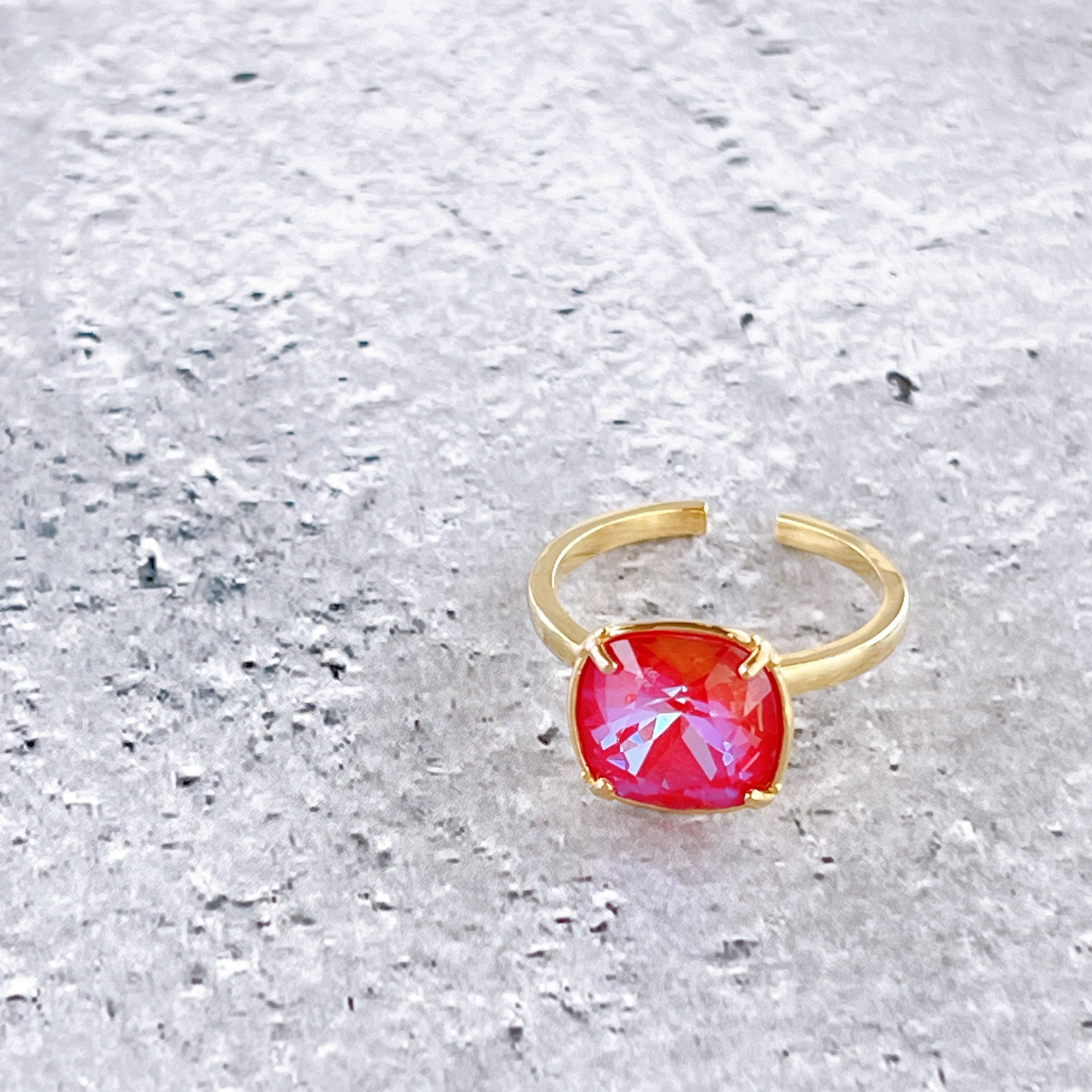 ロイヤルレッドディライト・大粒ビジューリング✧クリスタルガラス・ファッションリング