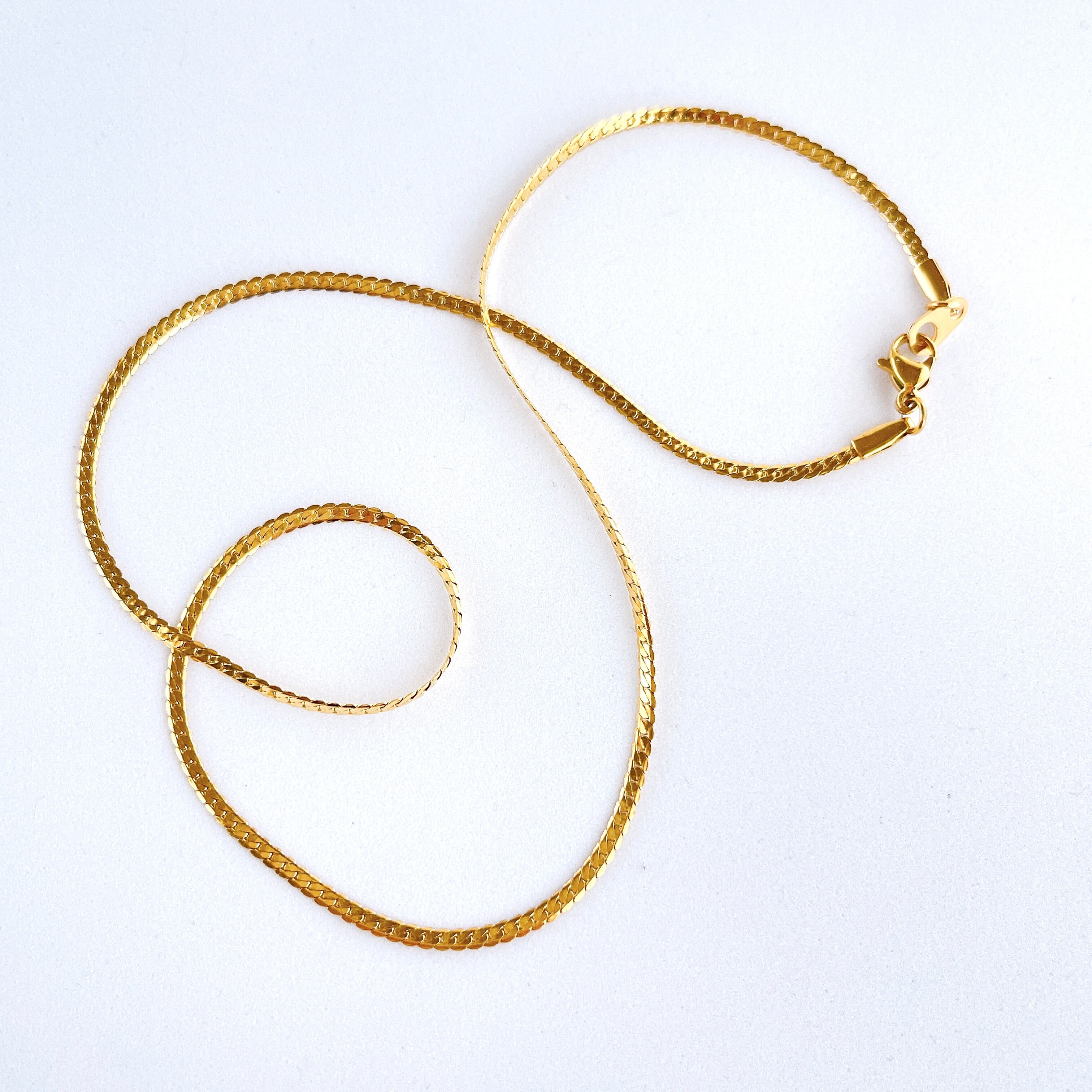 平打ちスネークチェーンGold :幅2mm、長さ約40cm(サージカルステンレス製)