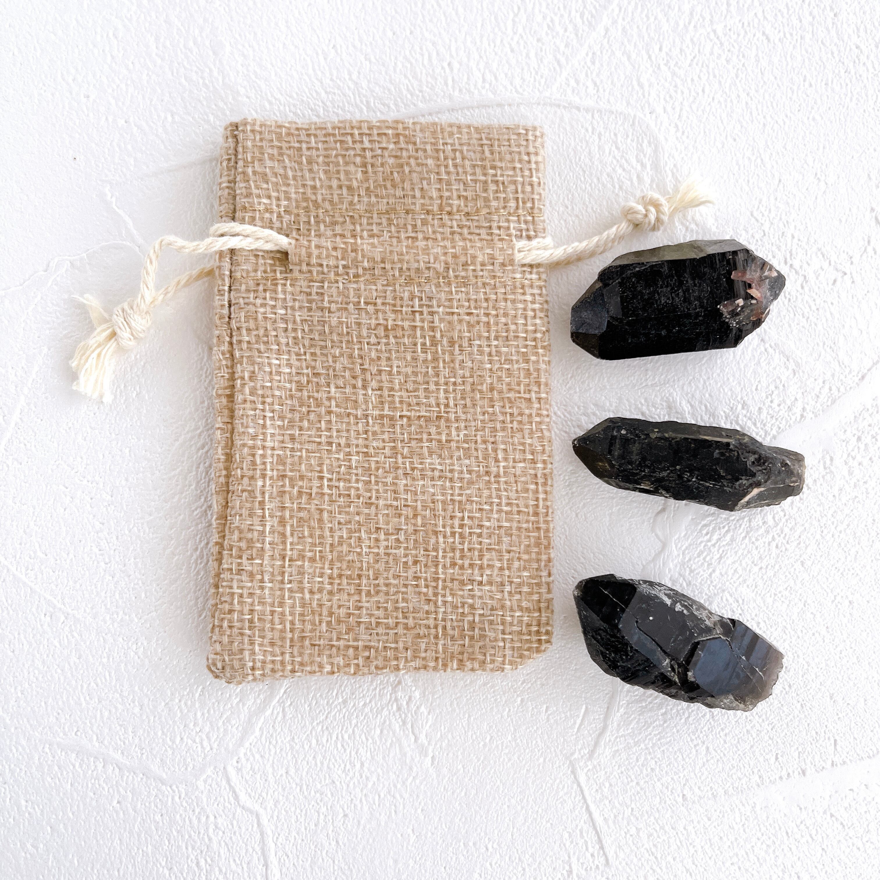 チベット産モリオンC・原石・18g ✧麻ポーチ付き✧黒水晶