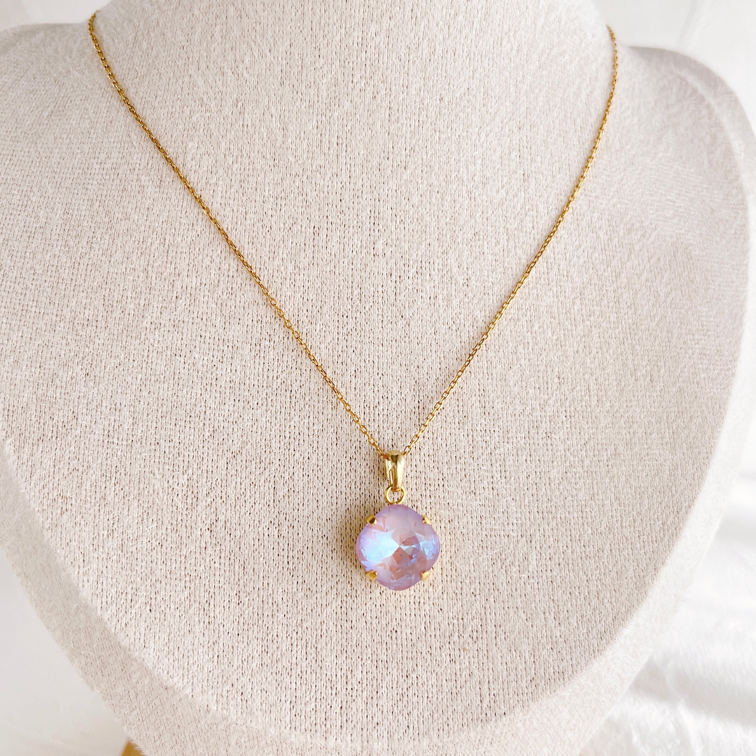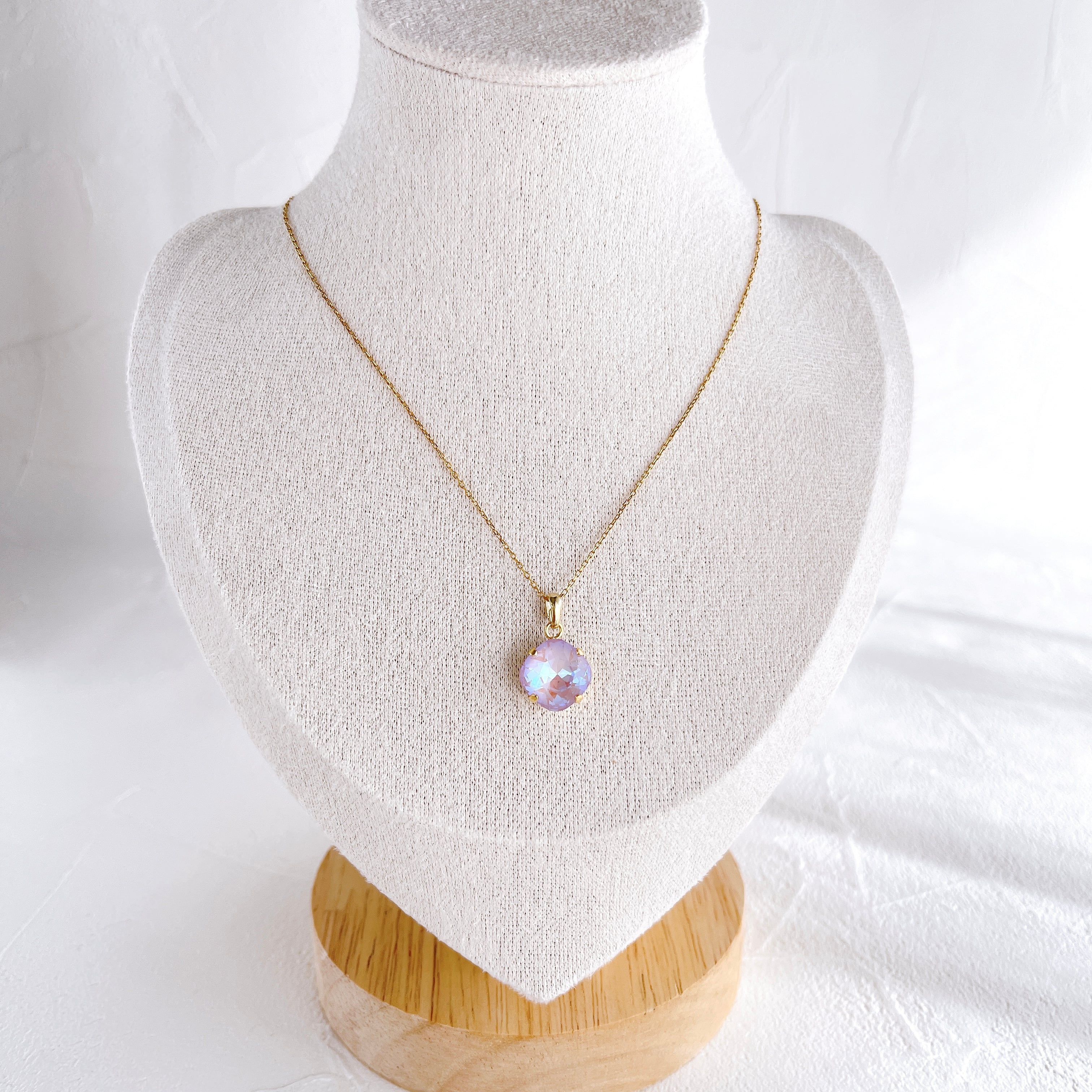 ラベンダーディライト・一粒ビジューネックレス✧クリスタルガラス✧サージカルステンレス✧50cm