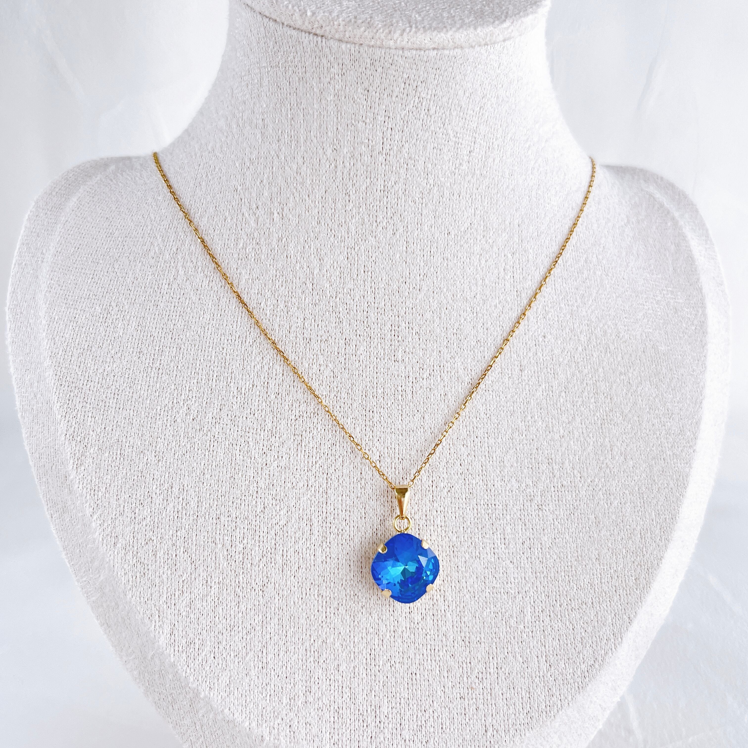 ロイヤルブルーディライト・一粒ビジューネックレス✧クリスタルガラス✧サージカルステンレス✧50cm