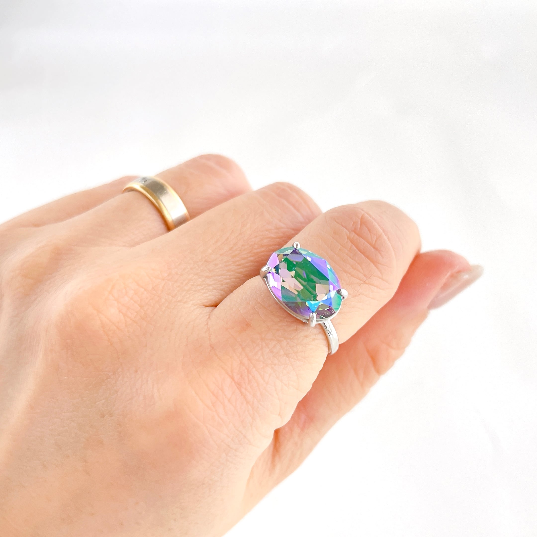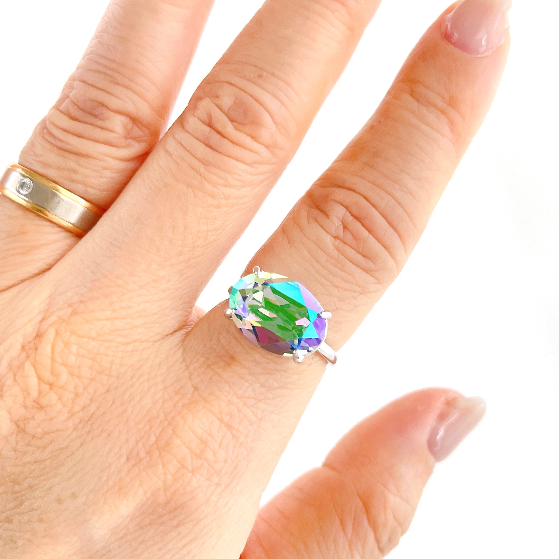 パラダイスシャイン・オーバル大粒ビジューリング✧クリスタルガラス・ファッションリング