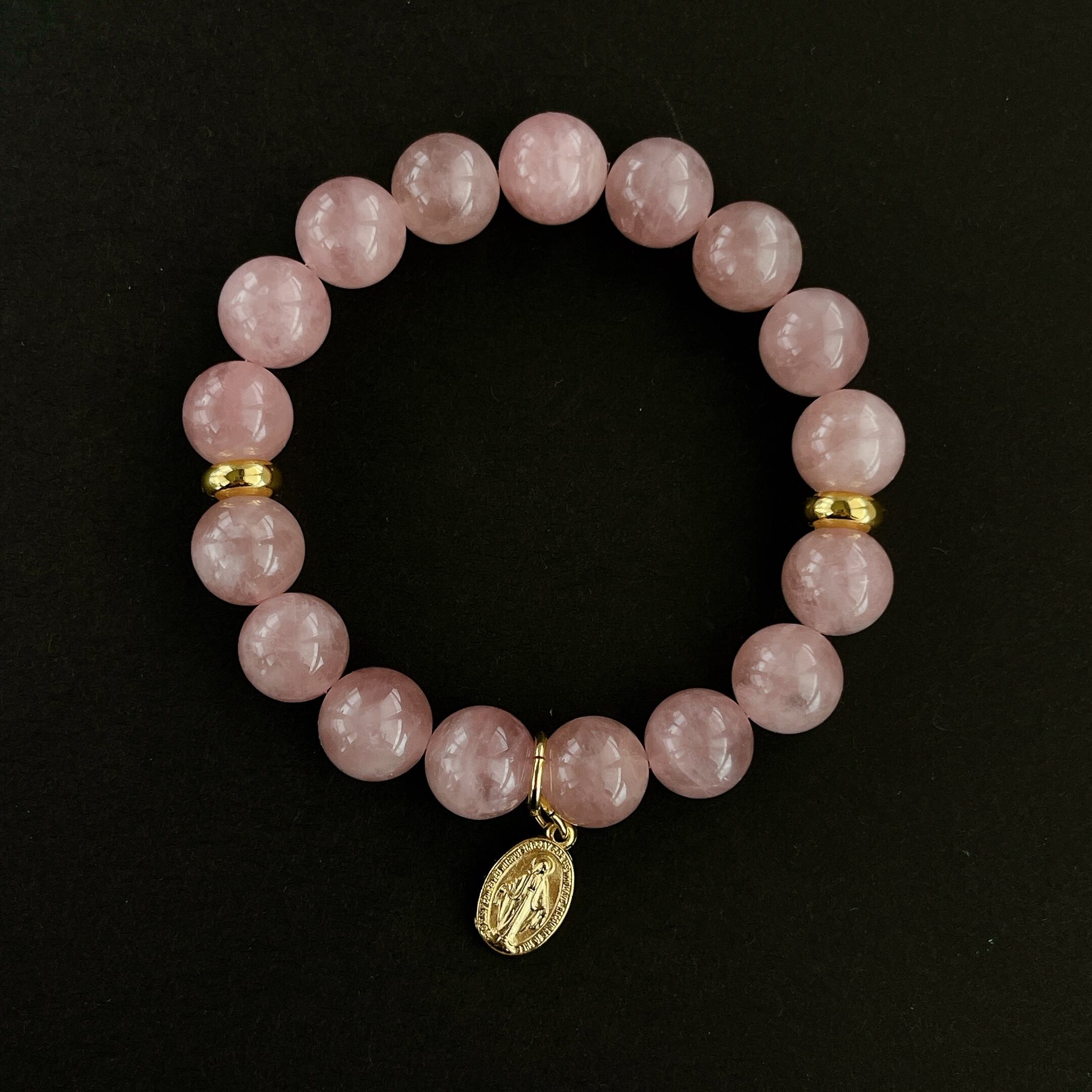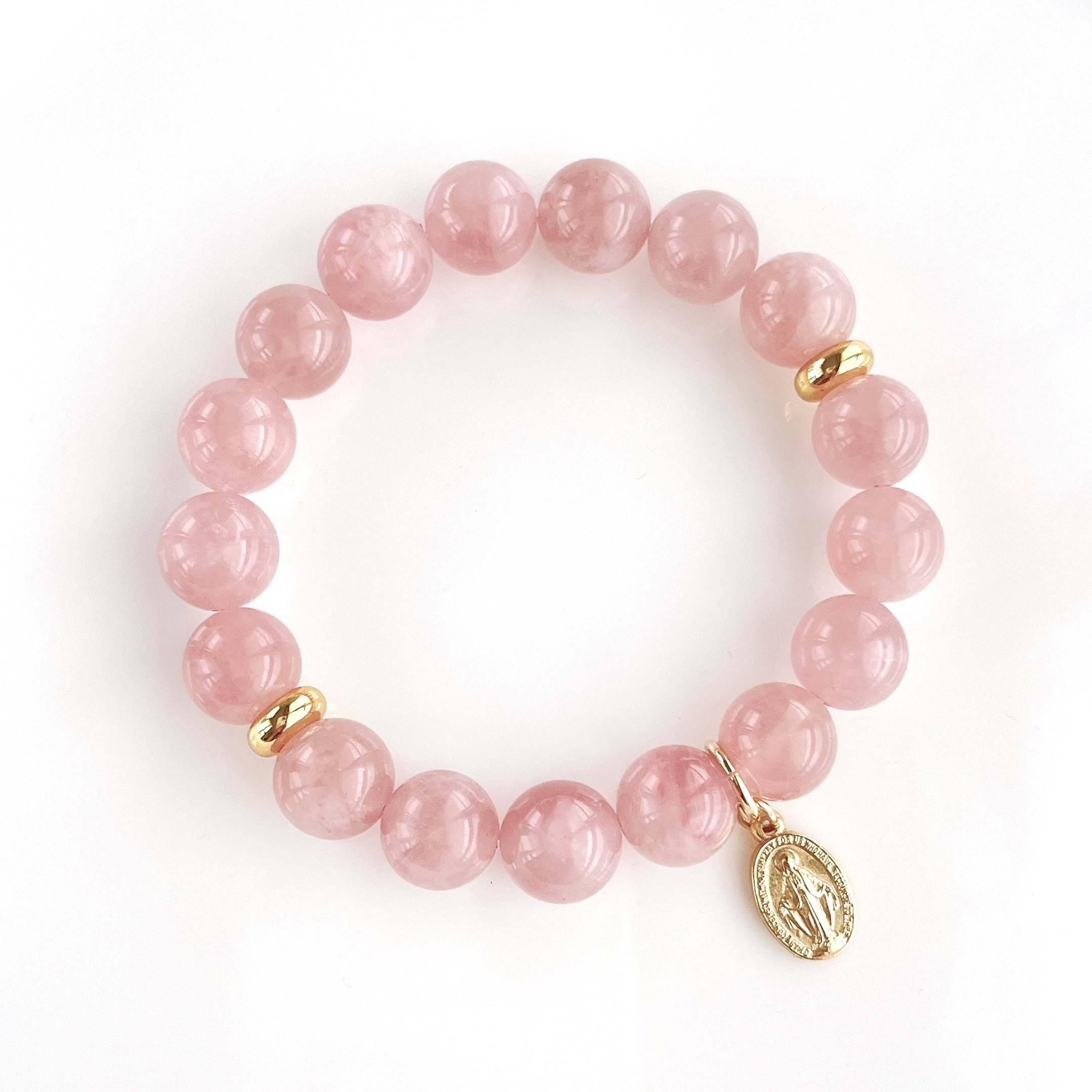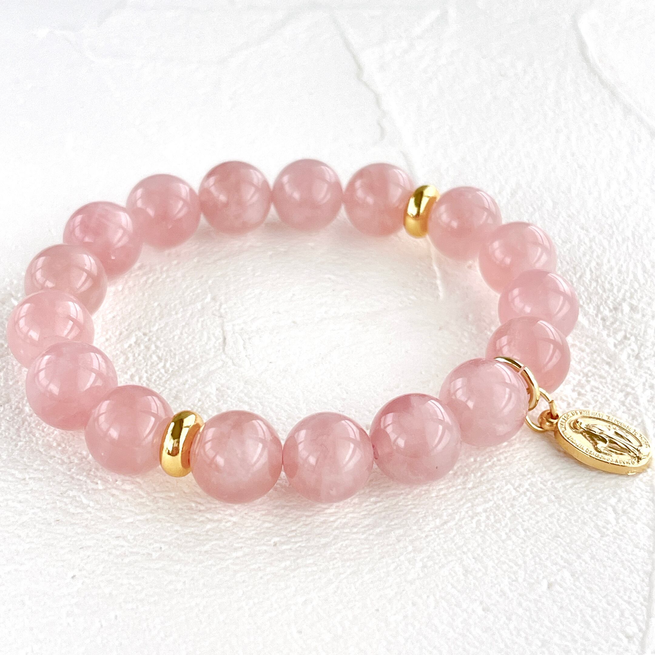 ローズクォーツの慈愛と、聖母マリアの慈愛がリンクしたブレスレットです。