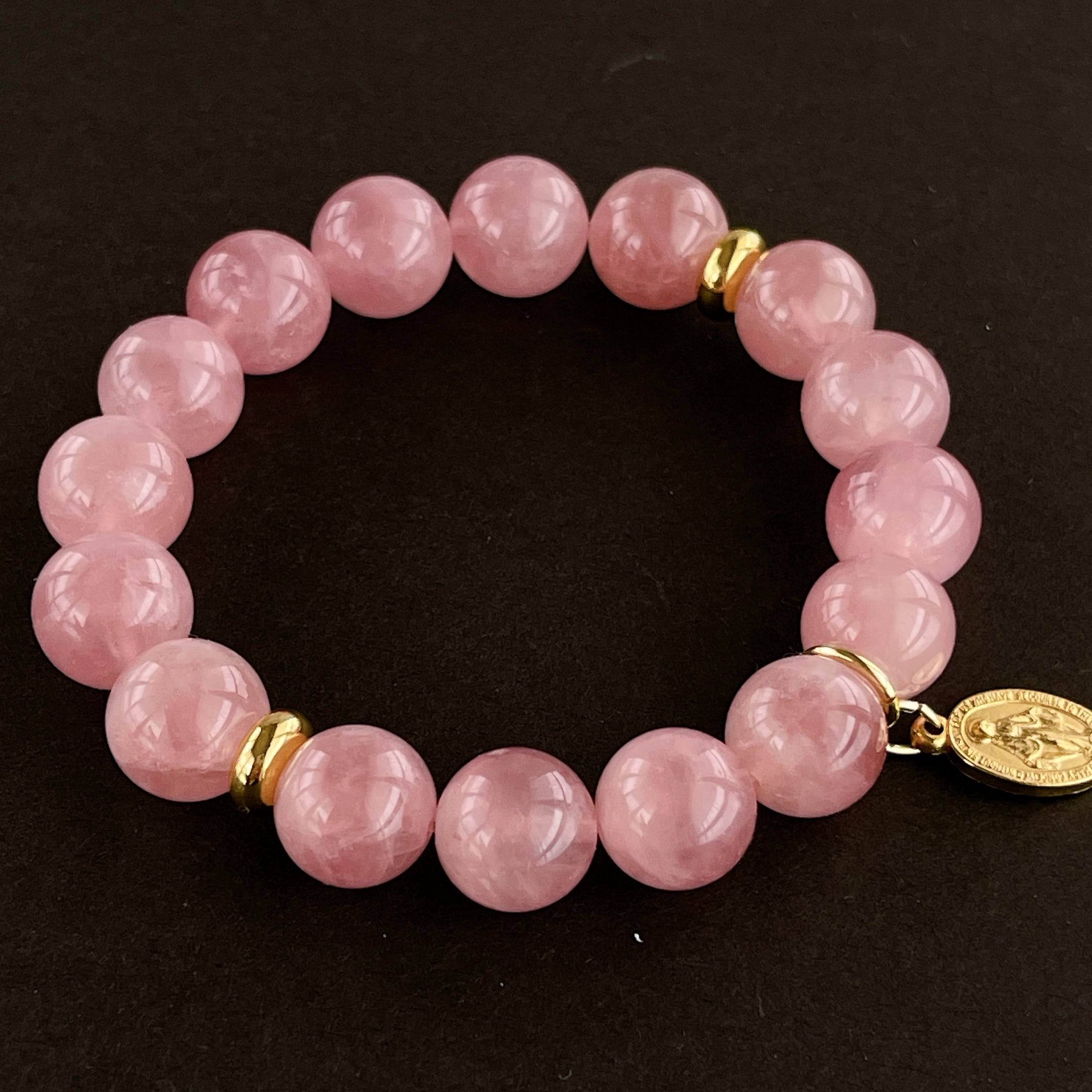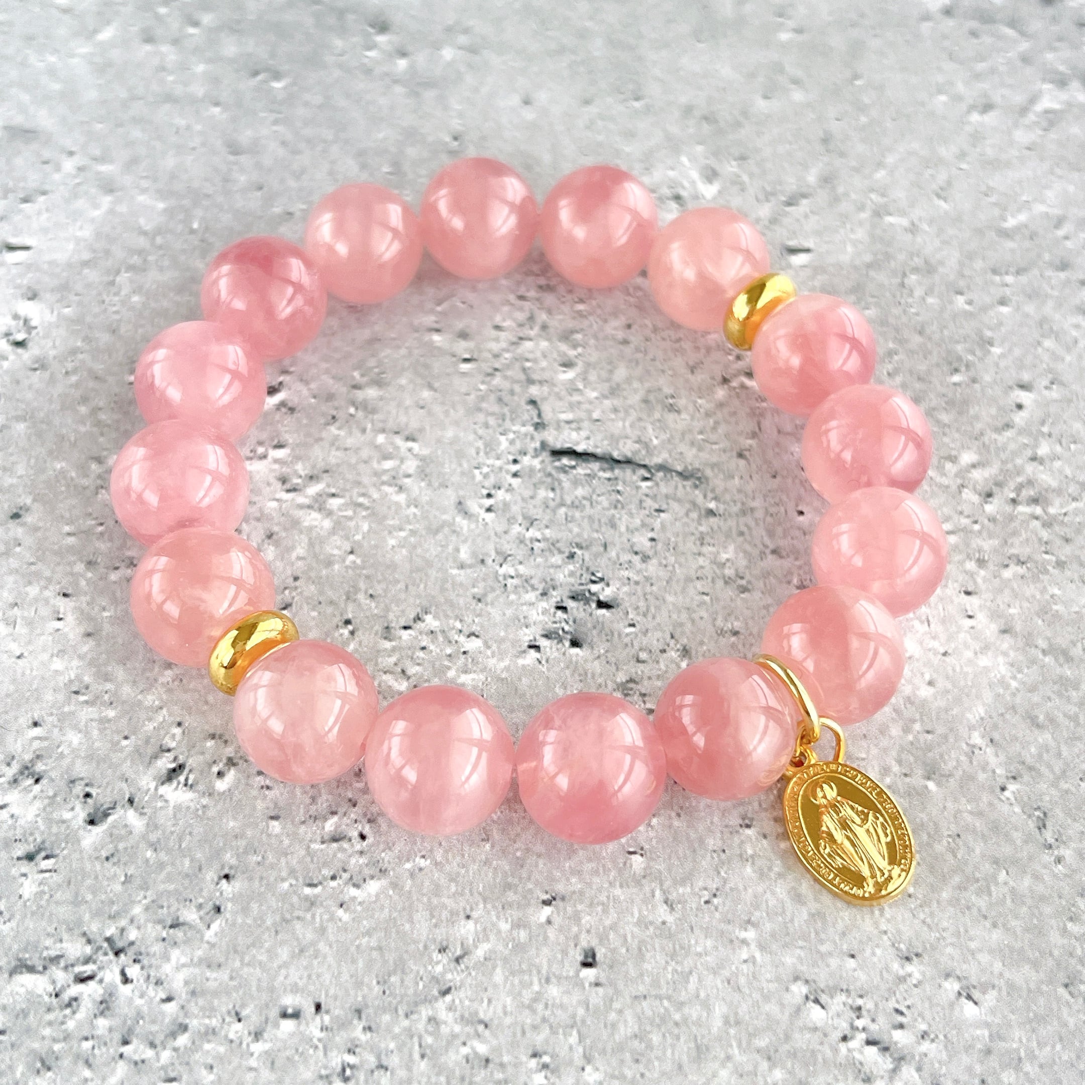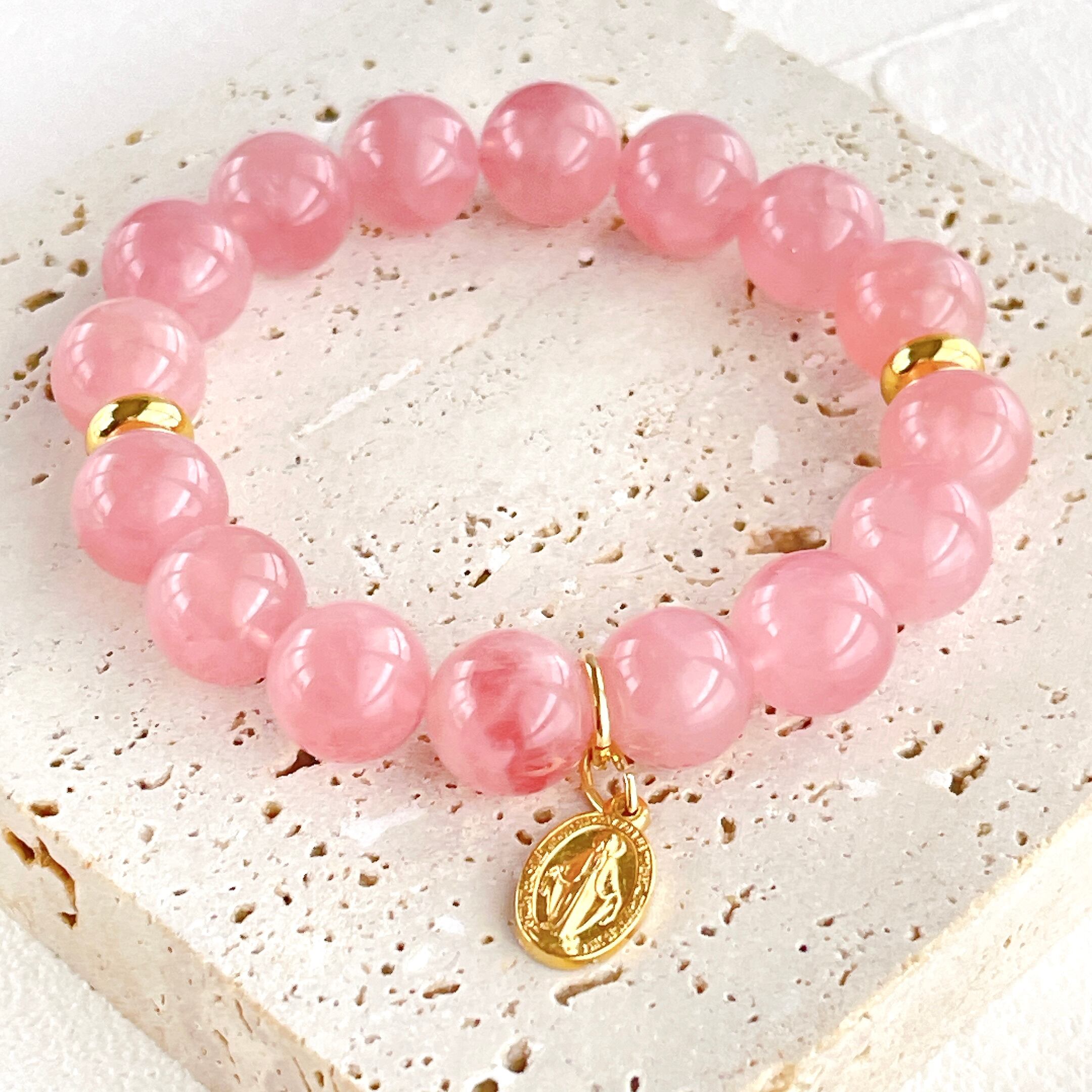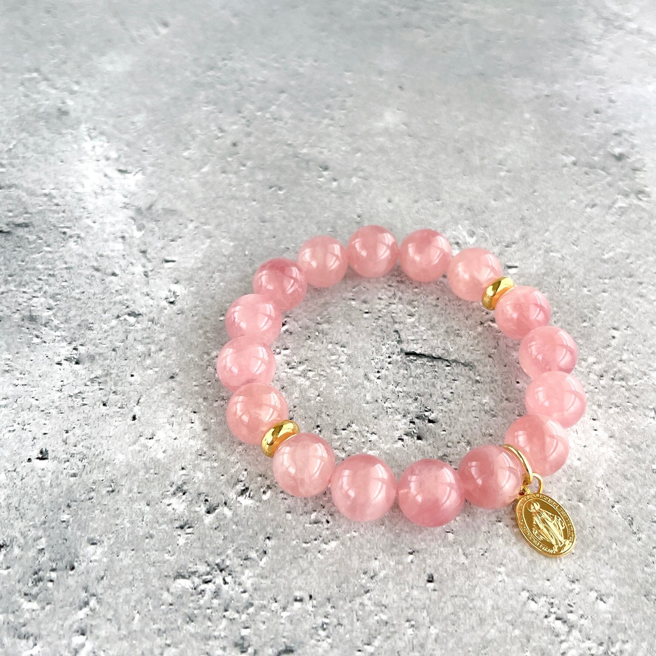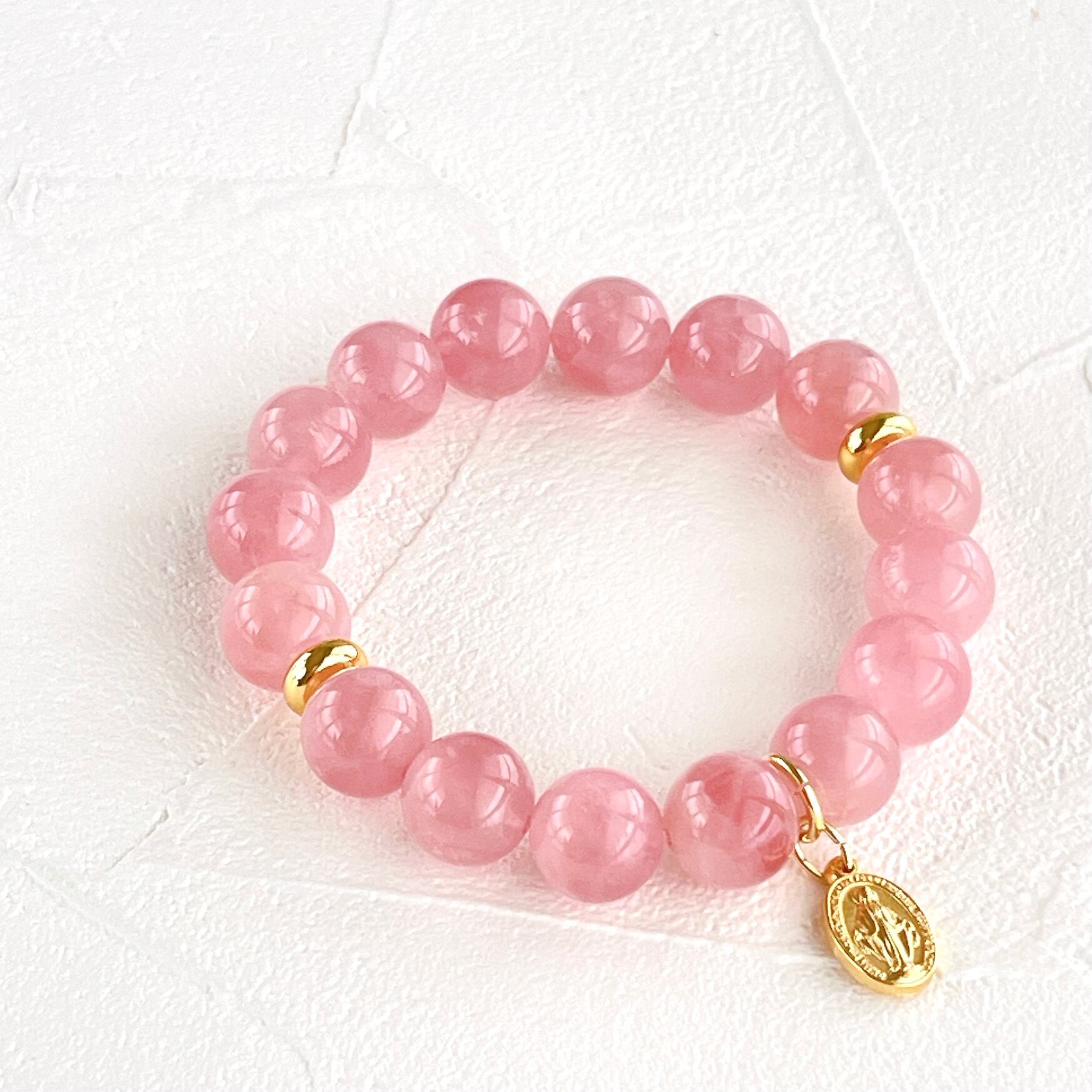 ローズクォーツの慈愛と、聖母マリアの慈愛がリンクしたブレスレットです。