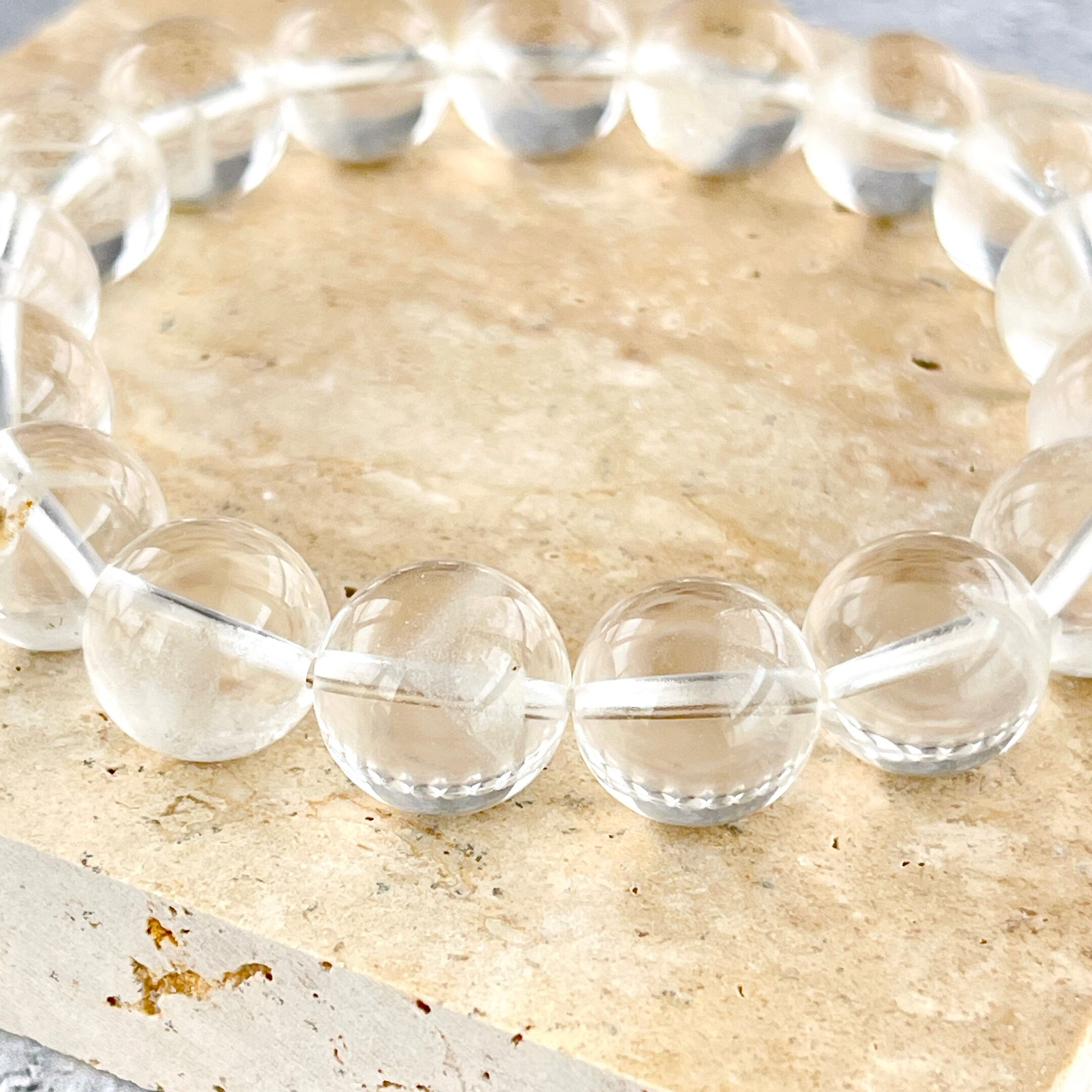 が見られる水晶のブレスレットです。