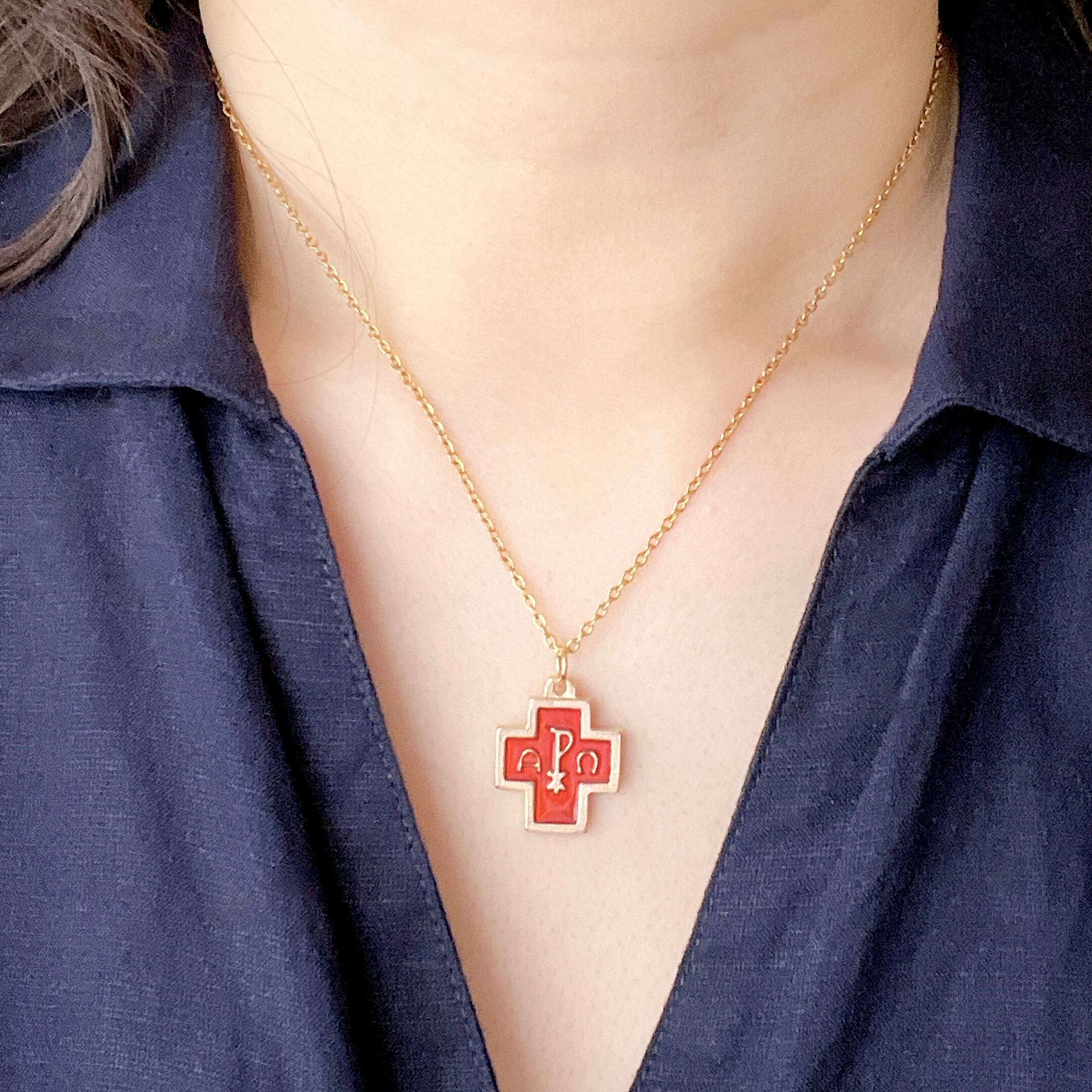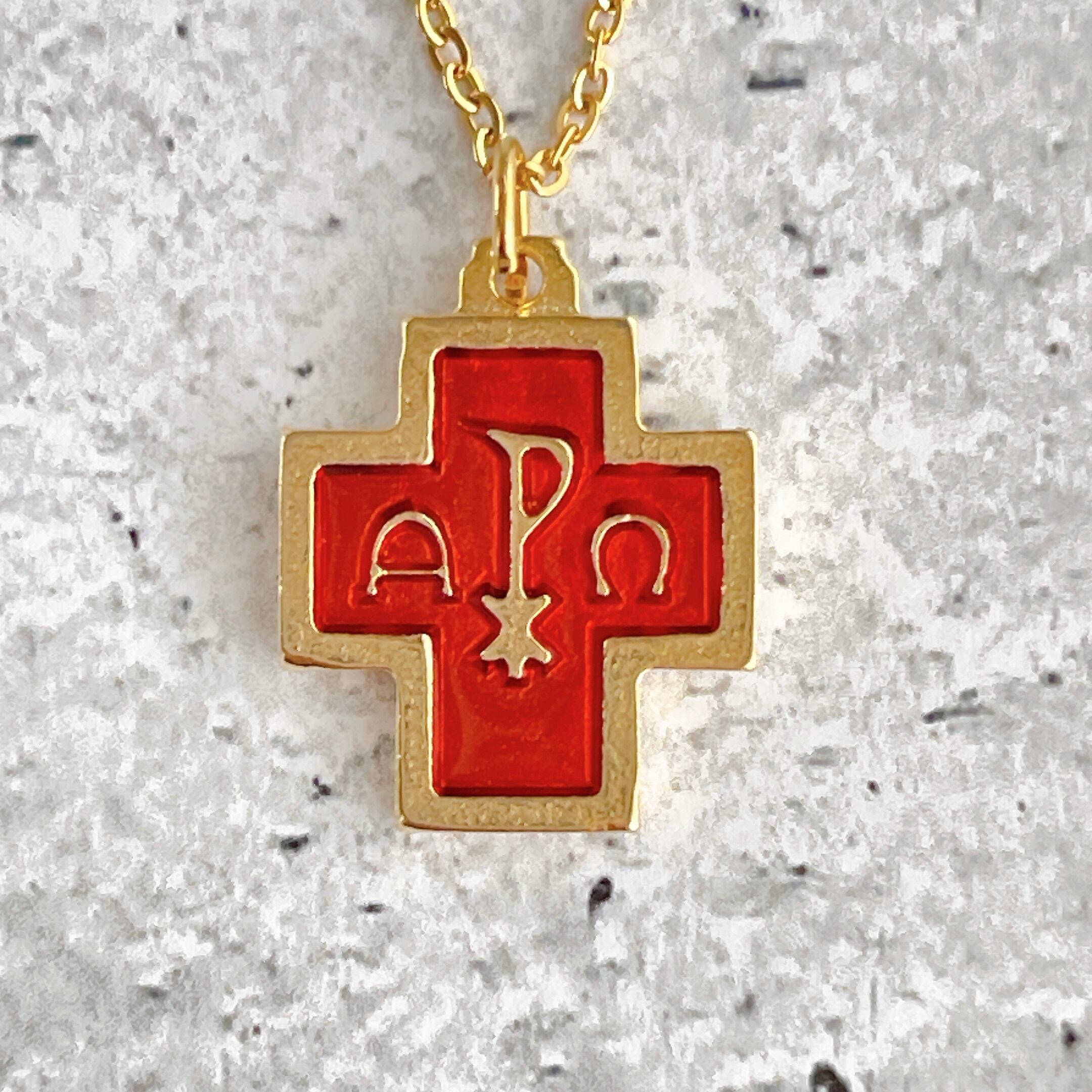✧ミニクロス・レッド・アルファオメガ(合金製、イタリア製):約18×17mm