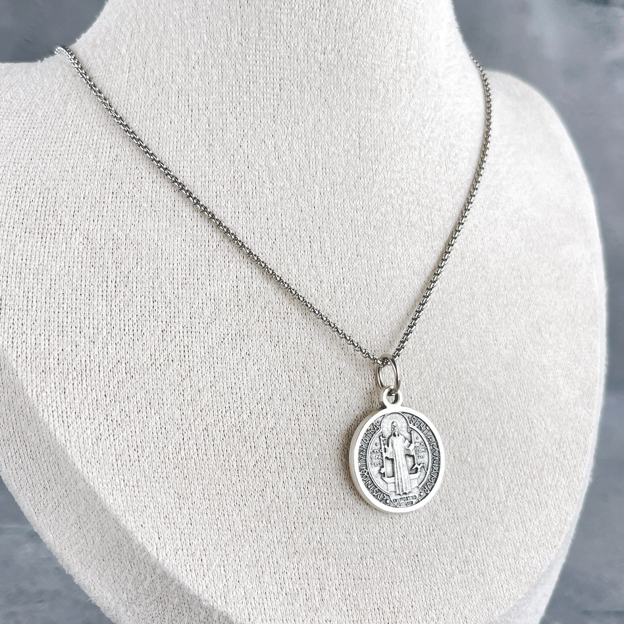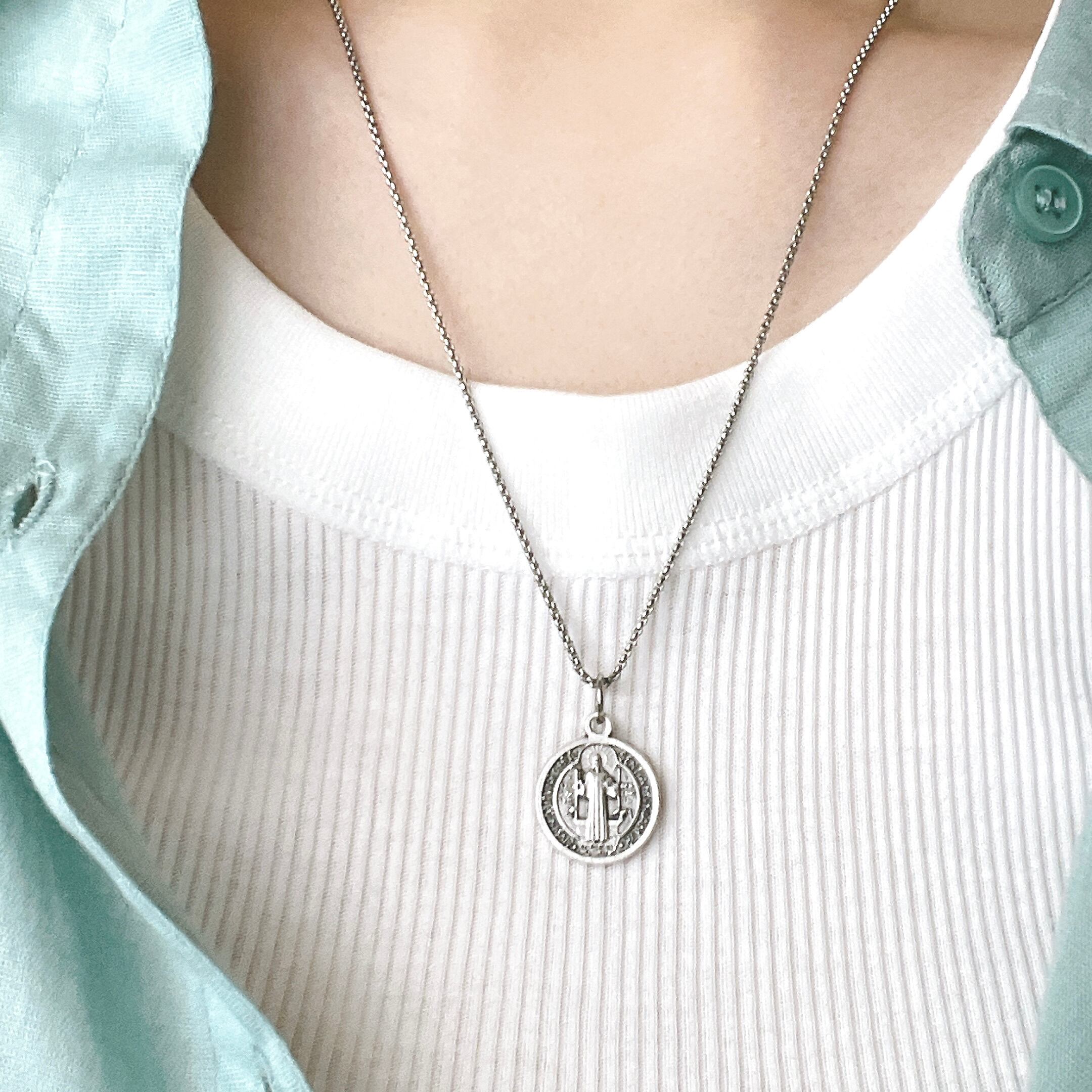 ✧セントベネディクトコイン形メダイ アンティークシルバー(合金製、イタリア製):直径約17mm