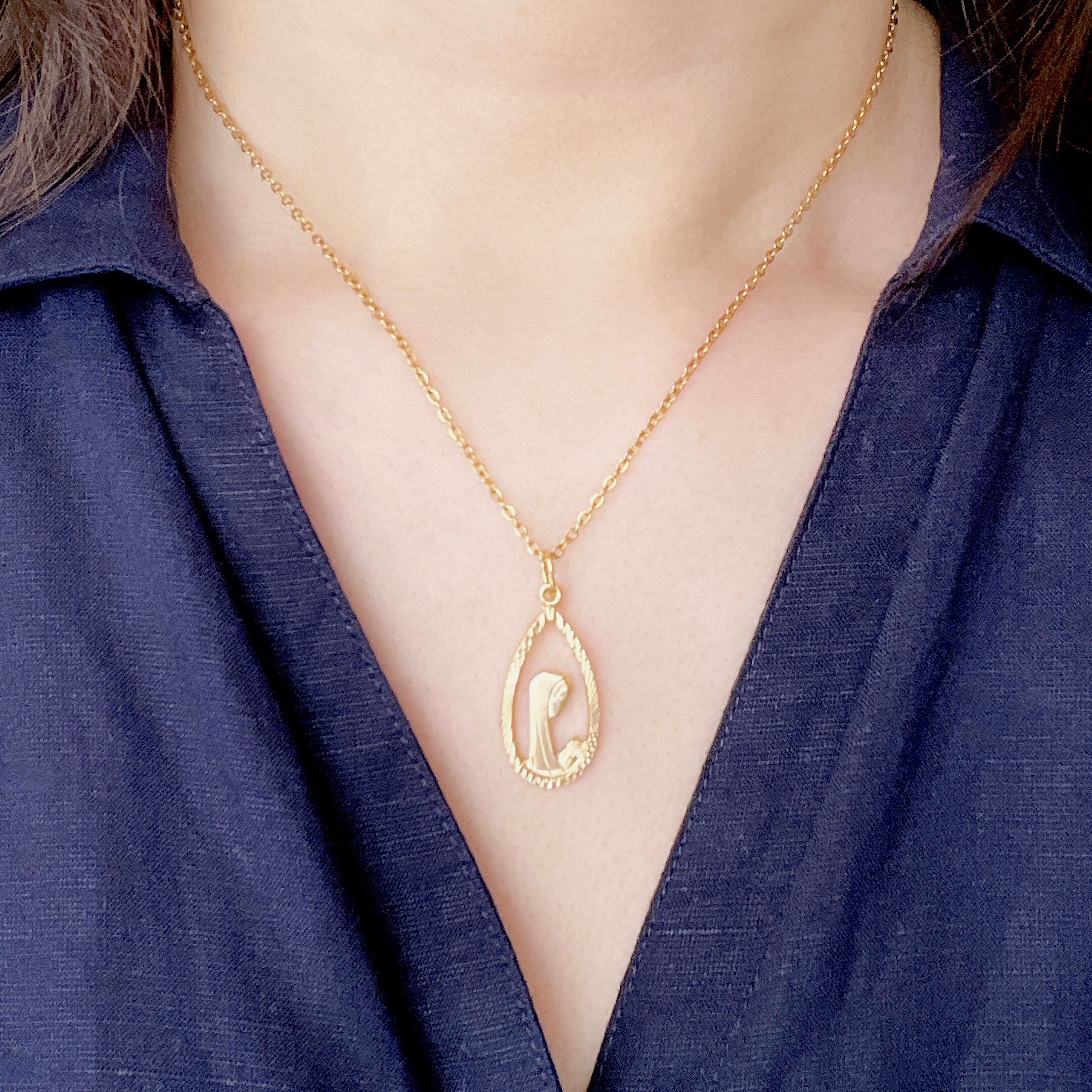 横顔マリア しずく形 透かし メダイネックレスGold・サージカルステンレス・長さ調整可