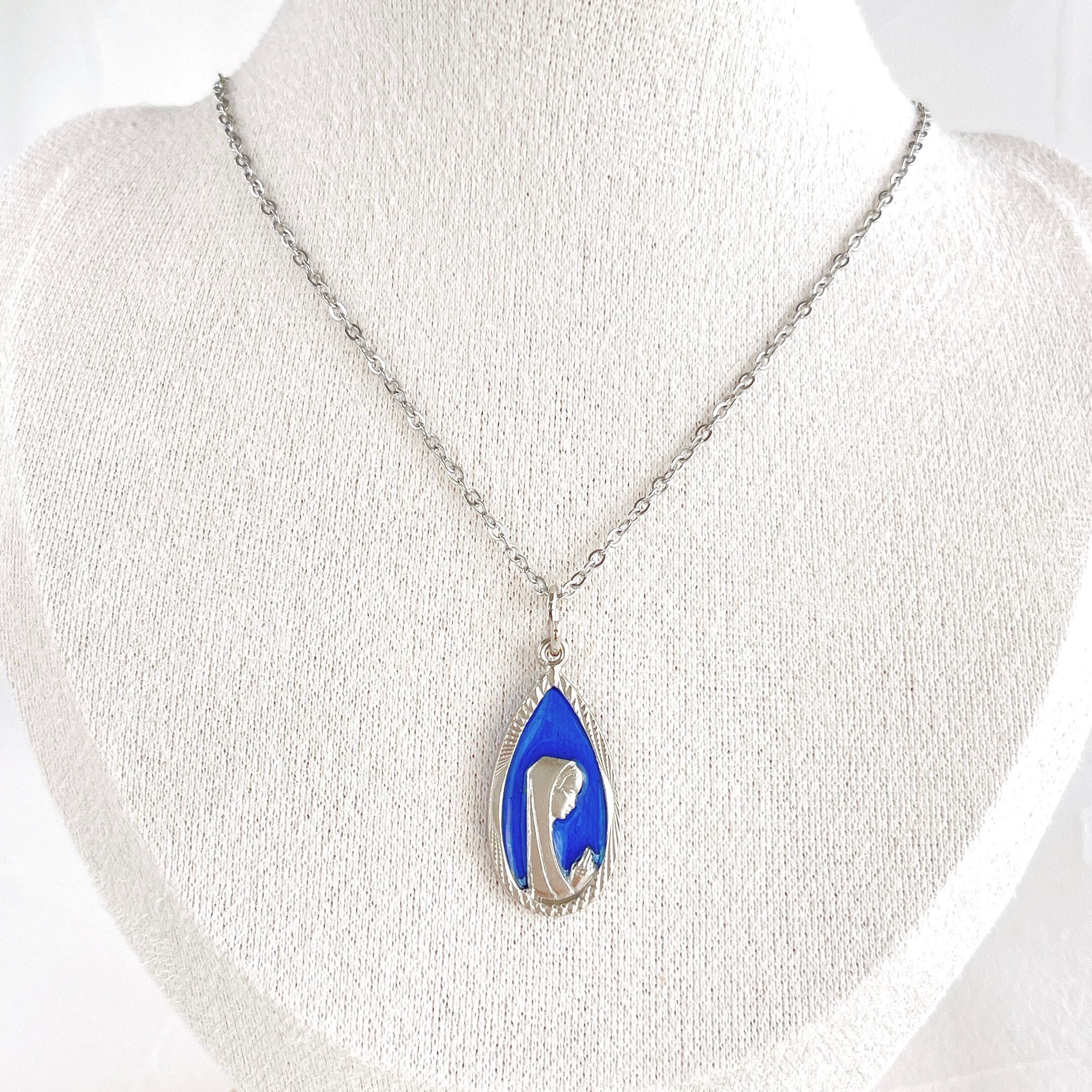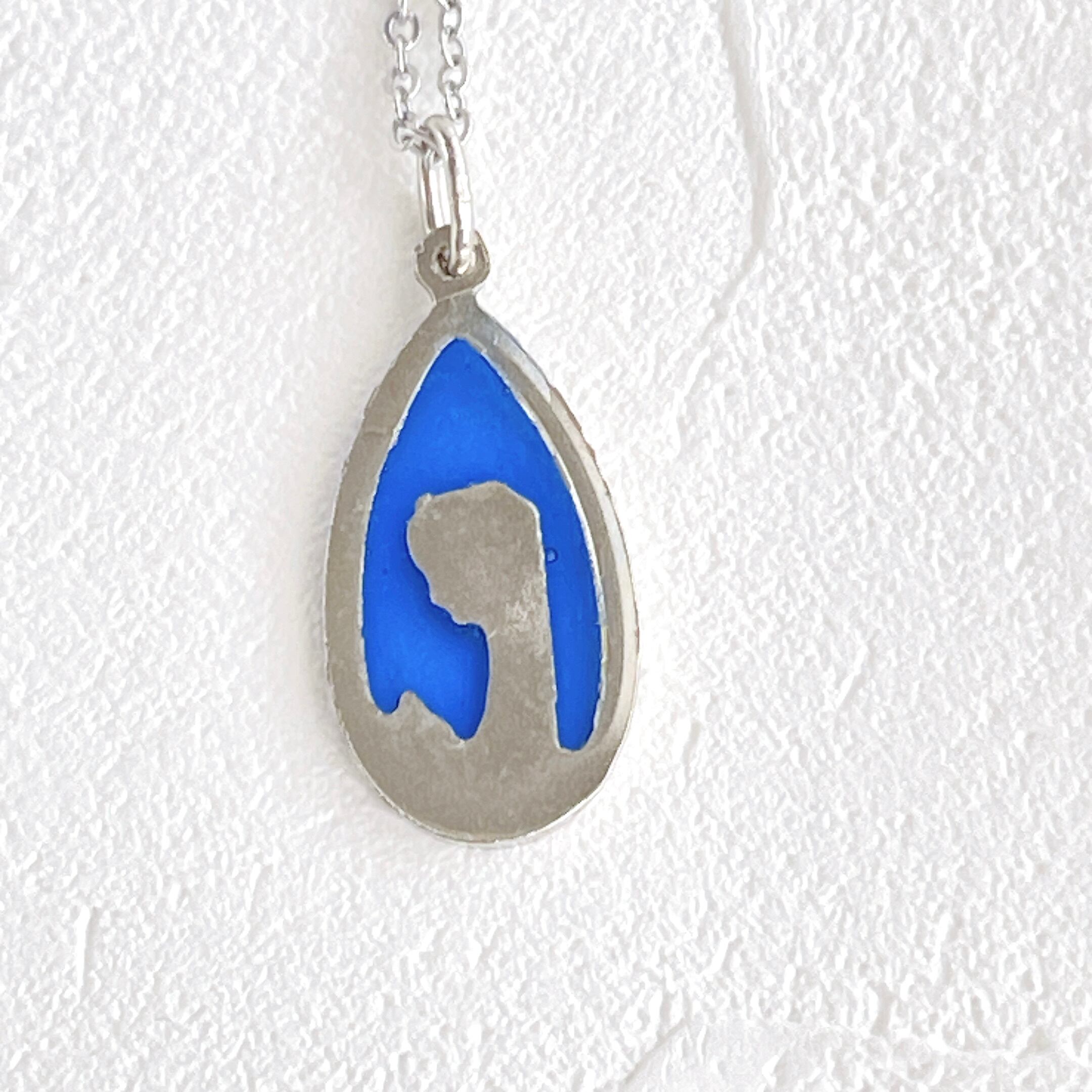 横顔マリア しずく形 透かし ブルー メダイネックレスSilver・サージカルステンレス・長さ調整可