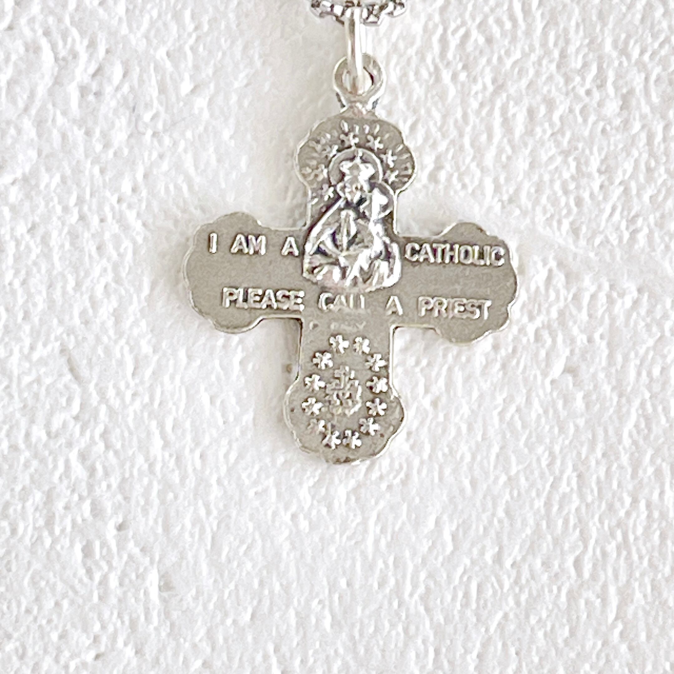 クロスの中に、小さな4つのメダイが施されているネックレスです。