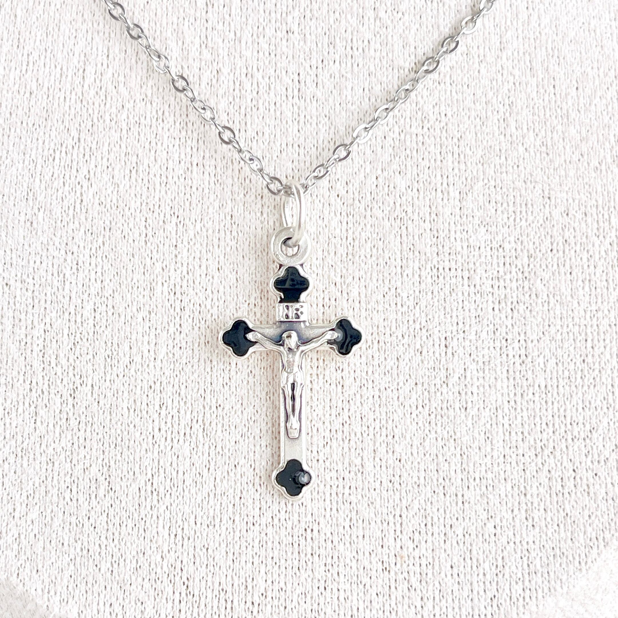✧十字架 銀×黒(合金製、イタリア製):約24×15mm