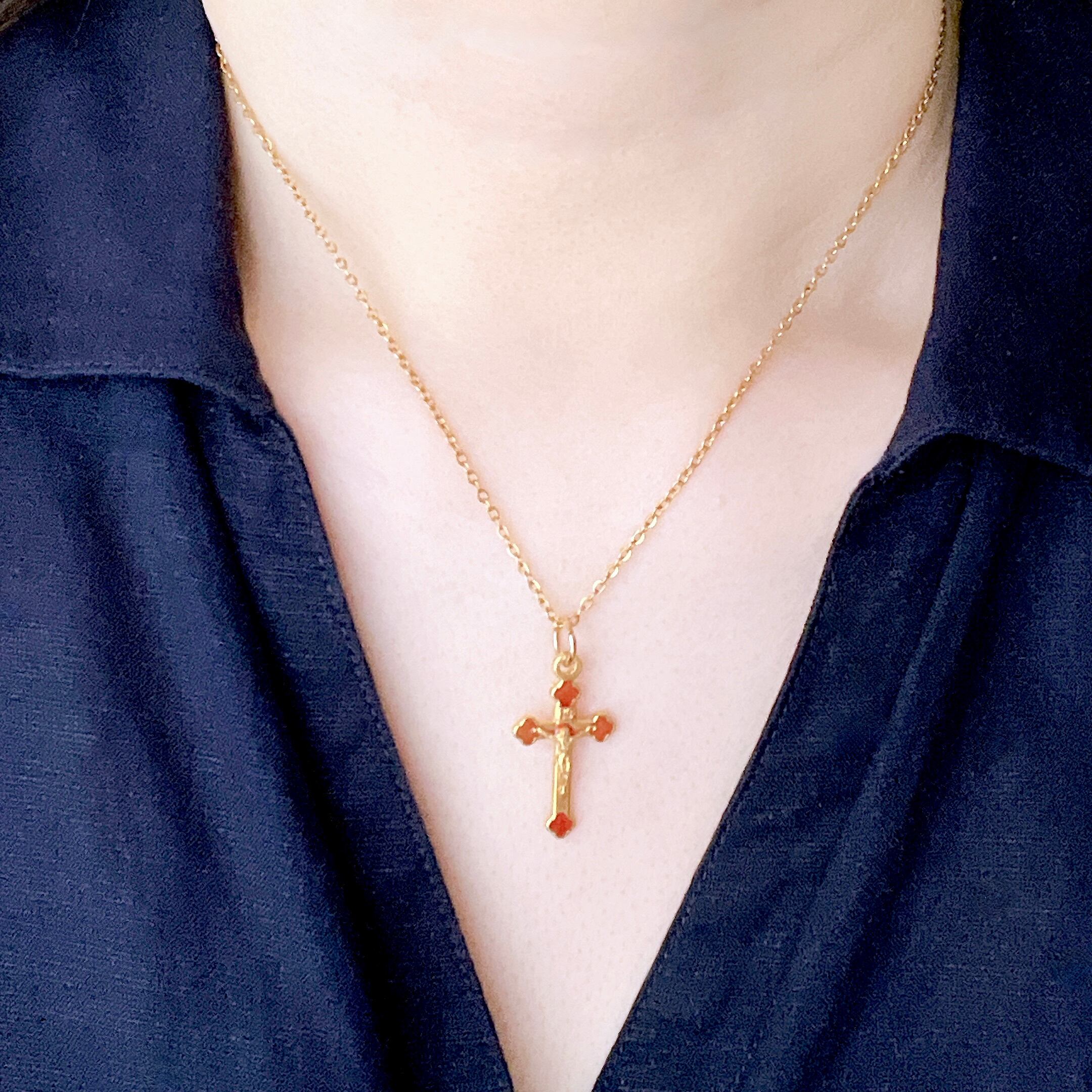 ✧十字架 金×赤(合金製、イタリア製):約24×15mm