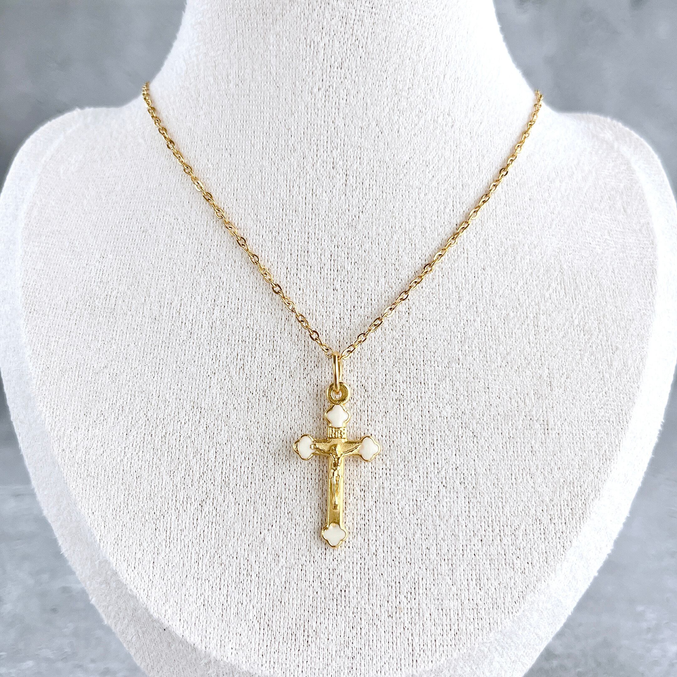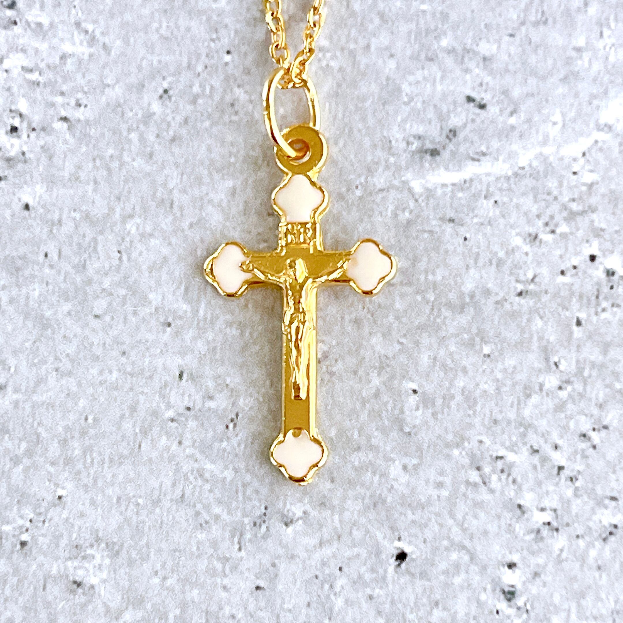 ✧十字架 金×白(合金製、イタリア製):約24×15mm