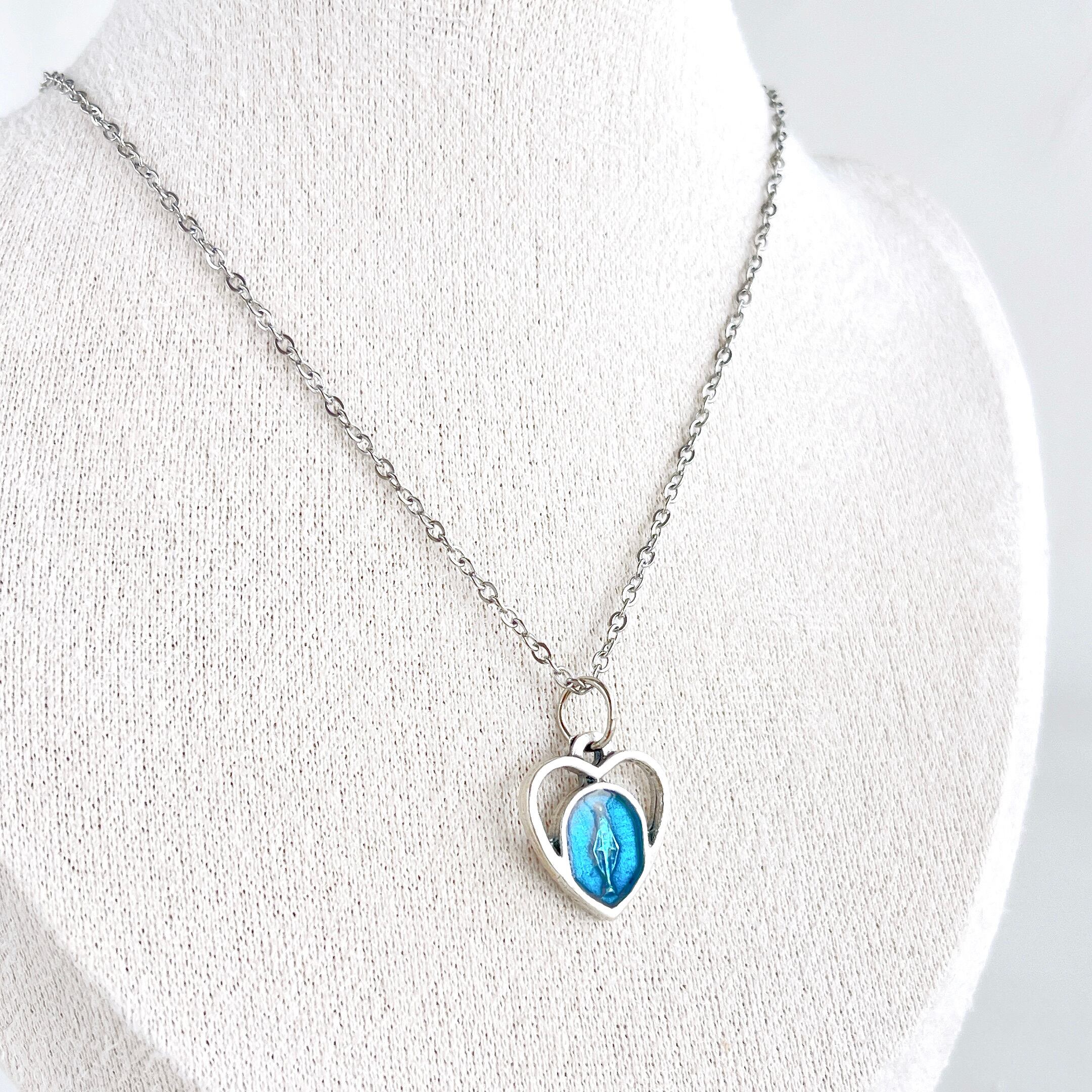✧メダイ・無原罪のマリア ハート シルバーブルー(合金製、イタリア製):約15×15mm