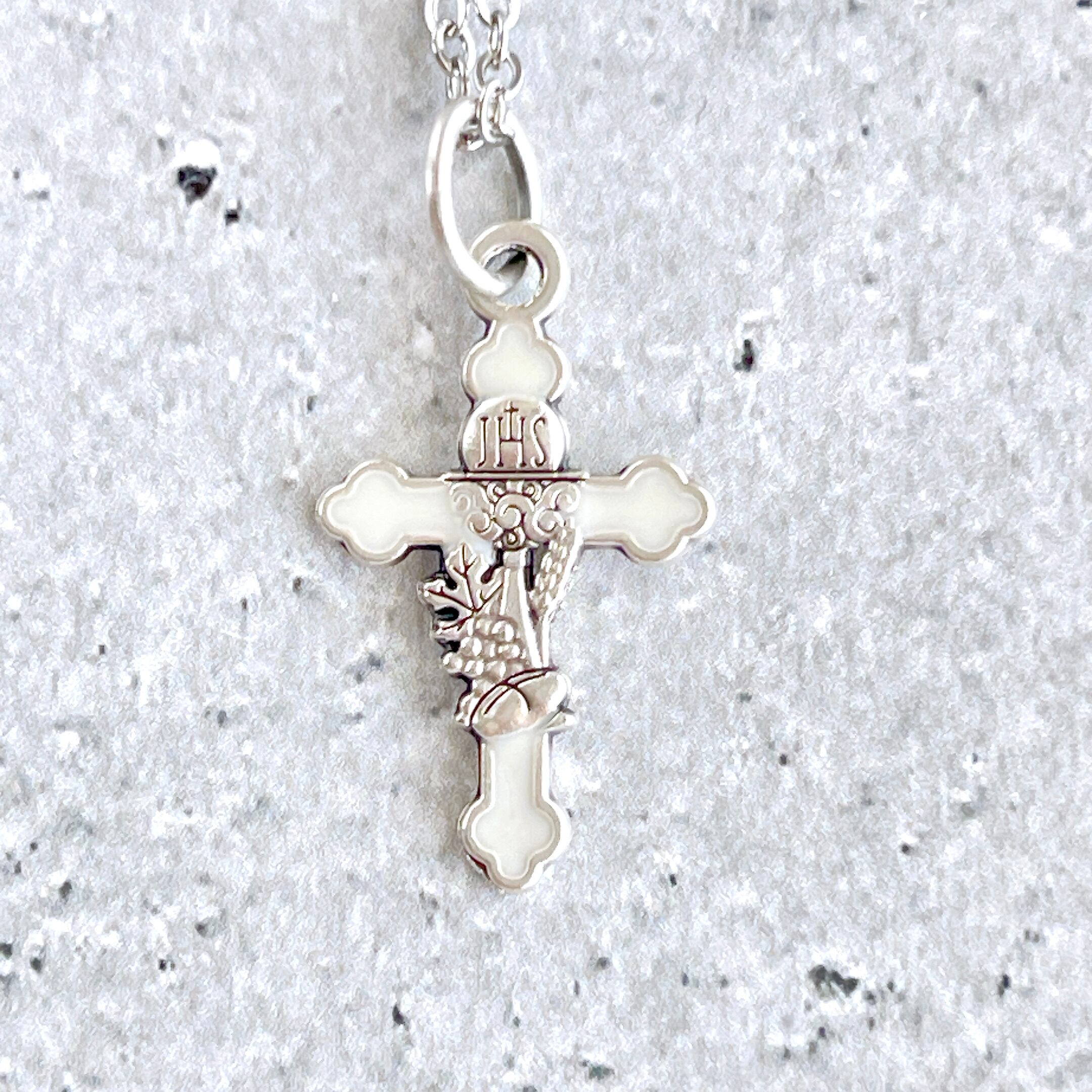 ✧十字架 カリスとホスチア銀×白(合金製、イタリア製):約20x14mm