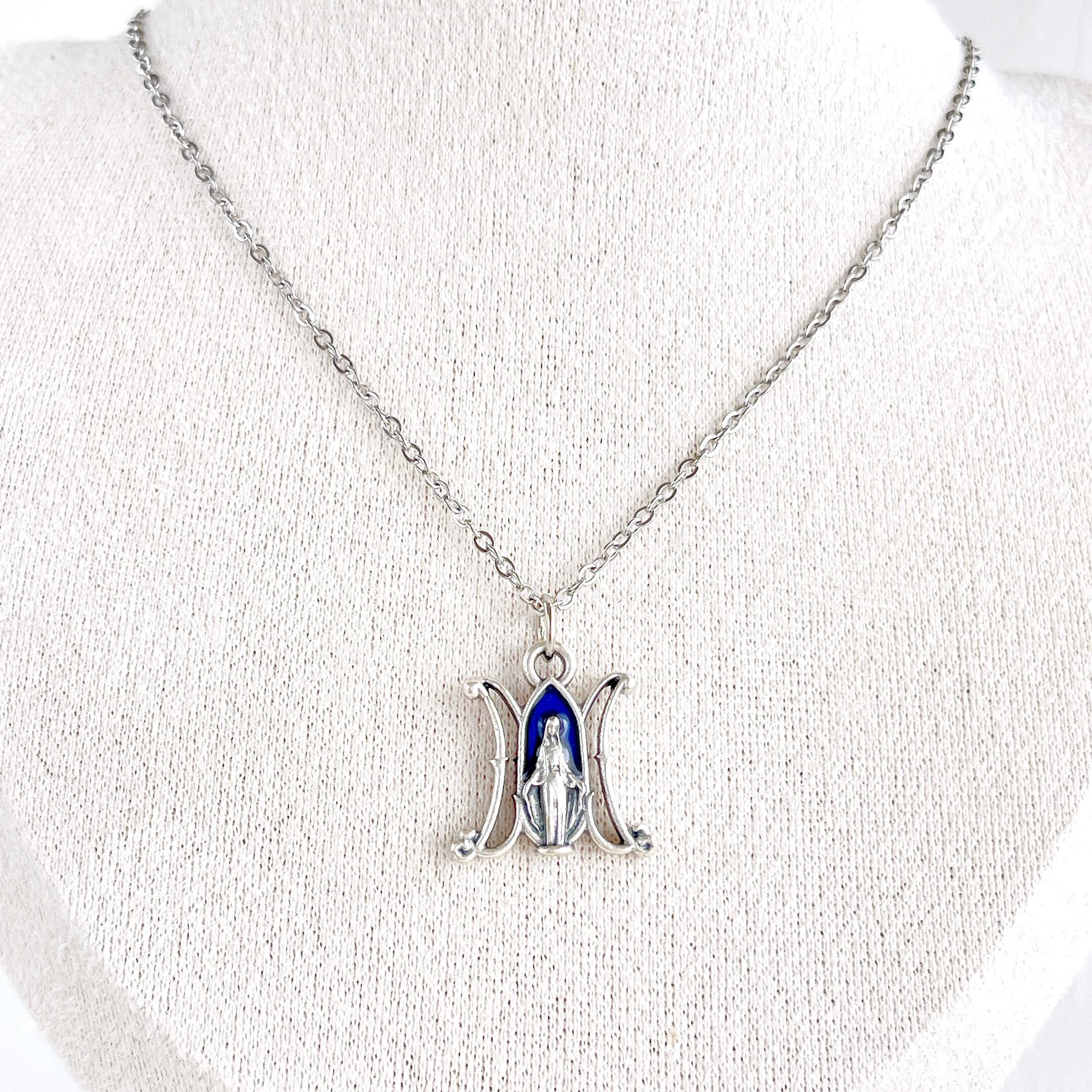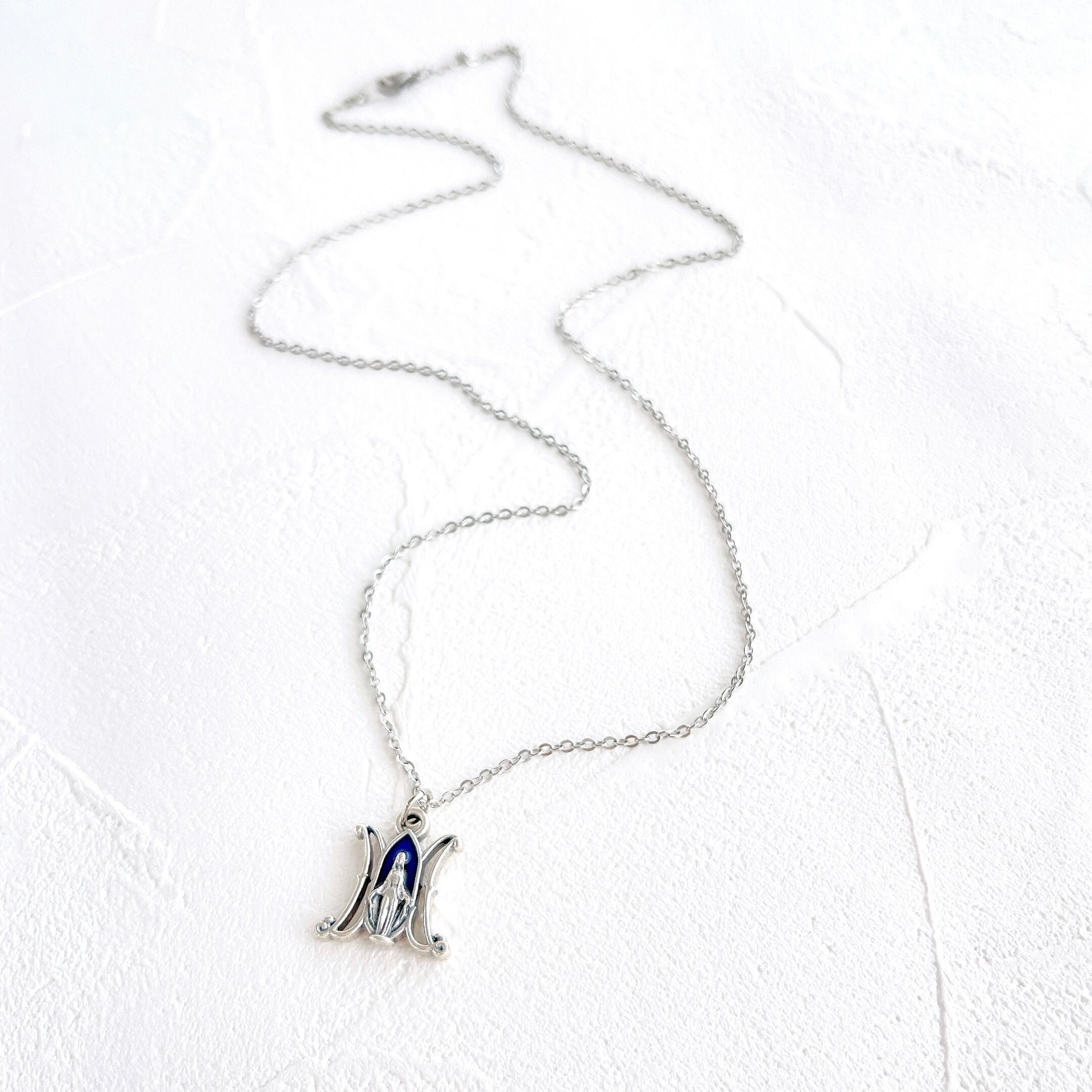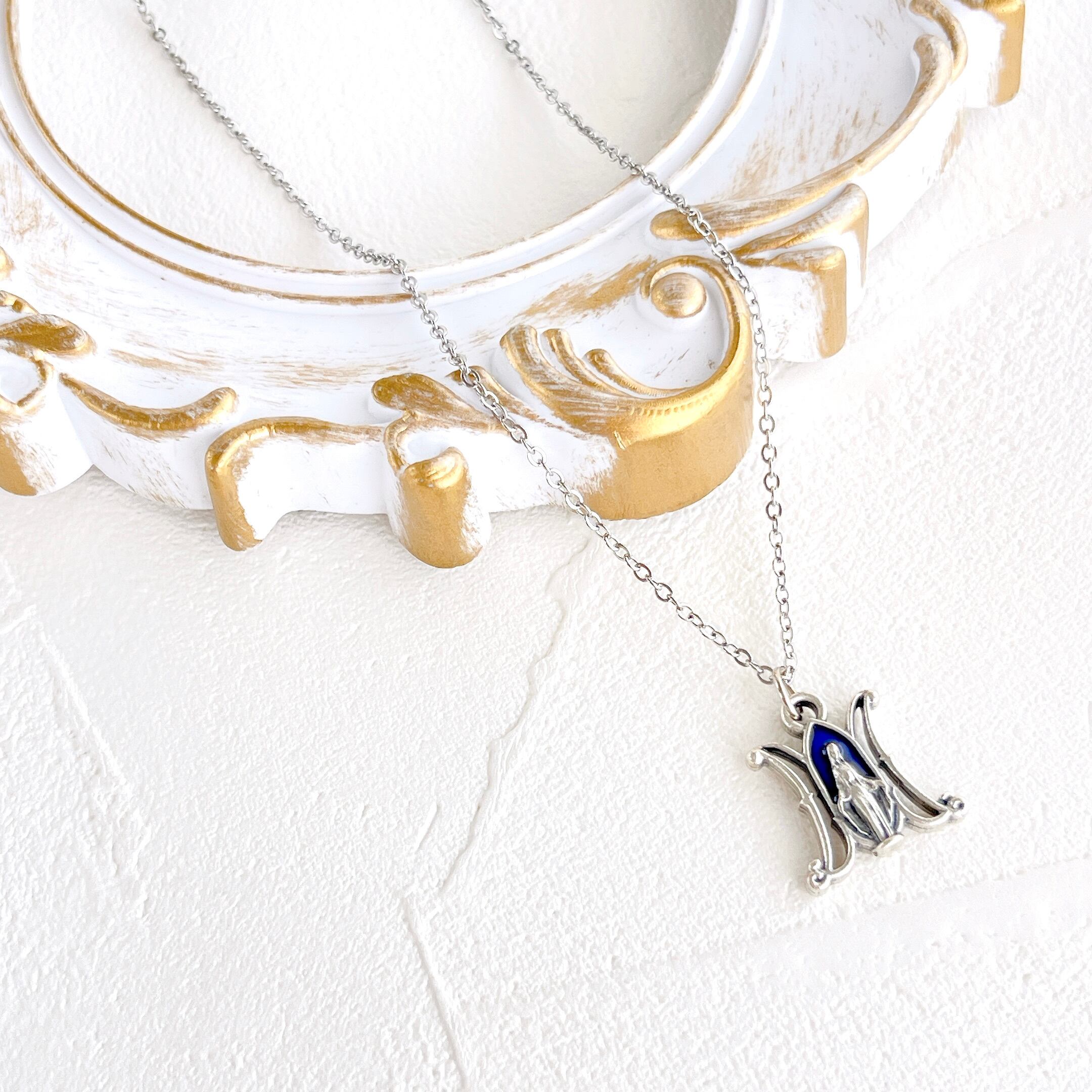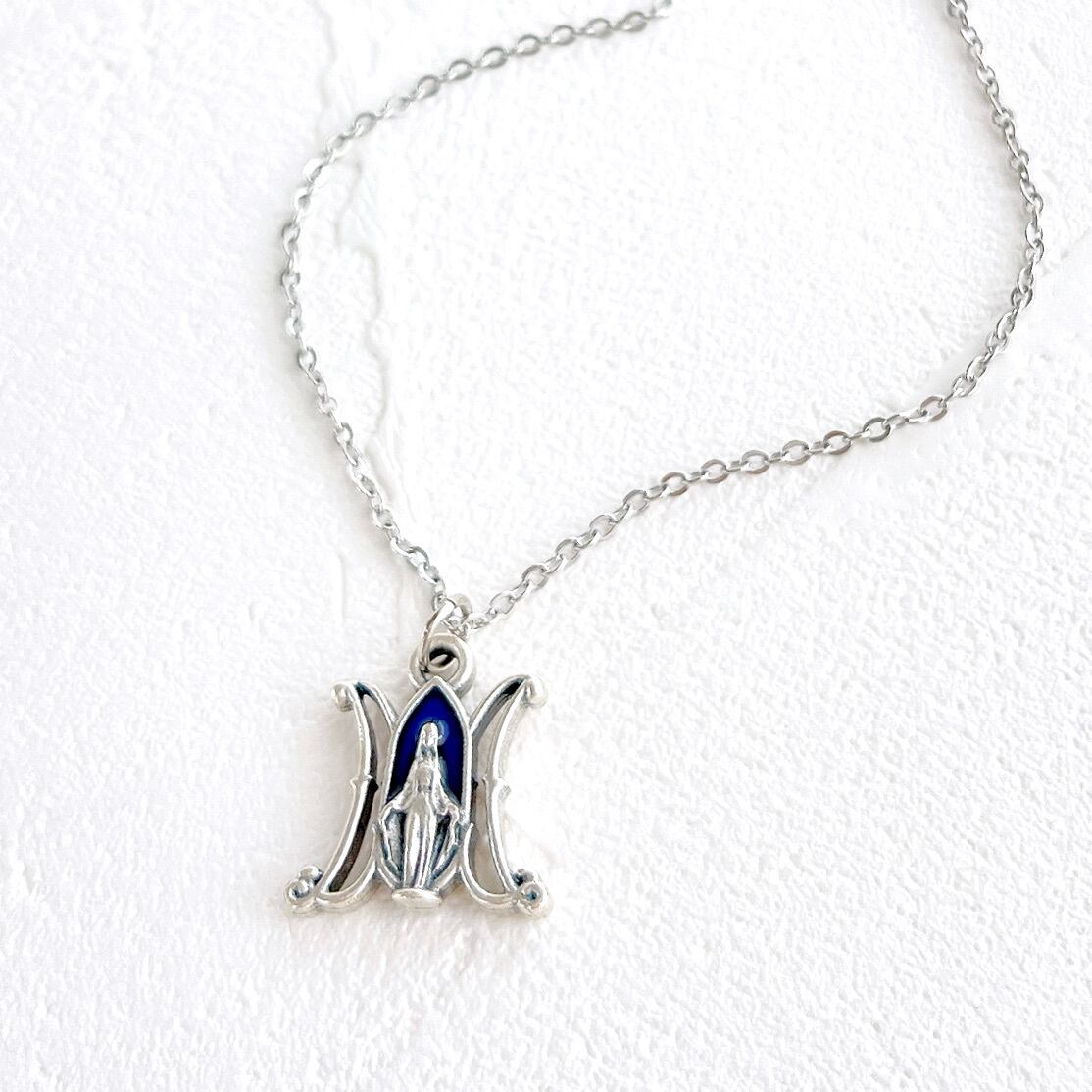 ✧不思議のメダイ M字形 銀×青(合金製、イタリア製):約18x17mm