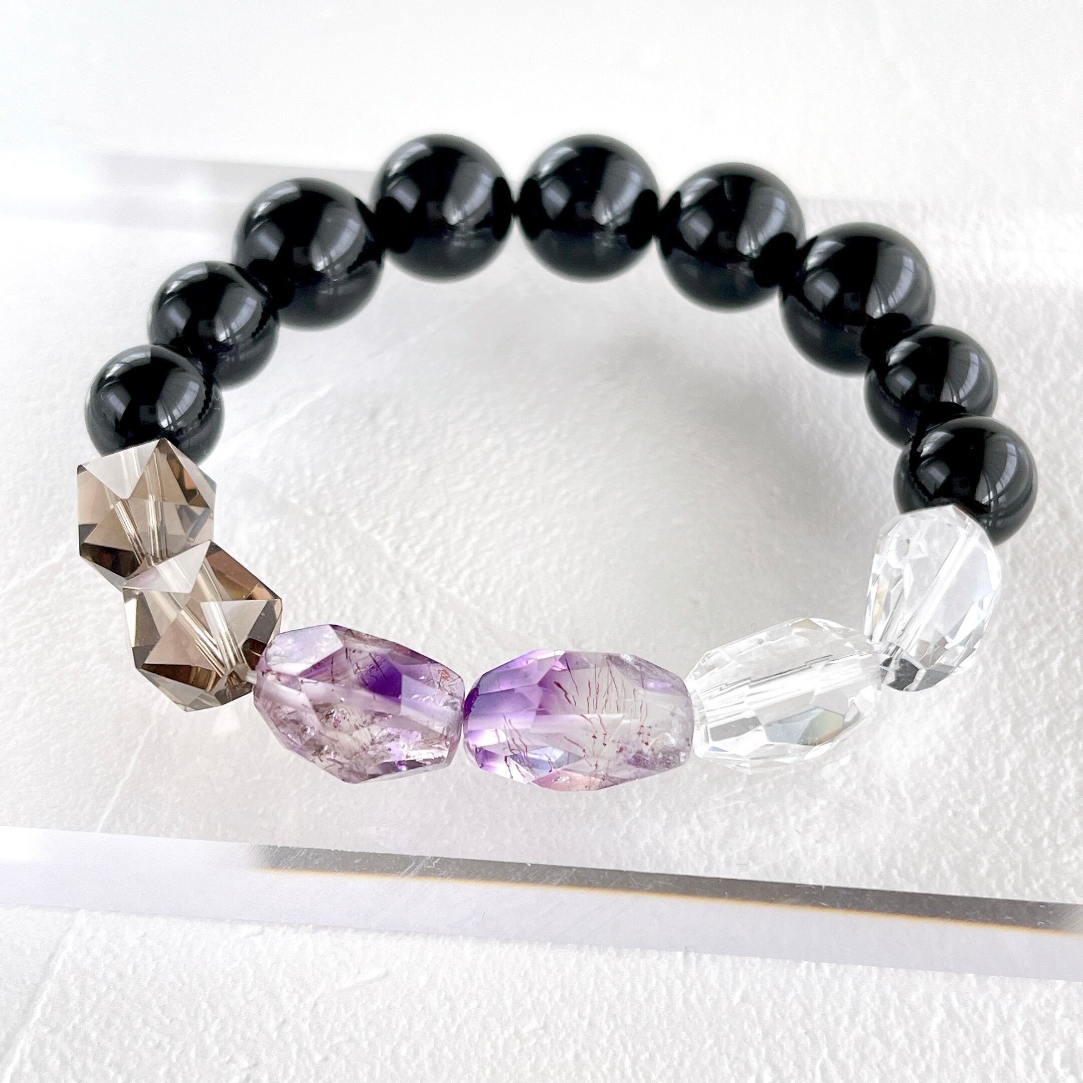 エレスチャルクォーツ スーパーセブンブレスレット スモーキークォーツ 水晶 水晶ブレスレット