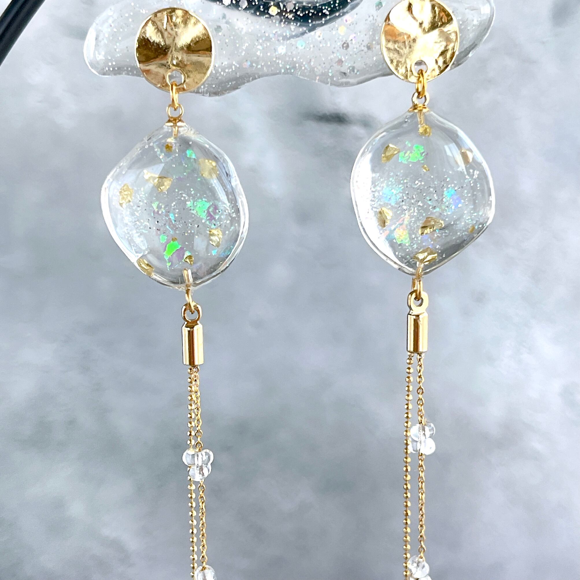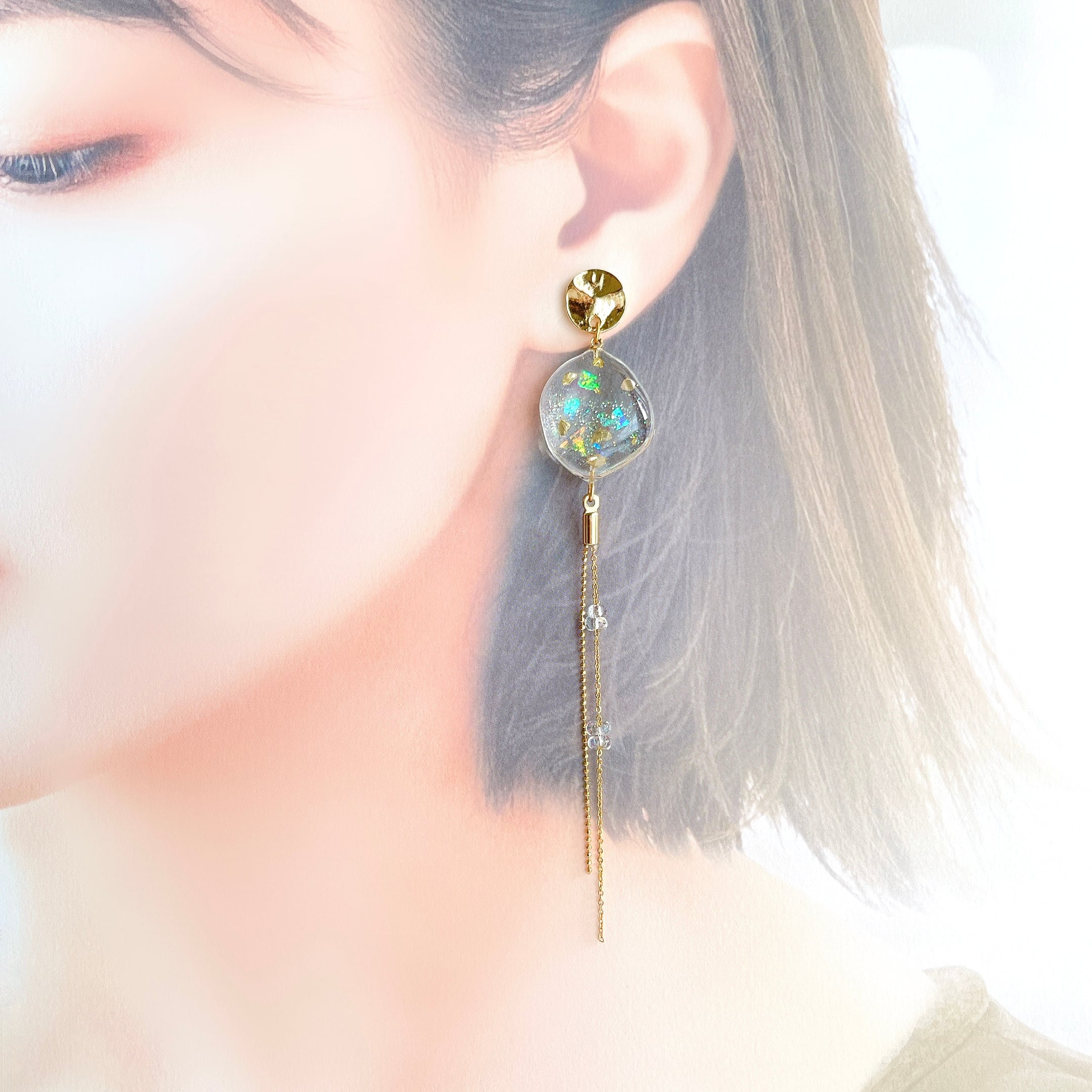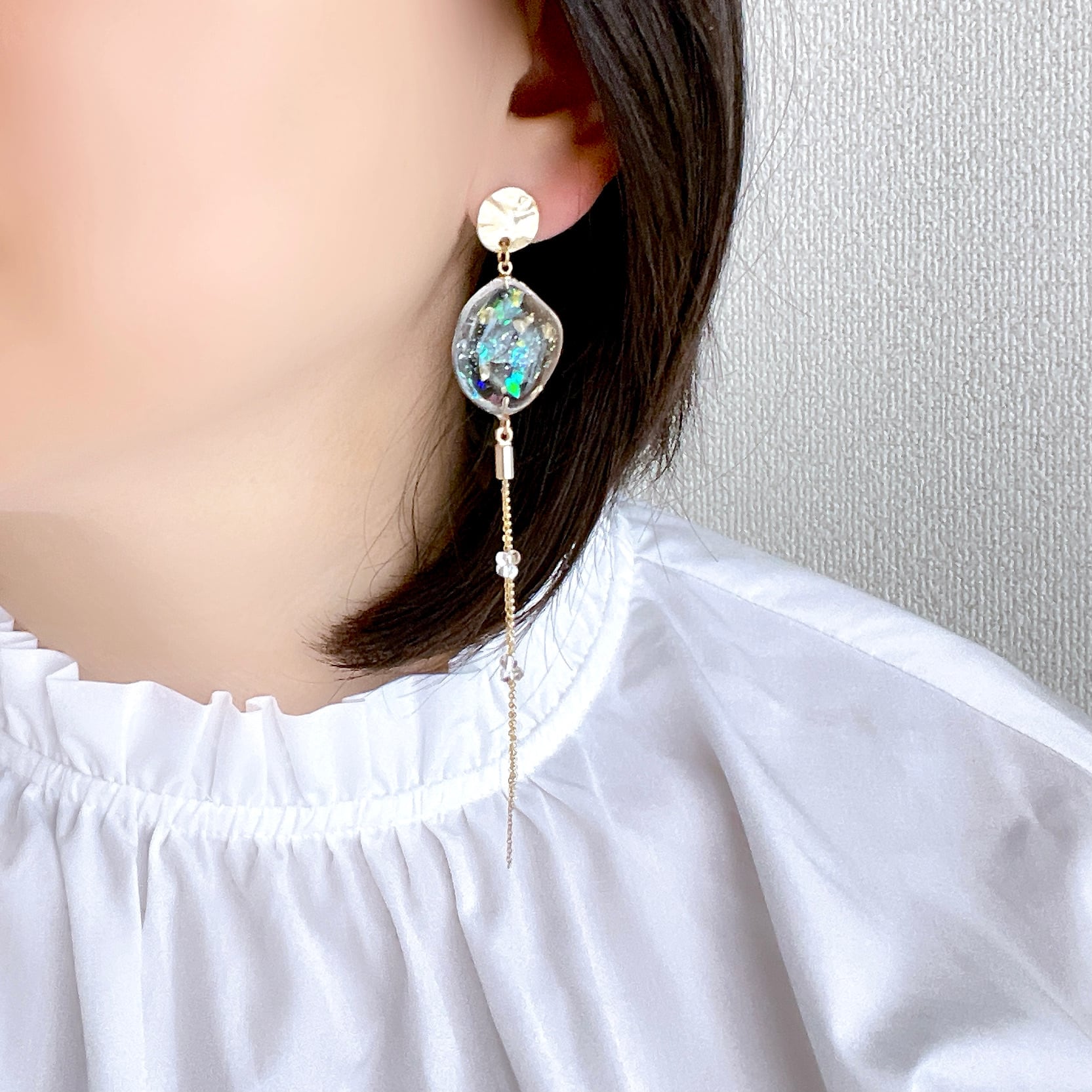 アクア aqua 水 クリア 透明感 クリアアクセサリー クリアレジン 天然石風 ピアス
