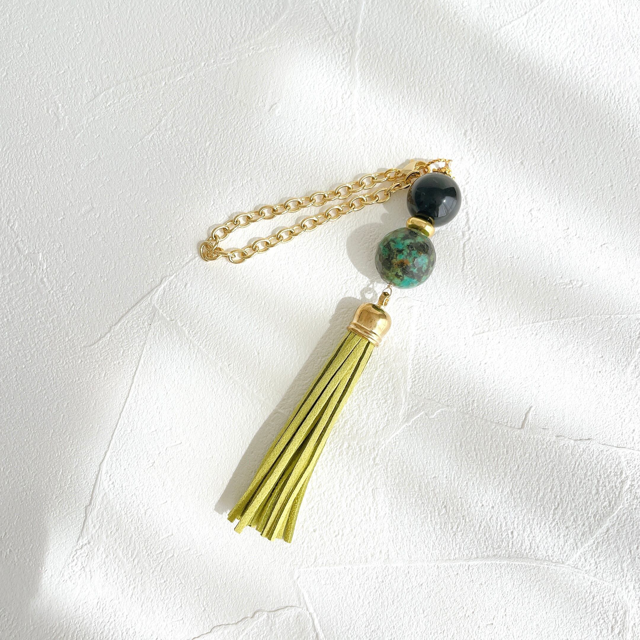検索ワード: モリオン アフリカンターコイズ お守り チャーム タッセル 天然石 アクセサリー バッグチャーム 守護石 グラウンディング 癒し ヒーリング 贈り物 カラーバリエーション シック シックカラー ハンドメイド