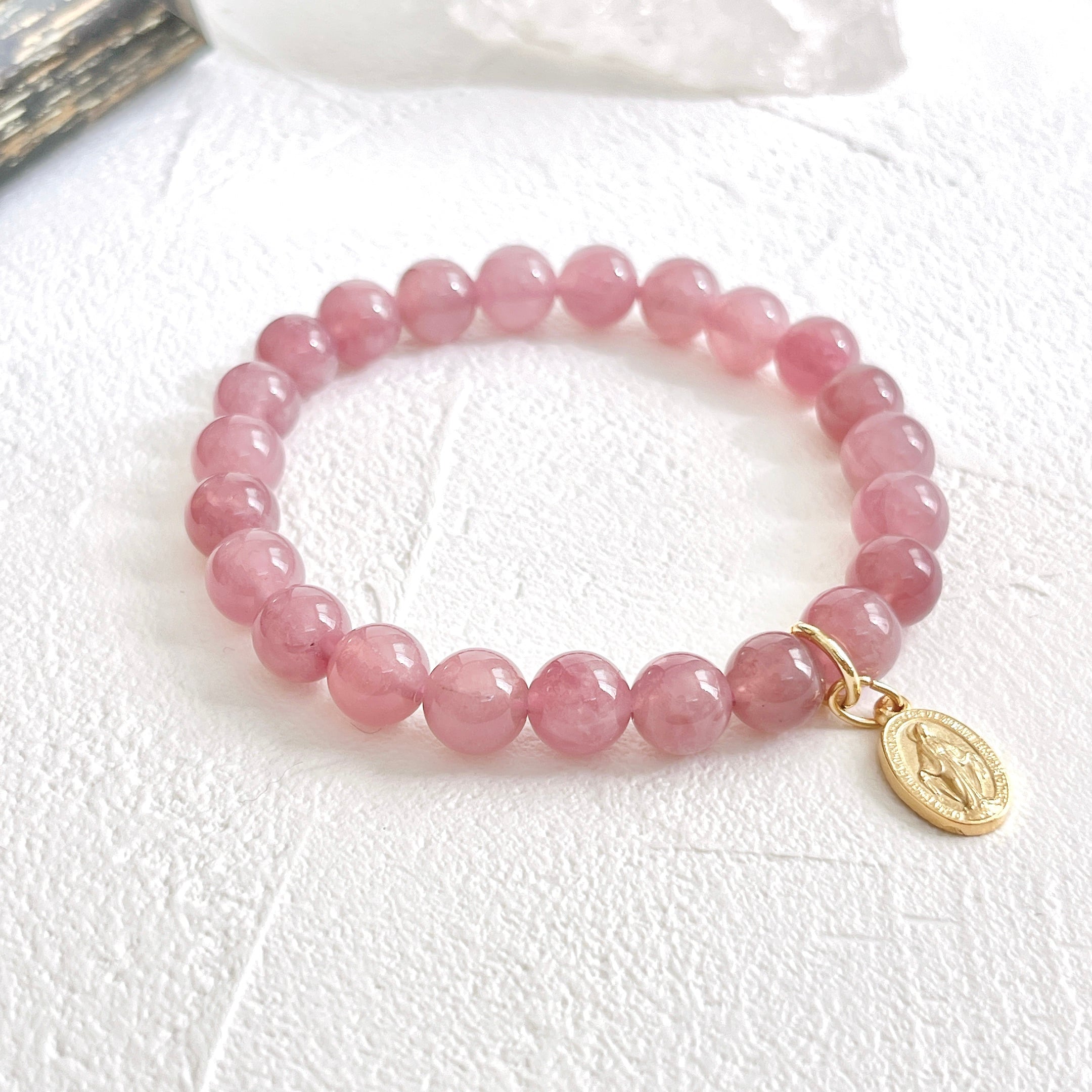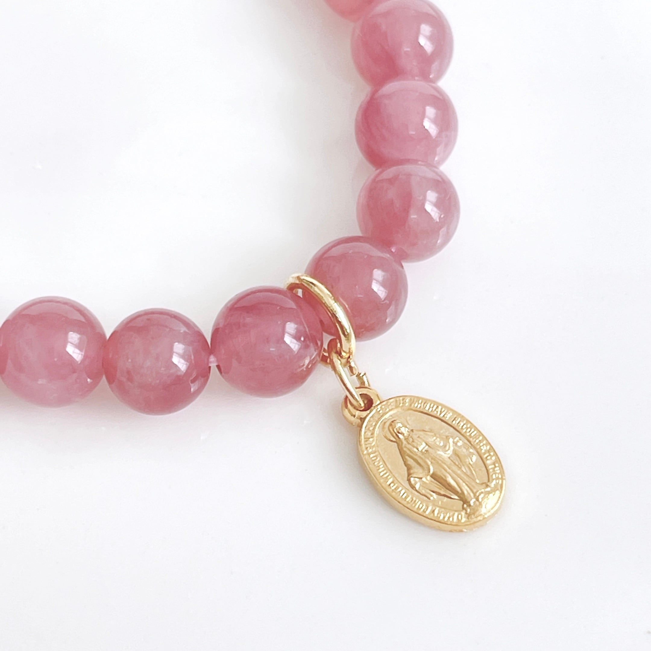 マダガスカル産 ローズクォーツ ディープローズクォーツ ローズクォーツブレスレット 不思議のメダイ 奇跡のメダイ