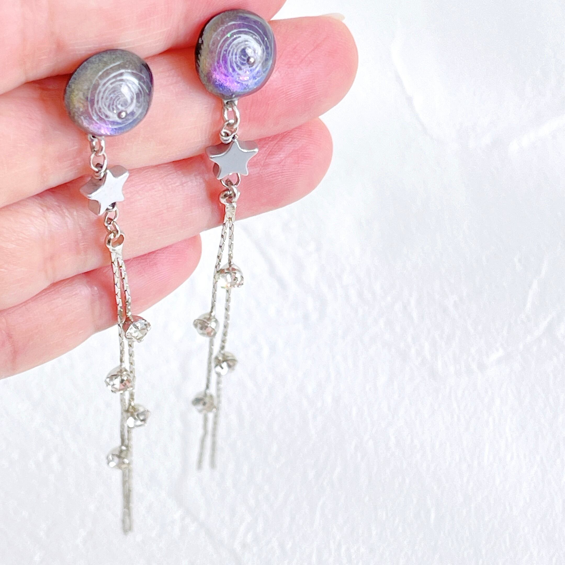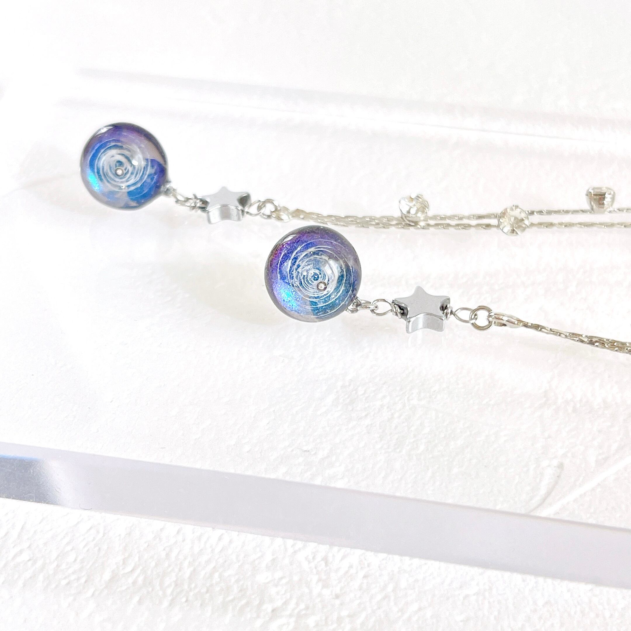 宇宙 小宇宙 レジン レジン作品 ピアス レジンピアス 宇宙玉 銀河 宇宙レジン ボルテックス